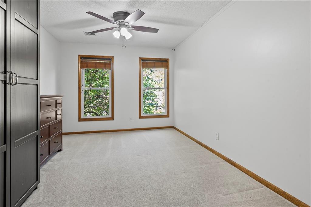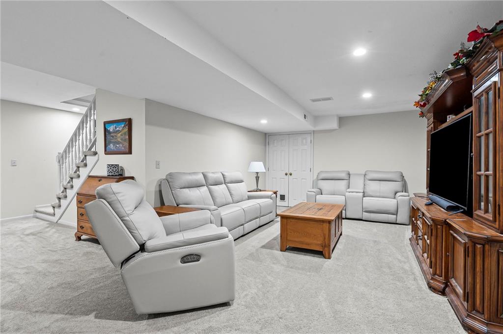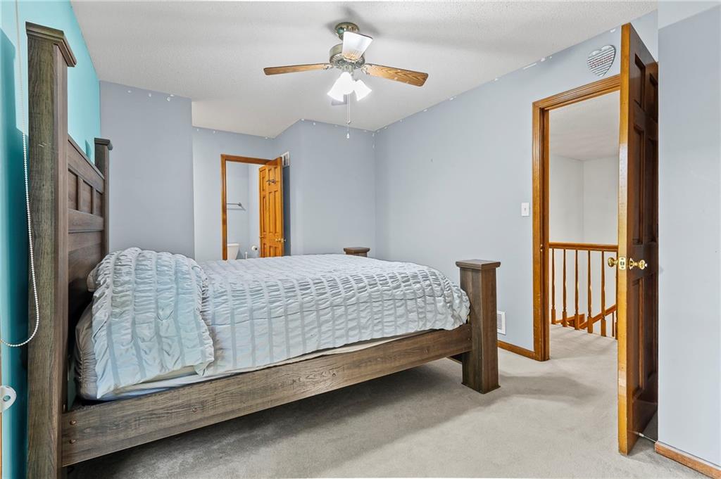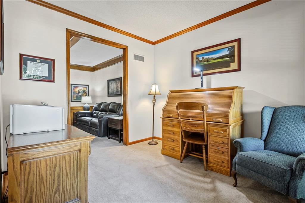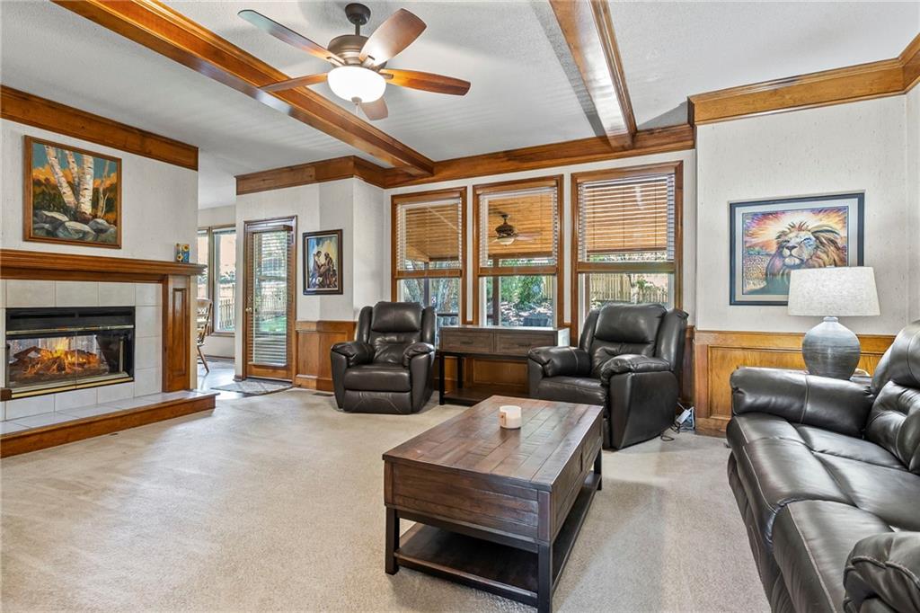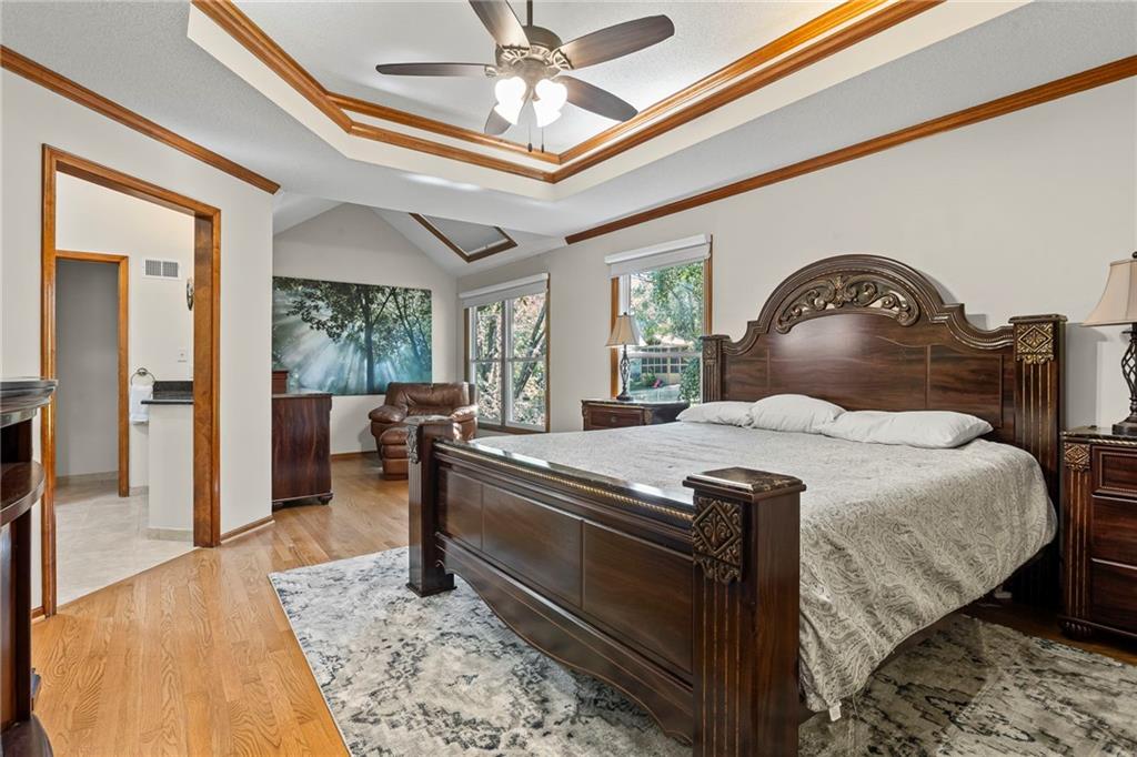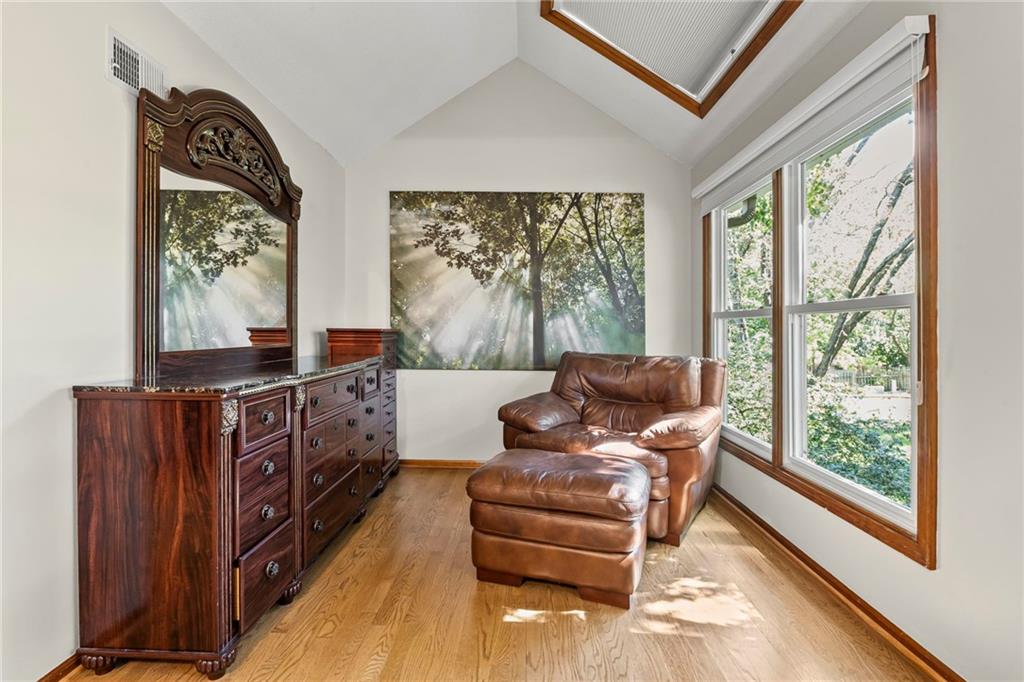 Beautifully Maintained 2-Story in Creekside! Tucked away on a quiet cul-de-sac in popular Creekside, this stunning 4-bedroom, 3.5-bath home offers an incredible blend of updates, space, and lifestyle. The private backyard is a showstopper with mature trees, a large covered deck, patio, sprinkler system, and new fencing—perfect for entertaining or relaxing outdoors. Inside, you’ll love the updated hearth room and kitchen, featuring newer stainless appliances, quartz countertops, custom tile backsplash, and gorgeous hardwood floors. The main level also includes a formal dining room, spacious living room with fireplace, and a dedicated home office. The luxurious primary suite has hardwood flooring, while the remodeled bath boasts heated tile floors, a walk-in shower, and whirlpool tub. Every bedroom has access to a bathroom—one with a private en-suite, and two connected by a Jack & Jill. The finished basement adds even more living space with a large family/rec room, bonus room/home gym, and plenty of storage. This home is truly move-in ready with all the big-ticket updates already done: windows, New zoned HVAC, interior & exterior paint. Plus, Creekside offers a neighborhood pool, trails, and park—all just a short walk away. Located in top-rated Blue Valley School District