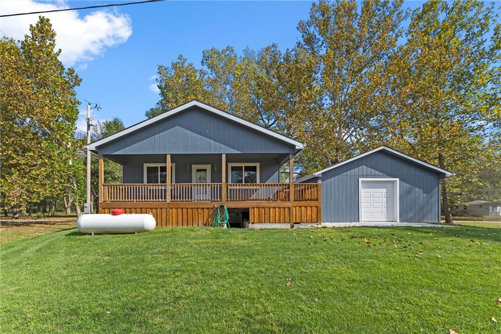 Modern Lakefront Bungalow, Peaceful Getaway with Investment Potential Escape to this serene lakefront retreat, nestled in a charming and quiet lake community just 45 minutes from downtown Kansas City. Built in 2023, this modern bungalow offers the perfect blend of comfort and simplicity, ideal for weekend getaways, full-time living, or a potential short-term rental investment. Inside, you'll find 2 bedrooms, 1 full bathroom, a bright and open living room, a stylish kitchen, and a convenient laundry closet, all thoughtfully designed for efficient and comfortable living. The detached 2-car garage provides ample storage for gear, tools, or lake toys. Unique to this property is the tall crawl space, accessible via stairs from under the porch, which offers standing room and additional functional storage options not typically found in similar homes. Enjoy the peaceful setting where nature takes center stage. The no-motor lake is perfect for paddle boarding, canoeing, kayaking, or casting a fishing line right from your backyard. Whether you're seeking a personal haven or a potential AirBnB income property, this turnkey home delivers a rare opportunity to enjoy lakeside living with modern comforts.