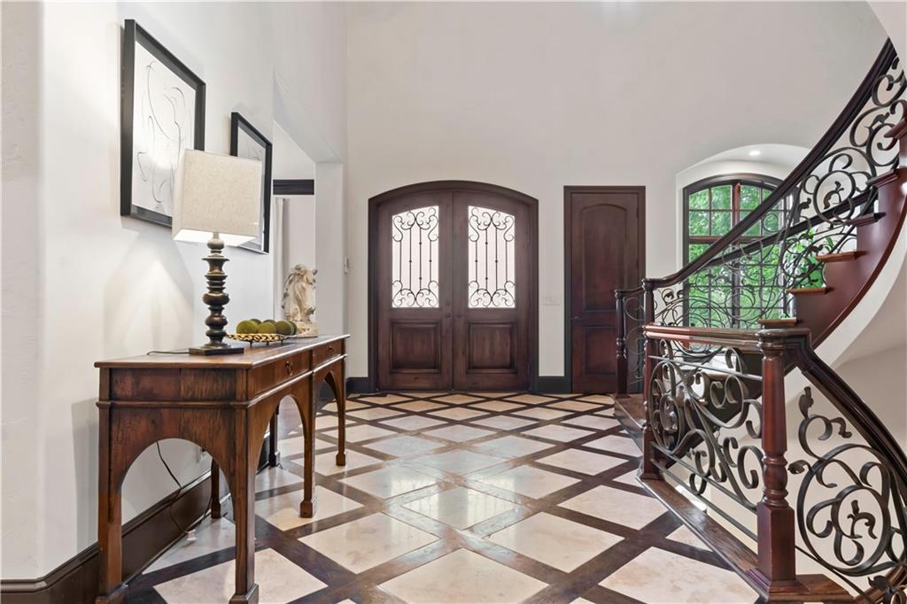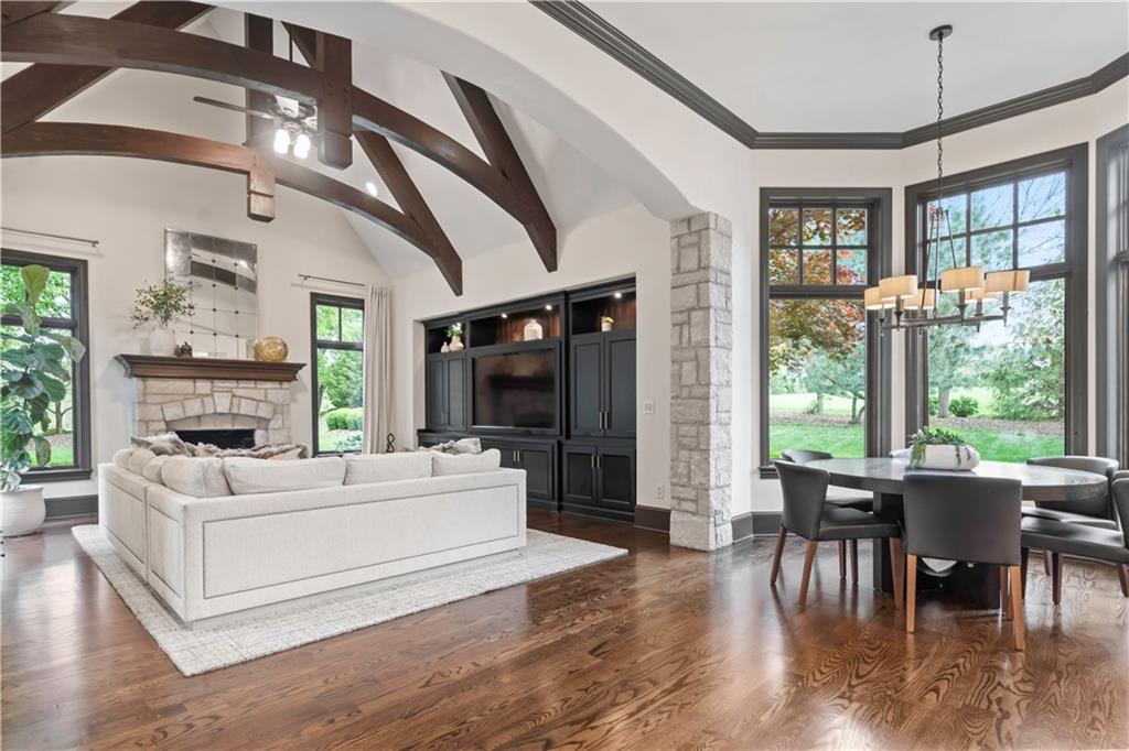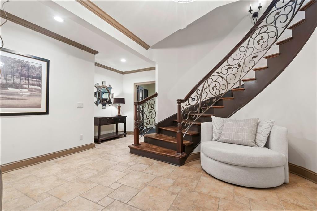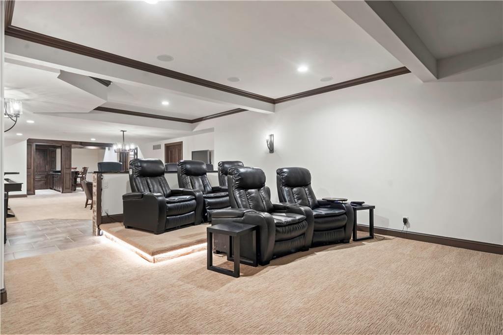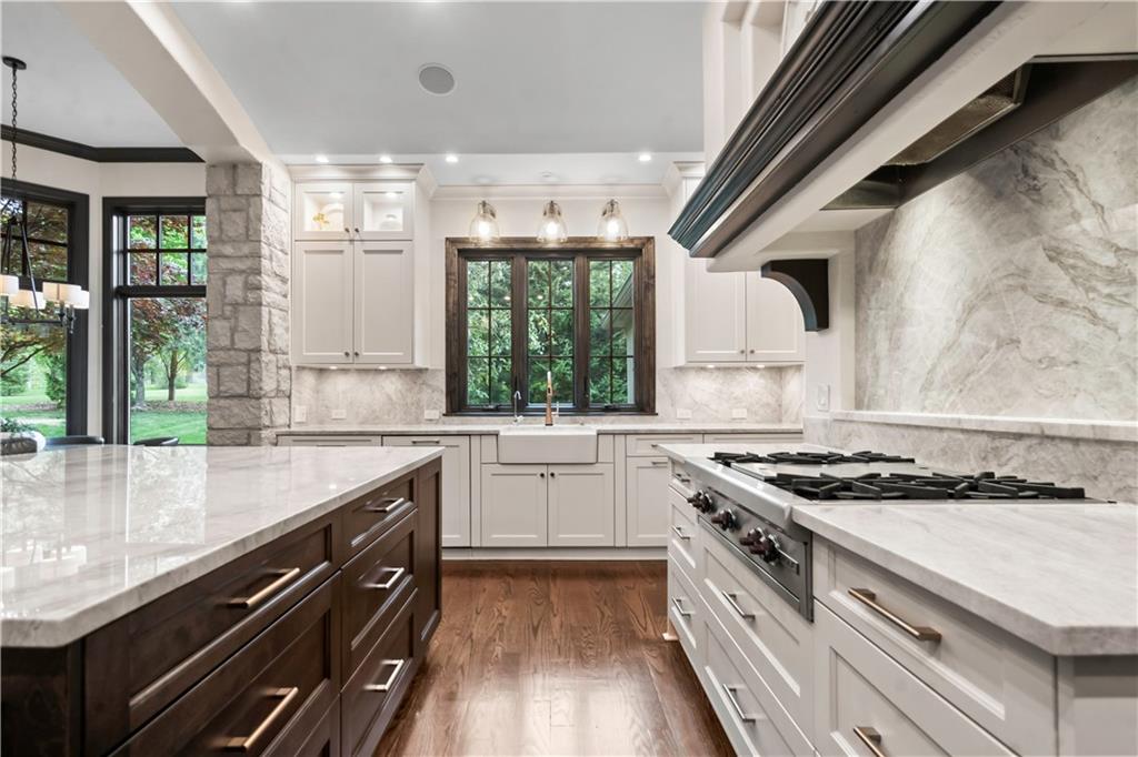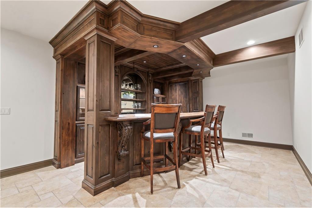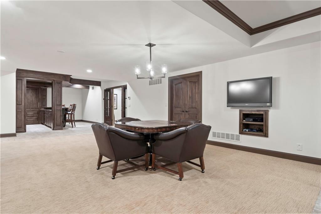 Exquisite 1.5-story home in Mission Farms that blends timeless elegance with modern updates on a beautifully landscaped lot. A dramatic staircase with custom ironwork, solid core doors, and upgraded trim showcase the craftsmanship throughout. The chef’s kitchen features quartzite countertops, custom cabinetry, and top-tier appliances, opening to a cozy hearth room. Formal dining and a spacious living room—ideal for a grand piano—flow seamlessly to a covered paver patio for effortless entertaining. The main-level primary suite is a private retreat with a spa-inspired bath and custom walk-in closet. A handsome office with fireplace completes the first floor. Upstairs offers three bedrooms with fresh paint, new carpet, and updated baths, plus a versatile loft. The lower level, finished by Rick Standard, is designed for entertaining with a full bar, media room, wine cellar, workout room, and fifth bedroom. Multiple outdoor living areas, a sport court, and large backyard provide space to relax, gather, or play. This stately estate offers luxury, comfort, and thoughtful design in one of the area’s most desirable neighborhoods.