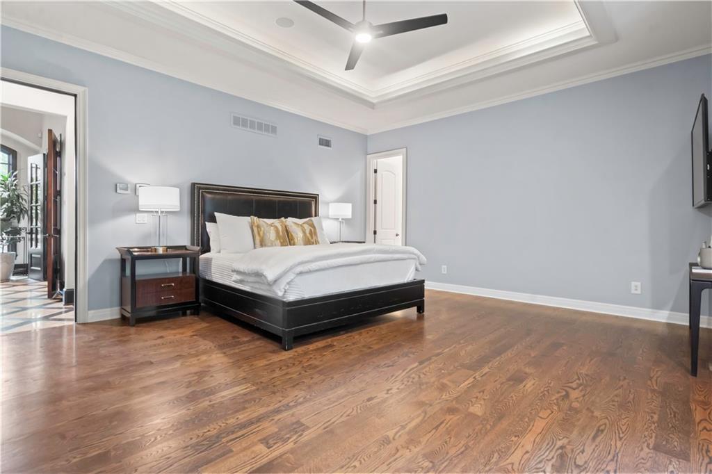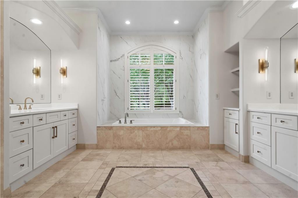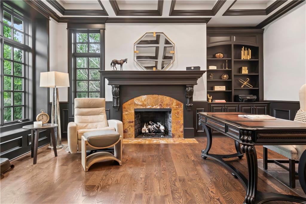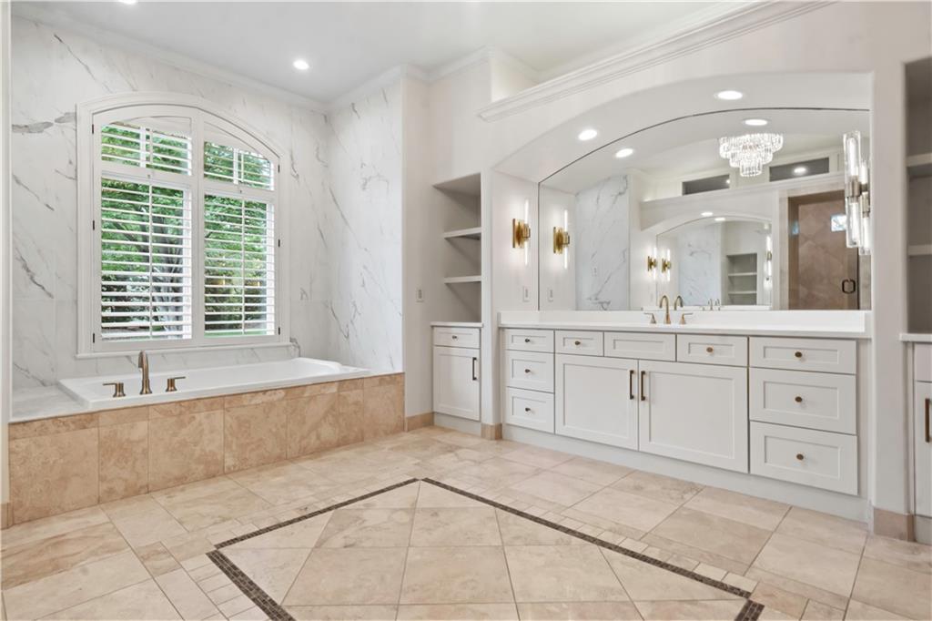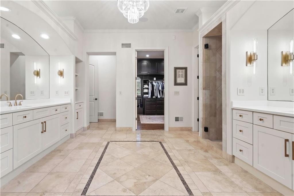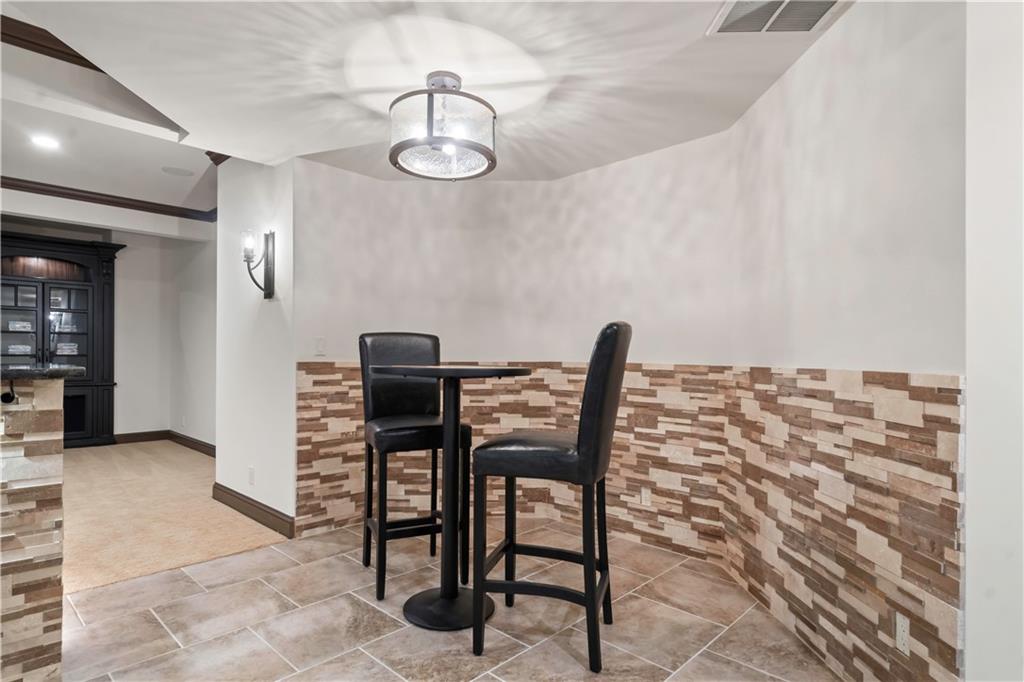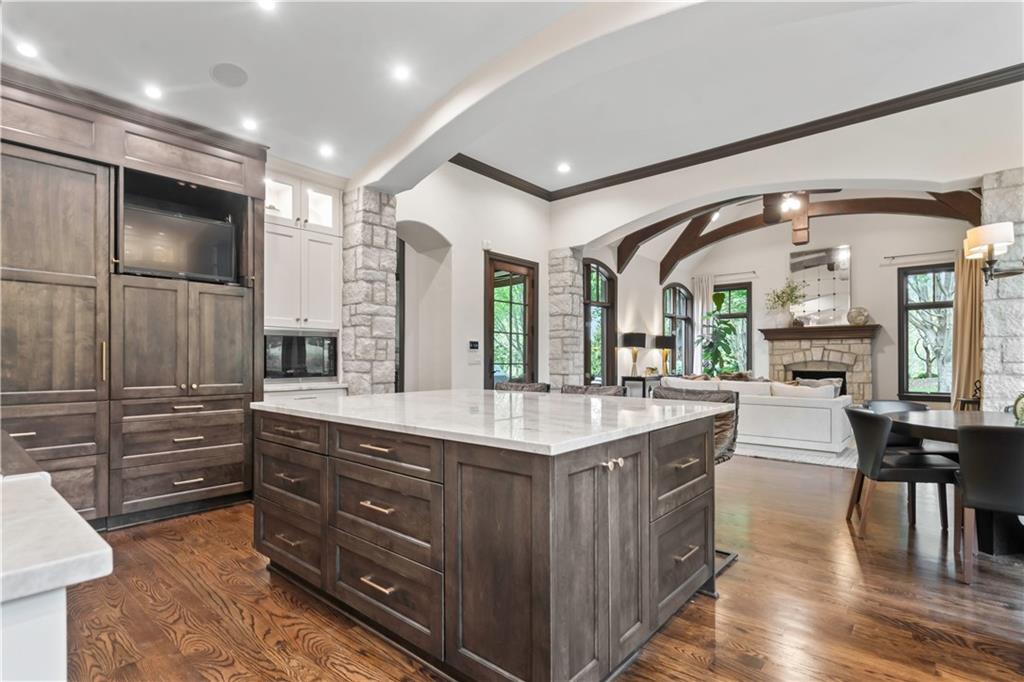 Exquisite 1.5-story home in Mission Farms that blends timeless elegance with modern updates on a beautifully landscaped lot. A dramatic staircase with custom ironwork, solid core doors, and upgraded trim showcase the craftsmanship throughout. The chef’s kitchen features quartzite countertops, custom cabinetry, and top-tier appliances, opening to a cozy hearth room. Formal dining and a spacious living room—ideal for a grand piano—flow seamlessly to a covered paver patio for effortless entertaining. The main-level primary suite is a private retreat with a spa-inspired bath and custom walk-in closet. A handsome office with fireplace completes the first floor. Upstairs offers three bedrooms with fresh paint, new carpet, and updated baths, plus a versatile loft. The lower level, finished by Rick Standard, is designed for entertaining with a full bar, media room, wine cellar, workout room, and fifth bedroom. Multiple outdoor living areas, a sport court, and large backyard provide space to relax, gather, or play. This stately estate offers luxury, comfort, and thoughtful design in one of the area’s most desirable neighborhoods.