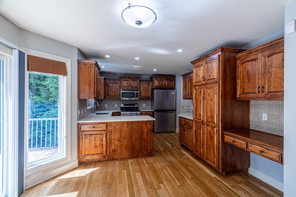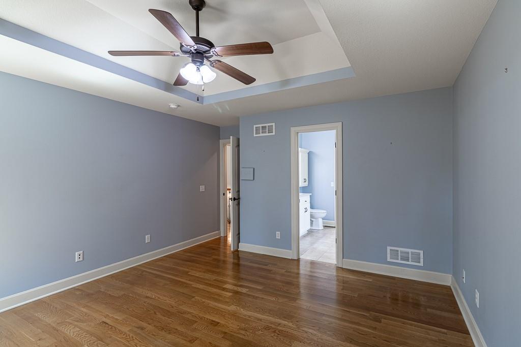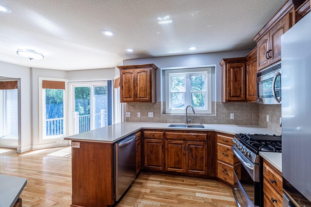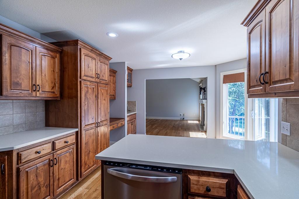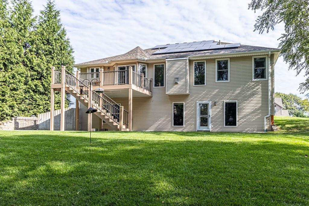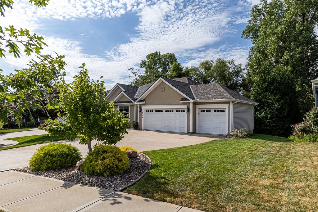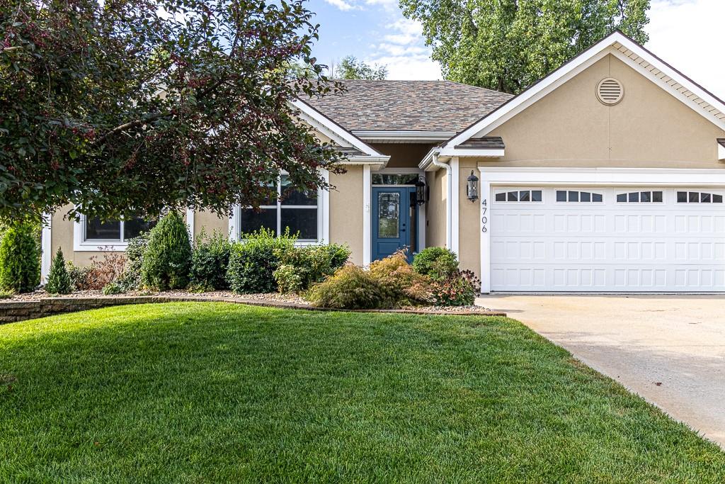 Lots to like with this two owner ranch style home in a popular subdivision. The front entry opens to a foyer with a coat closet and direct access to the large great room which is the focal point of the home with a vaulted ceiling, fan, gas fireplace, window blinds and hardwood flooring. The formal dining room has a lighted tray ceiling, attractive chandelier, and hardwood flooring. Additional informal dining is in the breakfast room which includes a wet bar and built-in desk. A patio door opens to the the outside deck with a great view of the beautiful back yard. The fully equipped kitchen has quartz counters, abundance of stained wood cabinets some with pullout drawers and all doors with soft close hinges, stainless appliances, and hardwood floor. The laundry room with tile floor includes a washer and dryer plus cabinets and a coat closet. The large 3 vehicle garage has door openers, and a special protective floor covering and lots of storage space. The home features three bedrooms starting with the primary which has a hardwood floor, tray ceiling, fan, custom blinds, newer Anderson windows, and a large walk-in closet beyond the primary bathroom. This private bathroom features quartz counters, double sinks, whirlpool tub, separate shower and tile floor. The 2nd full bath features a tub/shower combination, tile floor, and quartz vanity counter. Bedrooms 2 and 3 have wood floors, ceiling fans, newer Anderson Windows, and custom blinds. The walkout lower level has lots of windows, a half bath, workshop area and could easily be used for more bedrooms, or whatever the needs were. Outside is a large concrete patio area with a very private back yard. The entire yard has a sprinkler system plus an inground invisible dog fence. The roof is less than one year old. Gutter guards were recently added. On the roof are solar panels and they are generating power that results in very low electric costs. Oak Grove Elementary School, Bode Middle and Central High. Lots of extras.