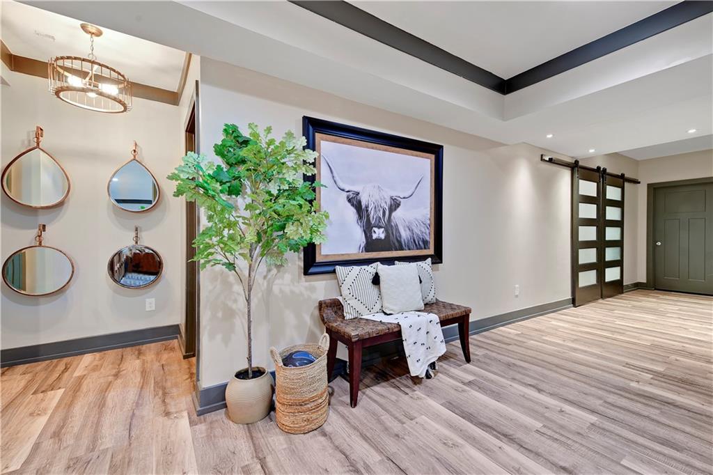 Wow! Why buy new when you can have a quick possession on this 8 year young Absolutely stunning 1.5 story luxurious home built by the award winning James Engle. Located on the desirable 159th Street corridor in Wilshire by the Lake. Experience High-end custom finishes from wood beamed and Inlet Ceilings, custom styles of wainscoting, designer stair carpet and elegant wall finishes. Absolutely Stunning Luxury lighting throughout home. Designer plantation shutters and rollerblinds throughout. You will fall in love with the 20 foot ceiling entry and 15 foot ceiling family/hearth room with a wall of windows and floor to ceiling fireplace. This original owner, Meticulously maintained, 5 bedroom, 4.5 bath home shows like a model home! First floor large primary suit with HUGE walk in closet, 3 head rainfall shower, free standing tub. First floor large office with lots of natural light. Chef’s kitchen with large waterfall island, gas stove, stainless steel appliances, unbelievable size pantry. Handscraped hardwood flooring. 1700sq foot basement with HUGE playroom/flexroom with barndoors (440sqft). Custom wet bar, 5th bedroom, full bath, and an abundance of storage. Awesome “dropzone” for kids! Large, fenced, treed, backyard. Beautiful patio with fireplace and trex deck. 3 car epoxy floor garage with built in storage shelving. CLUBHOUSE, POOL W/SLIDE, STOCKED LAKE , PLAY AREA, BASKETBALL, green spaces, Nature trails. Located in the heart of the award winning Blue Valley Schools! **NEW Public Park - "Bietigheim-Bissingen Park" on the corner of 159th and Switzer. Look no further!! OPEN HOUSE SATURDAY AND SUNDAY, OCTOBER 4TH AND 5TH 12-3