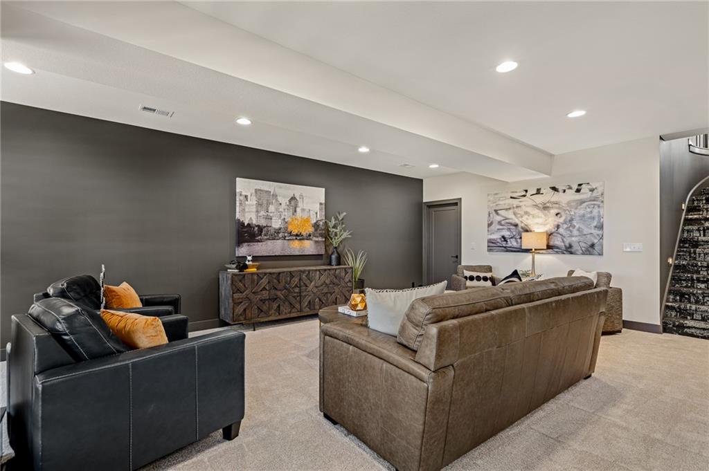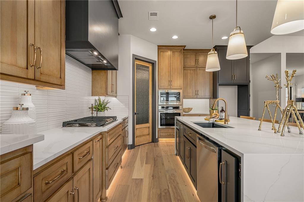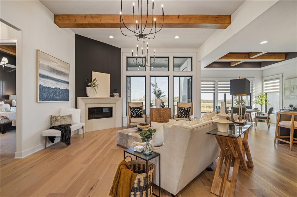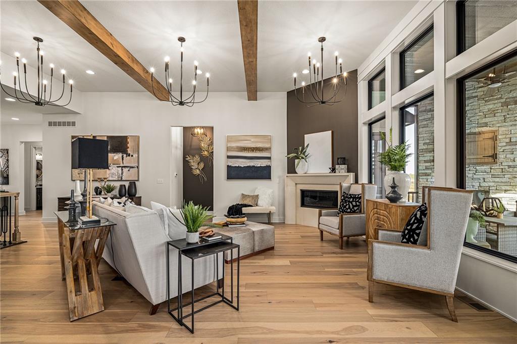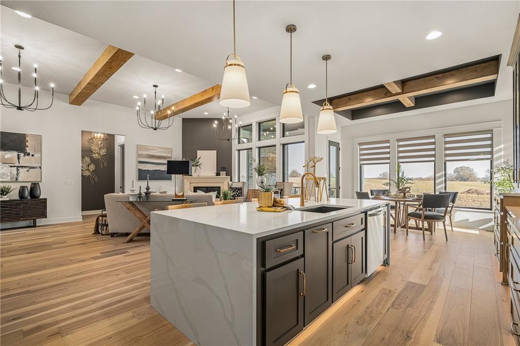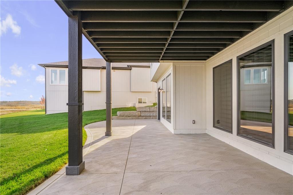 C & M Builders brings their fabulous Windsor Rev. 1.5 sty plan to Johnson Counties newest maintenance provided community of Prairie Canyon. Conveniently located just west of K-7 off of College Blvd., this model home currently not for sale features a wide & open entry that looks into a spectacular Great rm./Kitchen/Dining combo that include a corner FP, large island, huge walk-in pantry & mud room! Luxurious primary suite features a custom walk-in shower & huge walk-in closet. Main floor also includes a 2nd bedroom or Den. Finished walkout LL features a walk up wet bar, very spacious family, entertainment & recreation space, 2 generous bedrooms & a full bath. First floor covered deck w/FP and LL covered patio.