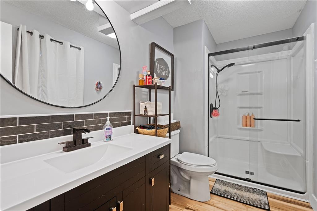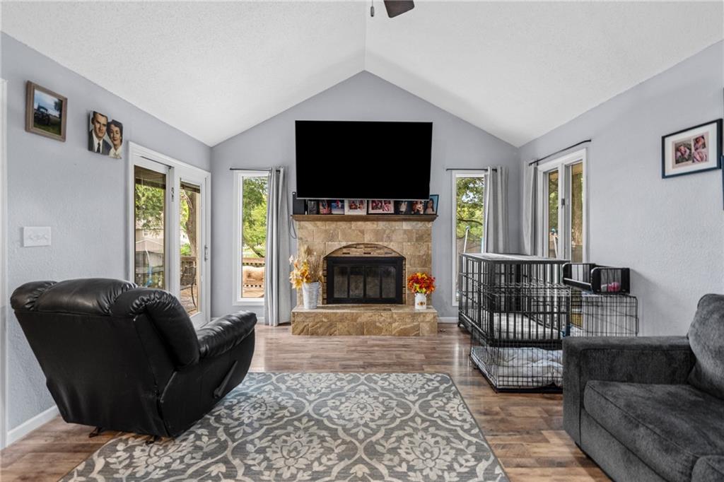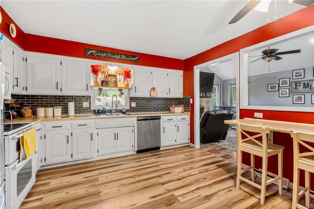 Well-maintained 3-bedroom, 2.5-bath raised ranch in a quiet Harrisonville neighborhood. This charming home features vaulted ceilings, a spacious living room with a stone fireplace, and tons of natural light. The kitchen opens to a dining/flex area, perfect for entertaining. The finished lower level includes a half bath and bonus living space—great for a playroom, office, or guest area. Enjoy a fenced backyard, large deck, and mature trees. Newer flooring, fresh interior paint, 2-car garage, and easy highway access. Move-in ready and full of potential!
