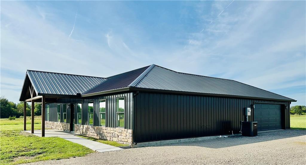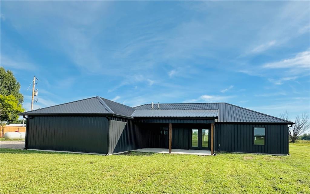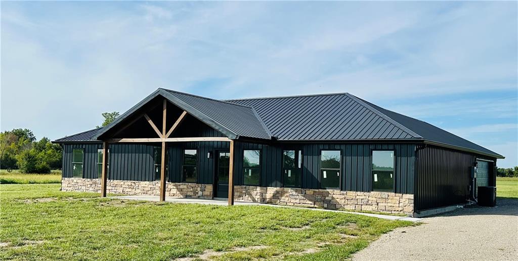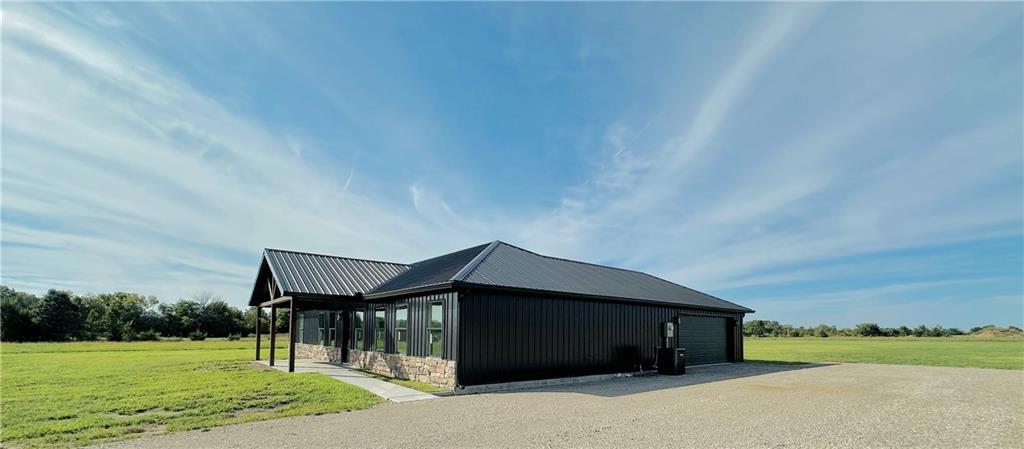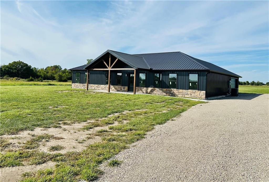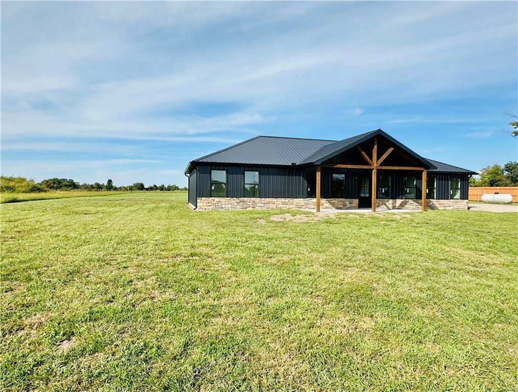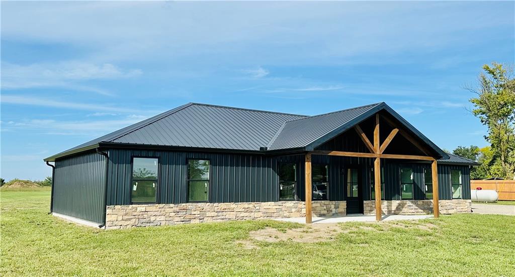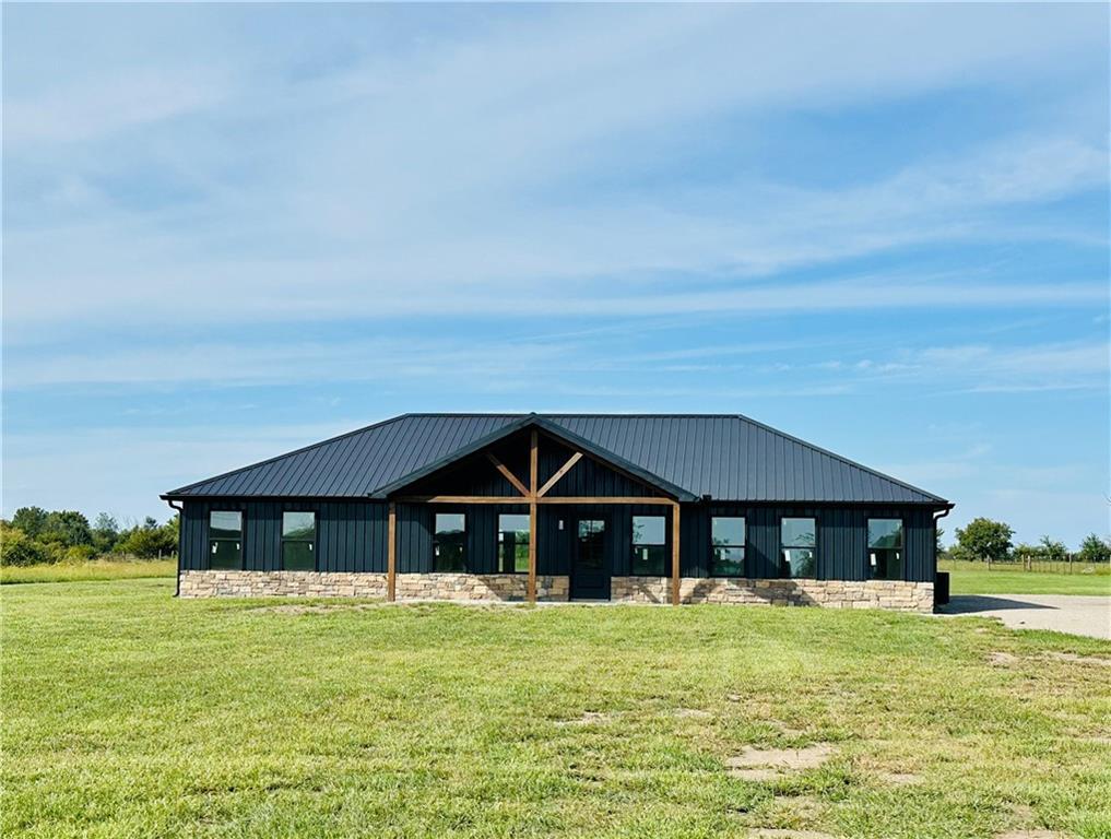 Welcome to this stunning, brand-new, custom-built home situated on two acres of picturesque prairie land. This slab home features a metal roof and siding with a partial stone front, offering low-maintenance living while combining modern design with serene country charm. Conveniently located on a paved road just two miles west of Highway 69 and ten miles north of Pittsburg, KS, the property provides both privacy and easy accessibility. Inside, the open-concept floor plan showcases a spacious living room with vaulted ceilings and expansive windows that frame unobstructed prairie views. The kitchen is equipped with custom cabinetry, quartz countertops, a striking backsplash, and a large central island, complemented by a complete four-piece stainless steel appliance suite, and a spacious pantry. Lifeproof luxury vinyl flooring and recessed lighting flow throughout the home, offering both durability and contemporary style. This home includes four bedrooms, one of which can serve as an office or flex space, along with two full bathrooms featuring custom vanities with quartz tops. The primary suite offers a generous walk-in closet, double vanities, and a walk-in shower, while each additional bedroom provides ample storage. A thoughtfully designed mudroom and laundry area, complete with custom cabinetry and a built-in hall tree, enhance everyday convenience. This property is completed by a spacious two-car garage and covered front and back porches, ideal for enjoying the scenic surroundings. With its high-quality construction, modern finishes, and tranquil setting, this property represents a rare opportunity for those seeking a new construction home in the country! Don’t miss your chance to make this home yours—schedule your private showing today! Note: listing agent is directly related to seller.