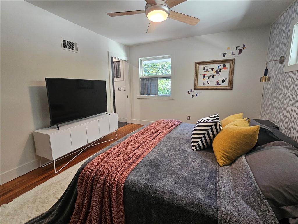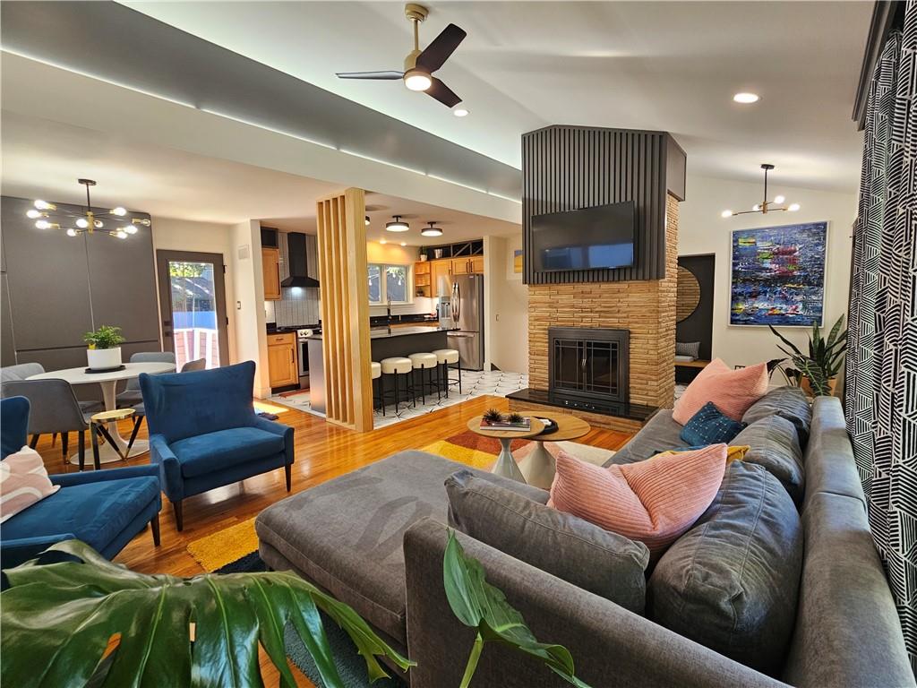 Welcome to this meticulous Mid-Century home, lovingly curated into a stunning modern retreat. Located in the highly sought after Prairie Fields neighborhood and a short walk from the brand new, state-of-the-art, Tomahawk Elementary School! This home is walking distance to downtown Overland Park and the brand new indoor/outdoor farmer's market currently under construction. It is a hike or short bike ride to Prairie Village Shops, as well as Corinth Square and the Prairie Village Pool. Top tier location, "can't look away" curb appeal, modern interiors... four bedrooms, three full bathrooms, two living spaces, large mudroom, bonus office/storage room, large storage shed wired with lights and outlets, bougie outdoor living, and two-car garage. Exceptional property with no detail overlooked! Even the boring stuff is done for you: new roof, new driveway, new HVAC and water heater. All you need to do is move in! Owner/Agent