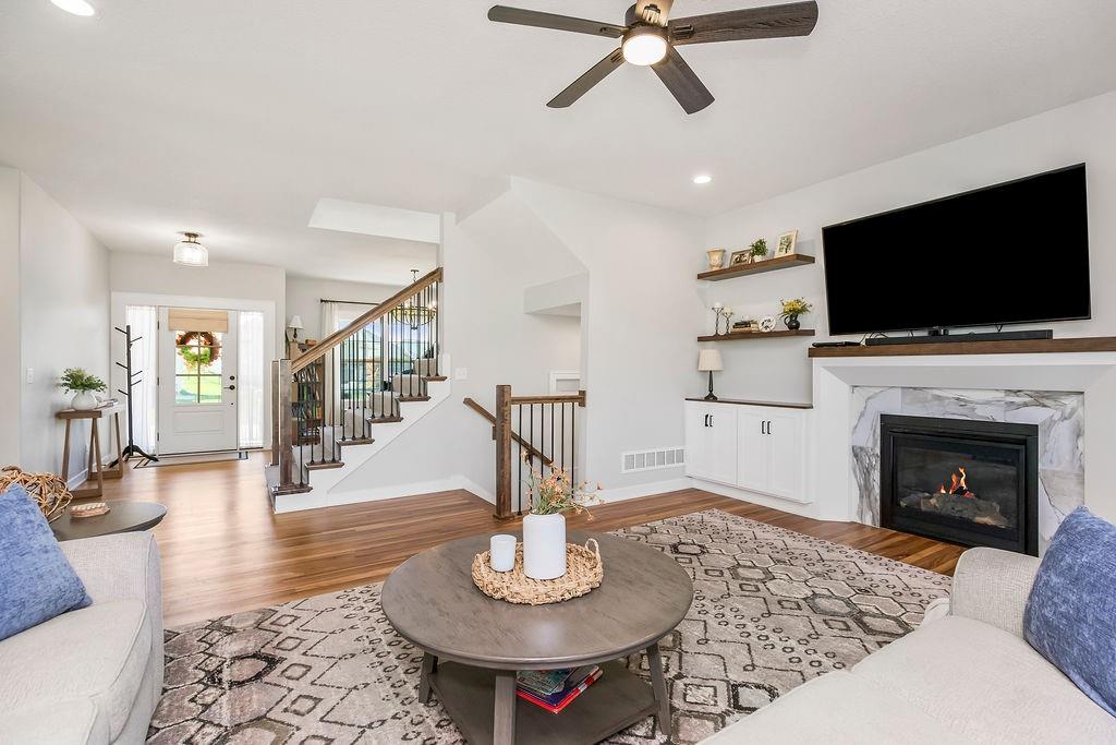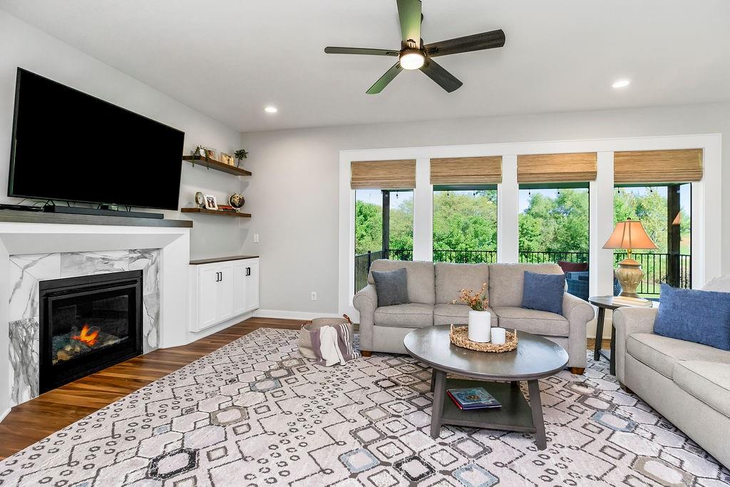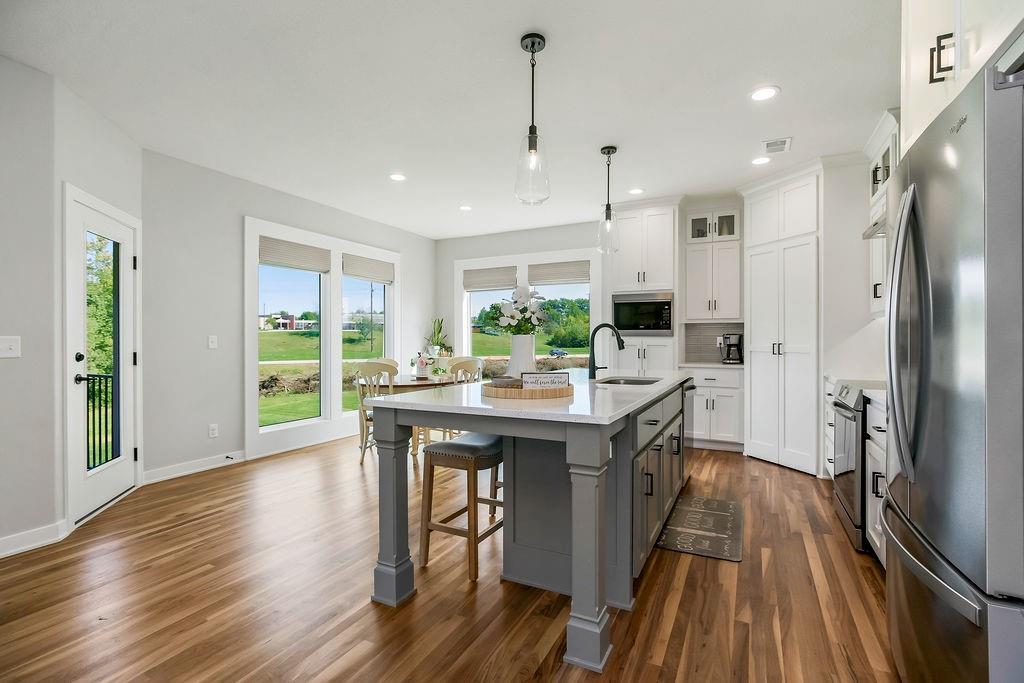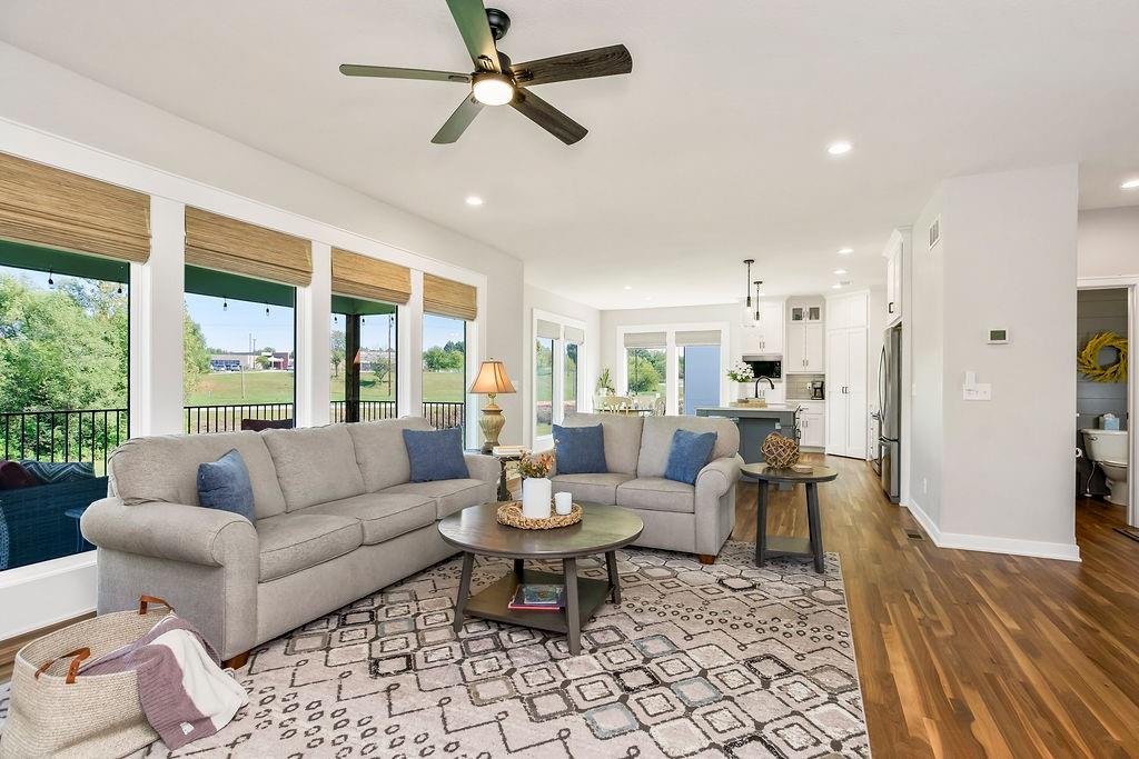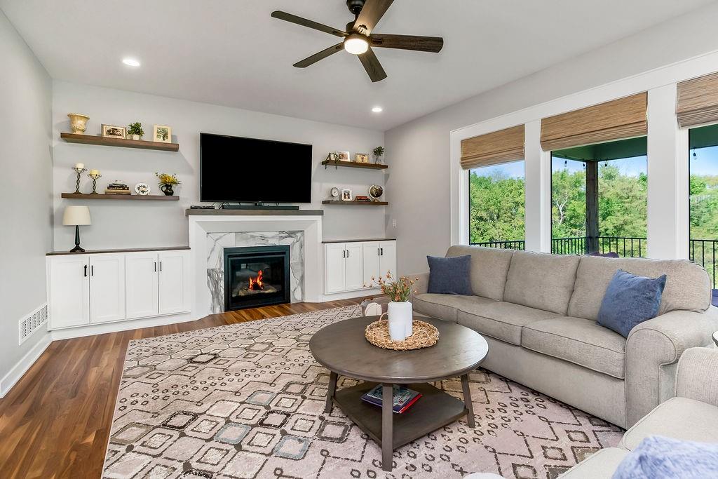 Skip the construction delays and move right into this gorgeous, move-in ready home in The Retreat at Hook Farms! Enjoy beautiful sunsets on your front porch, dinner on your covered back deck, and all the perks of a thoughtfully designed 4-bed layout in one of KC’s most desirable suburbs. Modern meets traditional design with accent walls, custom woven roman shades throughout main floor and stunning built-ins cabinetry below floating shelves in great room. Step into luxury in the European style walk-in shower room with soaker tub. Close proximity to Hawthorn Hill Elementary School and many of the great amenities that Lee's Summit has to offer! The Retreat at Hook Farms has walking trails, access to community's zero entry pool and community gardens coming soon!