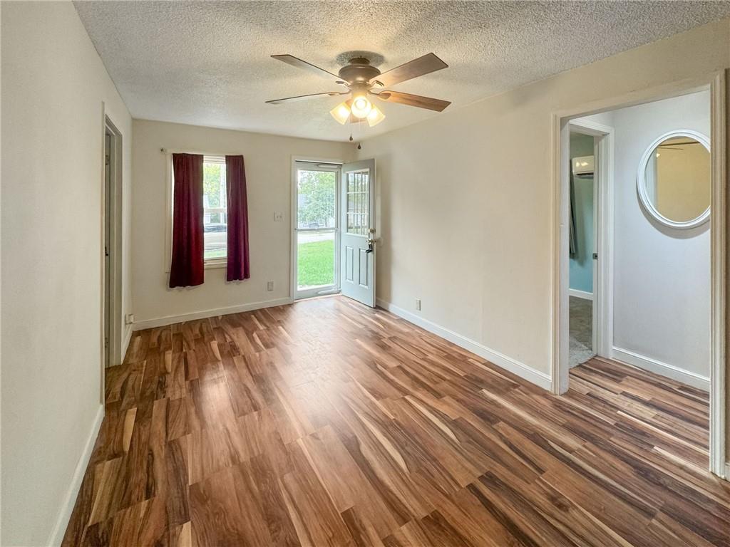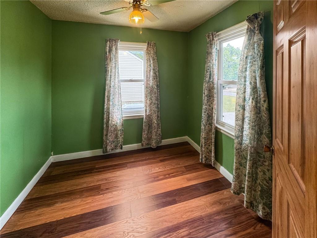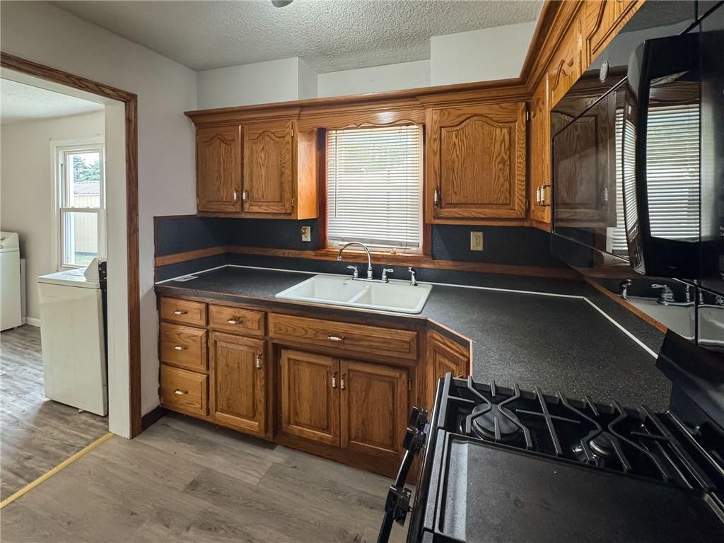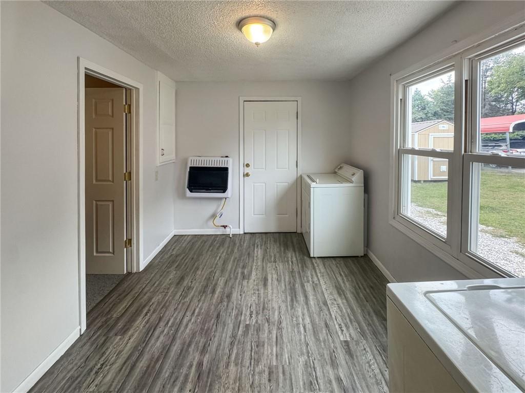 Cute as a Button & Move-In Ready! This charming 3-bedroom, 1-bath home with a one-car detached garage is truly turnkey and ready for its next owner. Step inside to find vinyl windows and vinyl flooring throughout, with cozy carpet in two of the bedrooms. The built-ins in the living room are a standout feature, complete with a TV mount for added convenience. The kitchen comes fully equipped—all appliances stay, including a newer microwave, gas stove, and refrigerator. Off the rear entry, the oversized mudroom/laundry room floods with natural light, offering both function and charm. The third bedroom is privately situated at the rear of the home, creating flexible space for a guest room, office, or hobby area. Outside, enjoy a rear deck, perfect for grilling or unwinding in the evenings. A newer driveway adds to the home’s curb appeal and convenience.