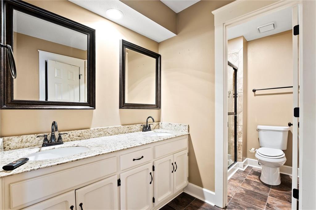 Step into a home that mixes comfort with style, where every detail feels welcoming. Gleaming hardwood floors lead you through a spacious living room that's the perfect backdrop for cozy nights in or lively get-togethers. The kitchen shines with abundant counter space and cabinetry, opening right into the dining area so meals and entertaining flow together with ease. The primary suite offers a double vanity, walk-in shower, and generous closet space, giving you plenty of space and comfort. Outside, the backyard steals the show with a huge fenced yard, newer deck, and patio. Top it off with a fire-pit area that practically begs for fall evenings under the stars (your dogs are sure to love it as well). Located close to parks, schools, shopping, and easy highway access, this home delivers both charm and convenience in a community you’ll be proud to call home.