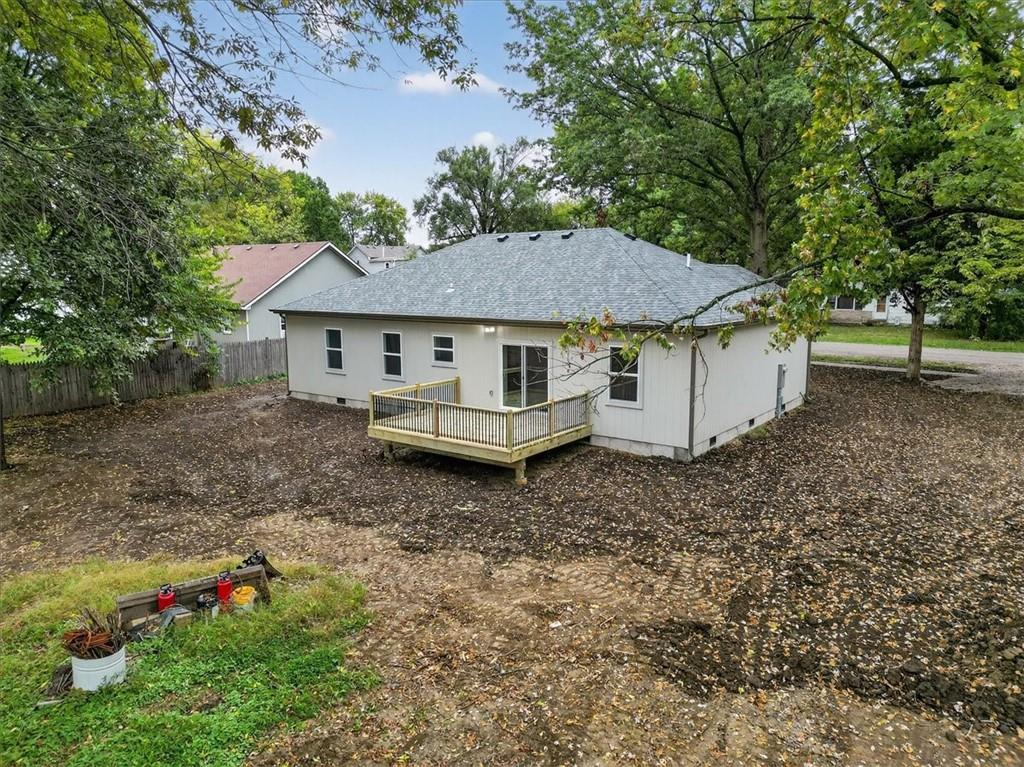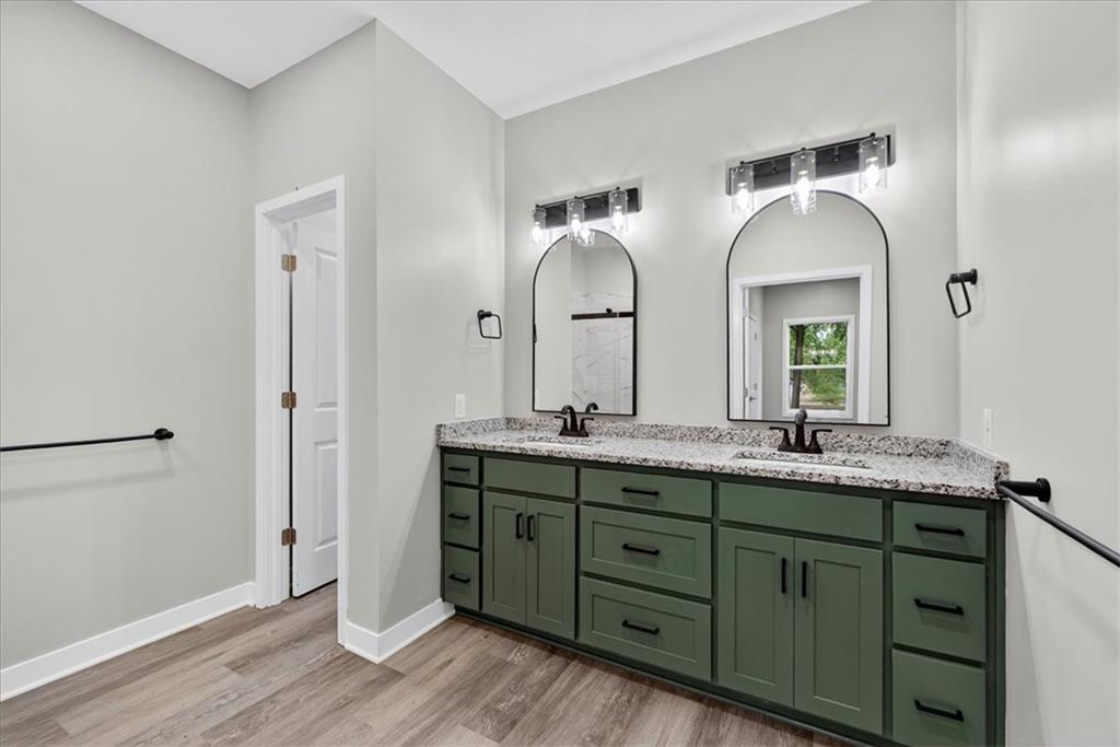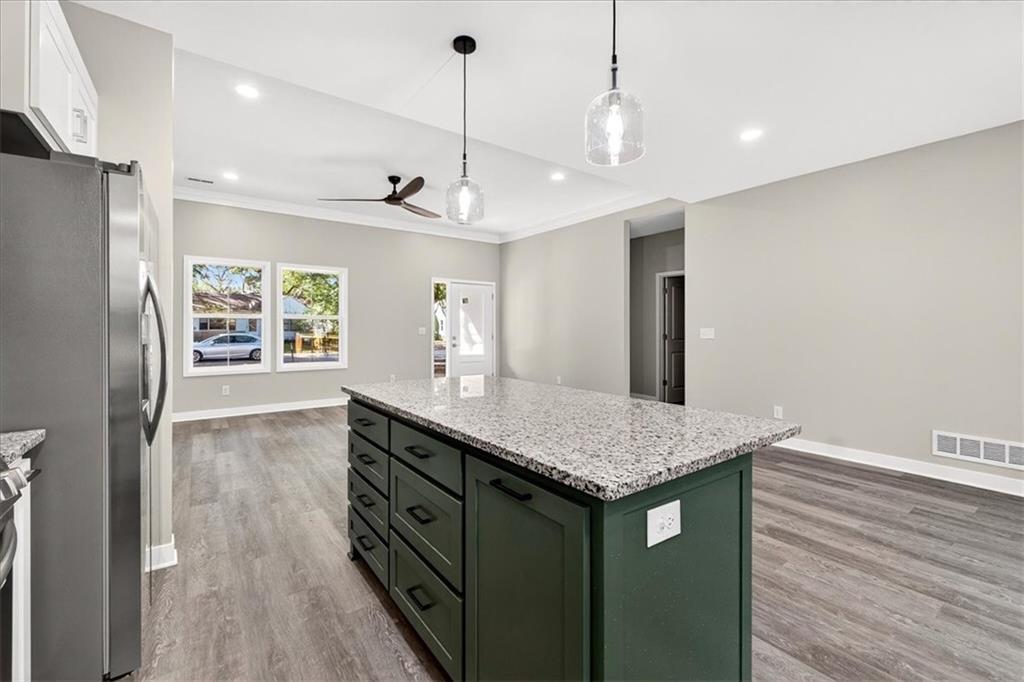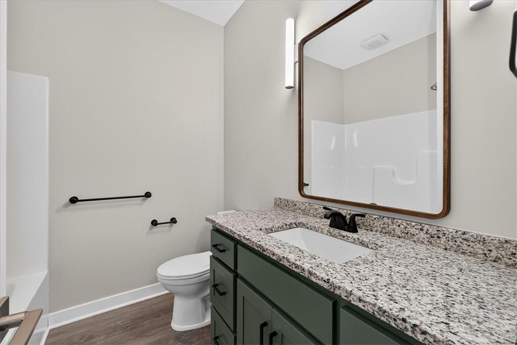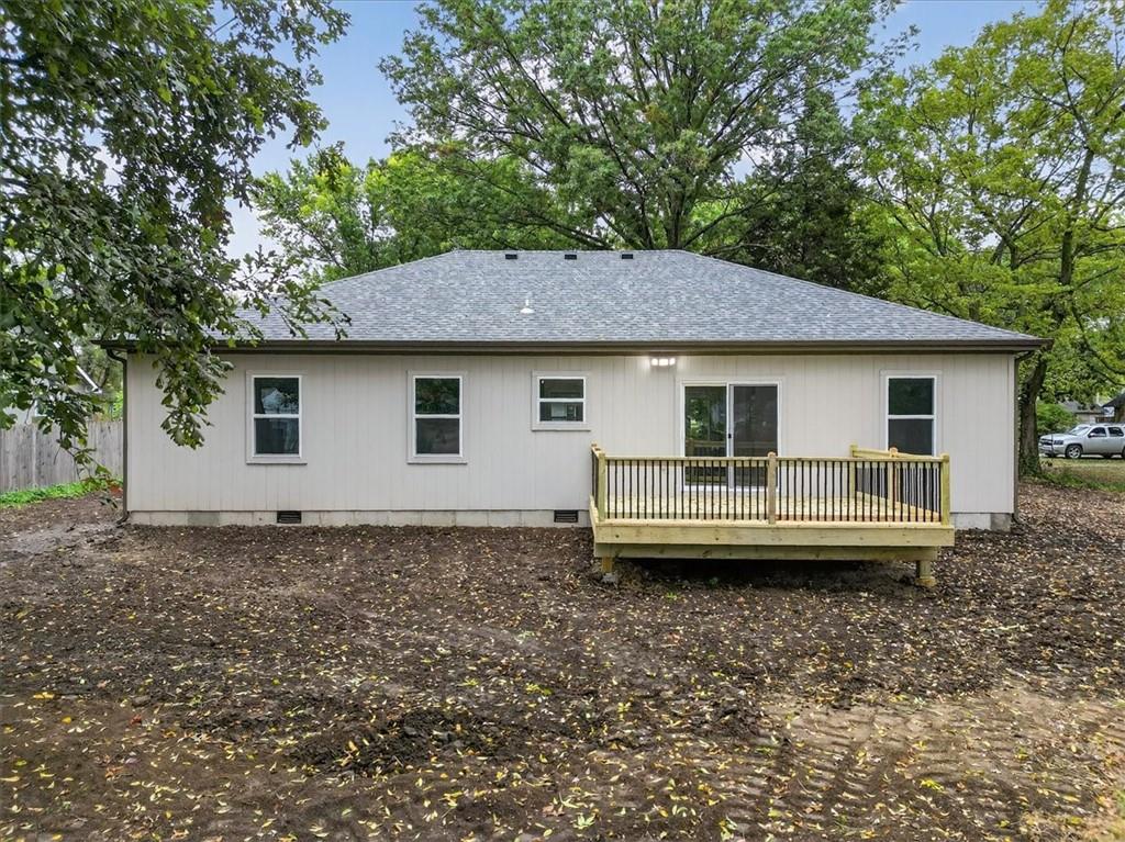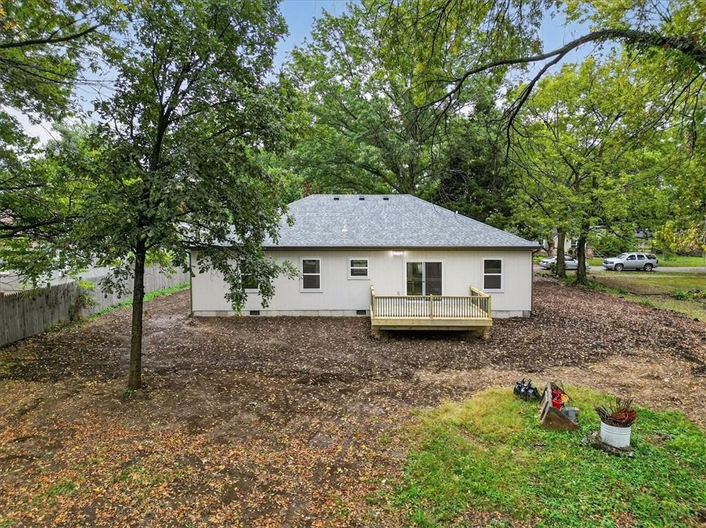 Welcome to this brand-new, beautifully finished home offering the perfect blend of modern style and everyday comfort. Step inside to find an open-concept layout with luxury vinyl plank flooring, tall ceilings, and abundant natural light. The kitchen is a showpiece—featuring crisp white cabinetry, granite countertops, stainless steel appliances, and a striking green island that adds character and warmth. The primary suite includes a spa-like bath with dual sinks, a tiled shower with glass doors, and a spacious walk-in closet. Additional highlights include upgraded fixtures, neutral tones throughout, and a convenient main-level laundry room. Outside, enjoy a brand-new deck overlooking a tree-filled yard with plenty of room to play, garden, or entertain. Bonus opportunity: Buyers have the option to purchase the adjoining lot expanding the property to nearly half an acre—a rare find for new construction!