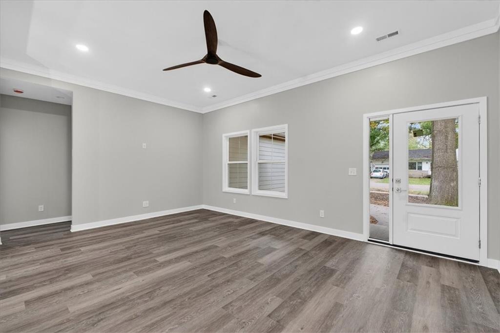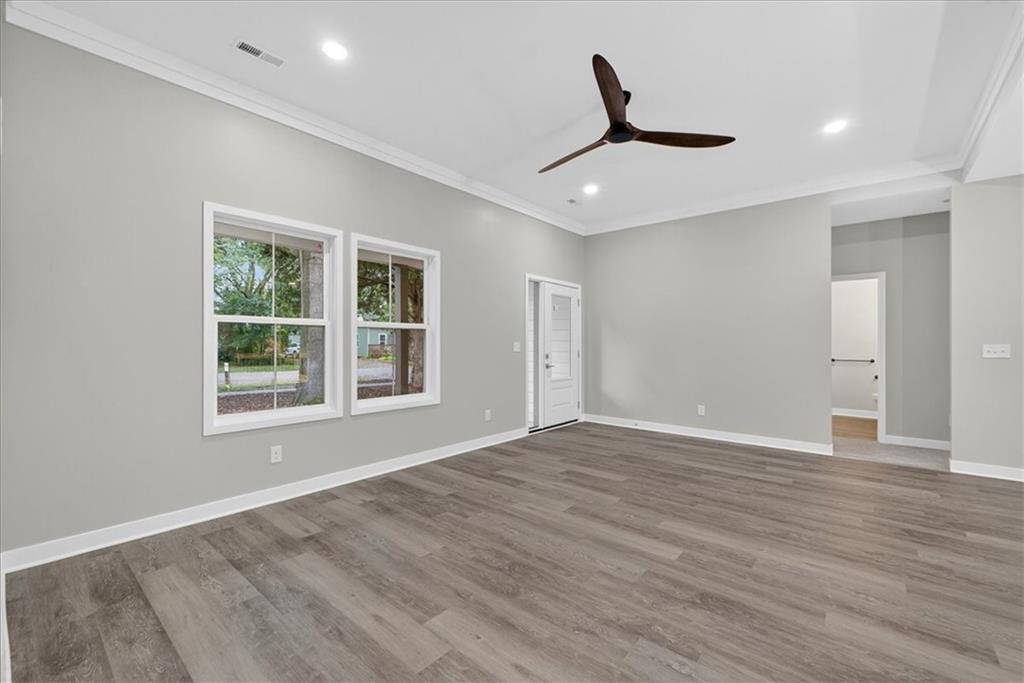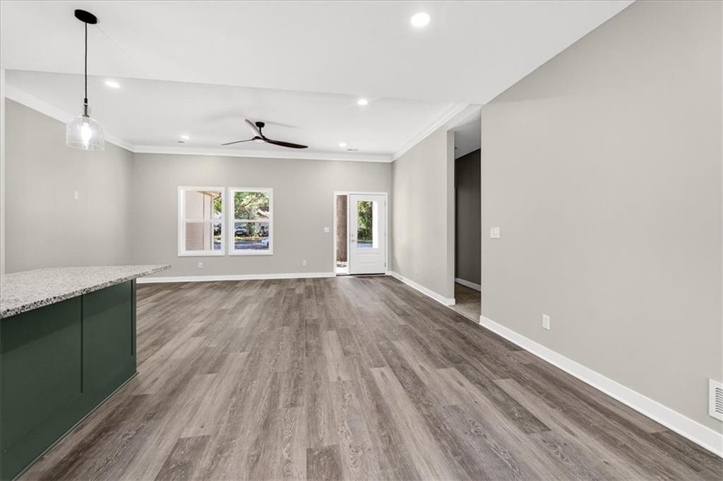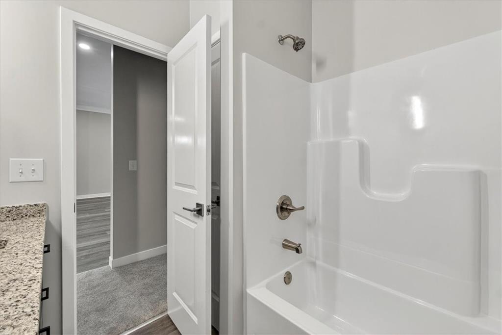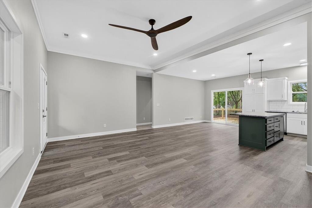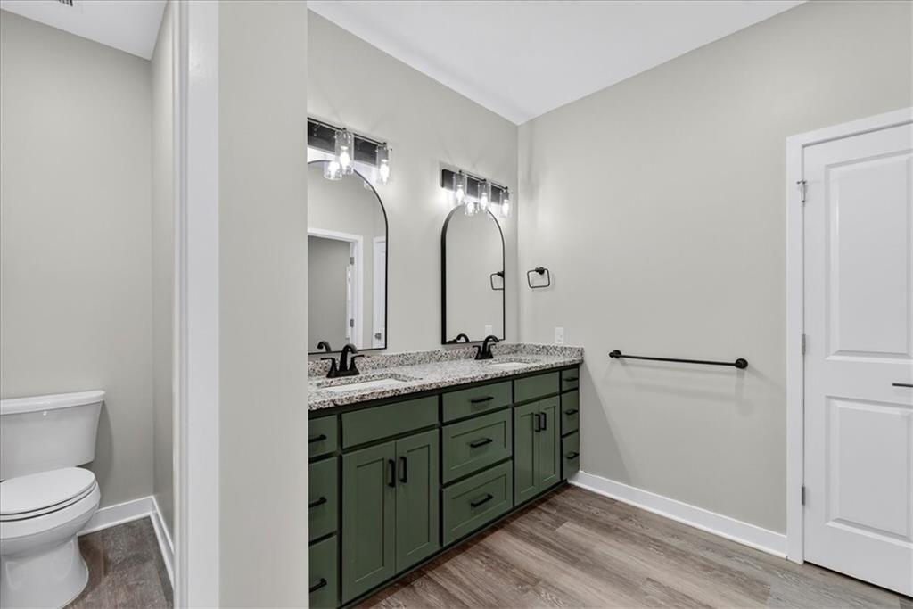 Welcome to this brand-new, beautifully finished home offering the perfect blend of modern style and everyday comfort. Step inside to find an open-concept layout with luxury vinyl plank flooring, tall ceilings, and abundant natural light. The kitchen is a showpiece—featuring crisp white cabinetry, granite countertops, stainless steel appliances, and a striking green island that adds character and warmth. The primary suite includes a spa-like bath with dual sinks, a tiled shower with glass doors, and a spacious walk-in closet. Additional highlights include upgraded fixtures, neutral tones throughout, and a convenient main-level laundry room. Outside, enjoy a brand-new deck overlooking a tree-filled yard with plenty of room to play, garden, or entertain. Bonus opportunity: Buyers have the option to purchase the adjoining lot expanding the property to nearly half an acre—a rare find for new construction!