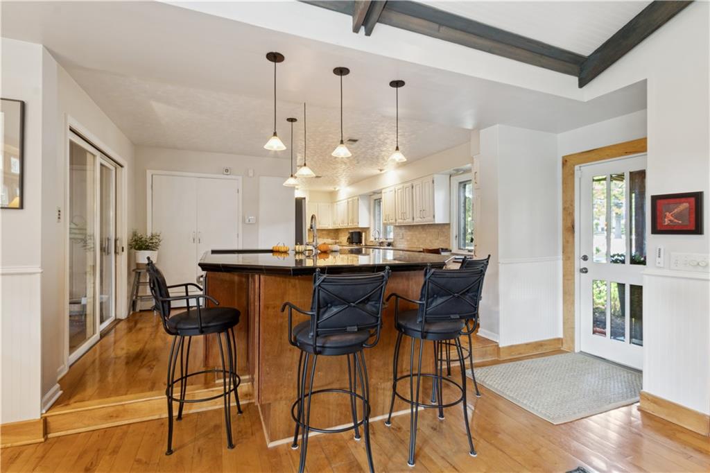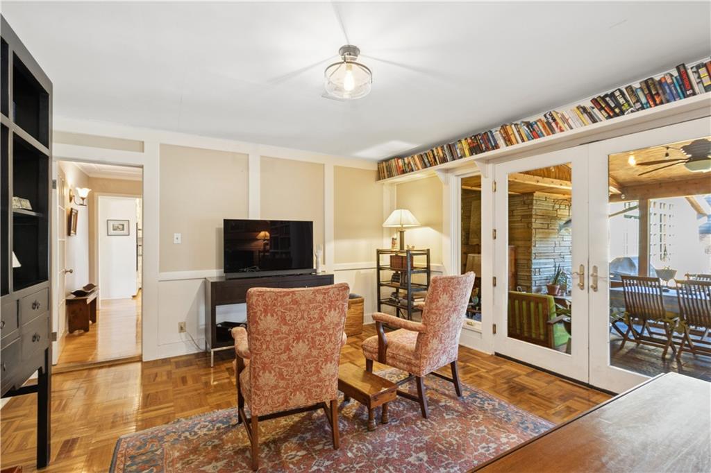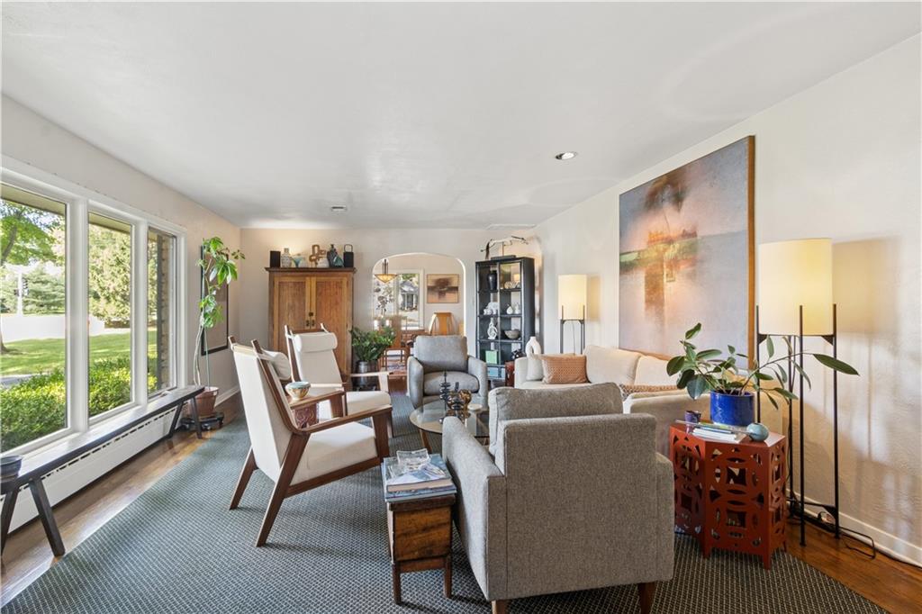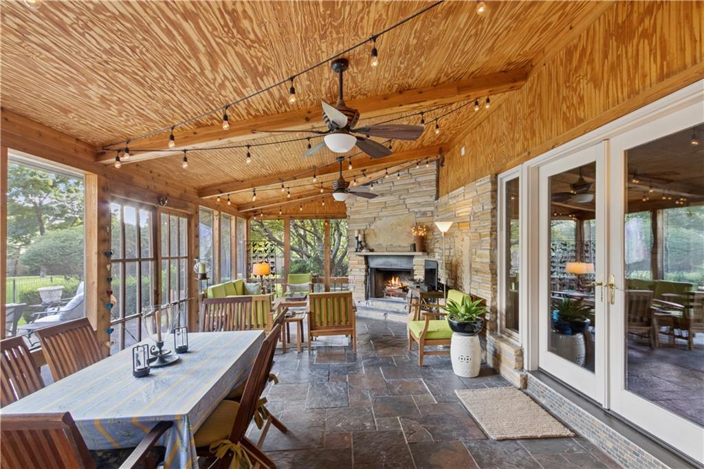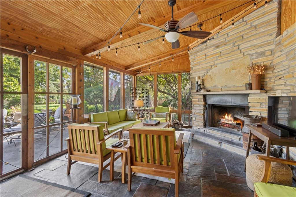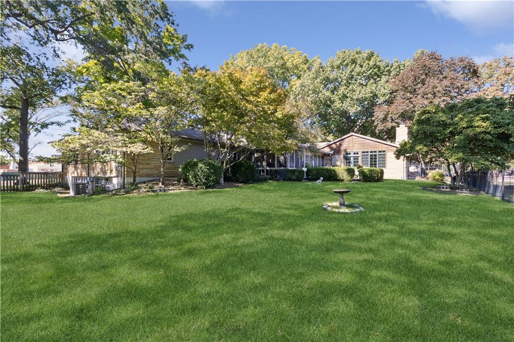 This beautiful mid-century home features twice cut random uncoursed sandstone masonry on the exterior and through the home. This rambling ranch is a tribute to Frank Lloyd Wright and an eye catcher as you enter Mission Hills. This home sits on .8 acre with beautiful mature trees. The Chef's kitchen opens to a large vaulted family room with a sandstone gas insert fireplace. Off of the kitchen is an entry to a massive sandstone screened porch featuring a wood burning fireplace and a slate radiant heated floor. From the porch you can open French doors into the office/library, which features a sandstone gas-insert fireplace and wet bar. Between the kitchen and the library/office is a half-bath and laundry room. The light filled Living room provides some of the finest sunsets and is adjacent to the formal dining room. The primary room also has a gas insert fireplace, walk in closets and radiant heated master bathroom floor. The large two bedrooms are joined by a newly finished Jack and Jill bath also with a radiant heated floor. A sprawling finished basement has a large entertainment area that leads into living quarters with 2 nonconforming bedrooms, however the exercise room in picture 34 can be a 4th conforming bedroom, included is a full bath and kitchen with a walkup to the back yard. This is a must see home which is in walking distance to schools and the Prairie Village shops. Seller is an owner and a real estate agent