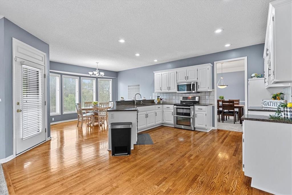 Best Value in the Neighborhood with New paint, updated kitchen, Trex deck, new flooring, new carpet and move in ready!! This home sits on a premium cul-de-sac lot backing to city-maintained green space with direct access to trails—perfect for biking, strolling or just enjoying the outdoors. Inside, you’re greeted by an inviting entryway, leading to an open-concept main floor with a spacious great room, kitchen and formal living and dining room. The spacious kitchen features granite countertops, ample cabinet space, and open sight-lines that make it perfect for gatherings. Upstairs, you'll find generously sized bedrooms, including an oversized primary suite with a large sitting room/office, spa-like bath, and an expansive walk-in closet. All secondary bedrooms each have their own bathroom access & walk-in closets! The walkout finished basement includes a wet bar/kitchenette, media room, office/game area, full bath, and plenty of room for entertaining or unwinding. Home is set up for great multi-generational living or home business. Small room in walk-out basement was previously a home salon. Perfect sized fenced backyard with a stunning stamped concrete patio, ideal for entertaining or relaxing. Enjoy the screened-in outdoor living area for extra entertaining space. This home provides unbeatable convenience—just a block from top-rated schools, close to neighborhood parks, pool, churches, and easy highway access. Plus, you're just minutes from great shopping and dining options. This home has it all—space, location, amenities, and style, in one of the area’s most desirable neighborhoods!