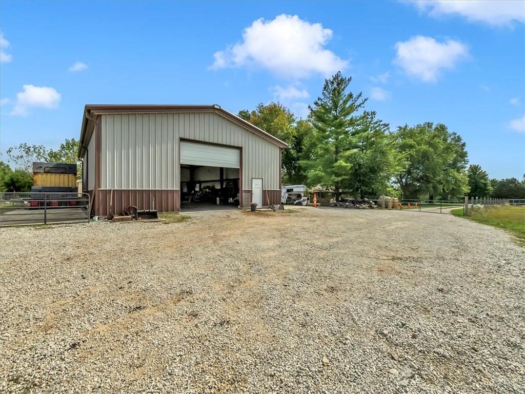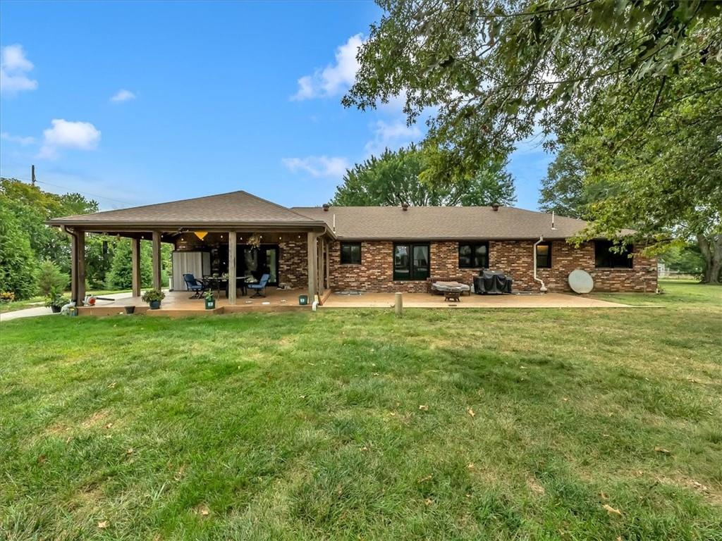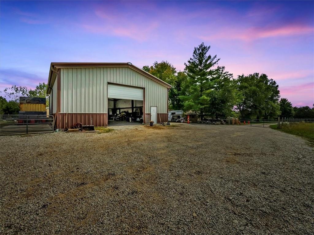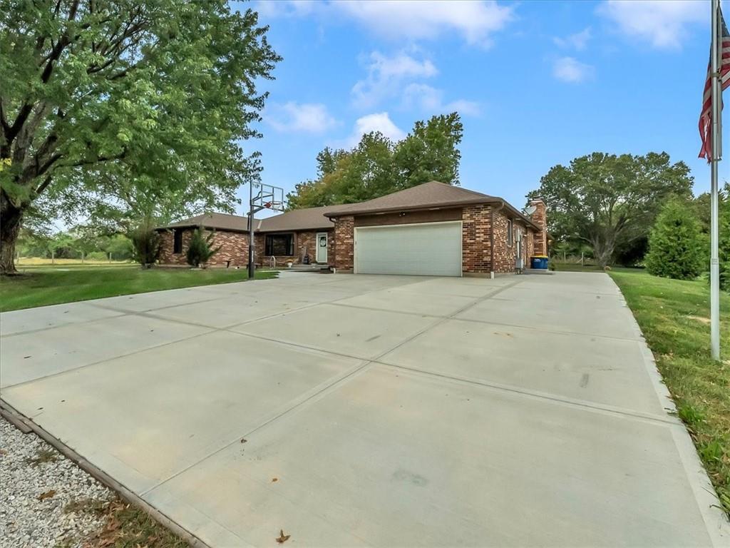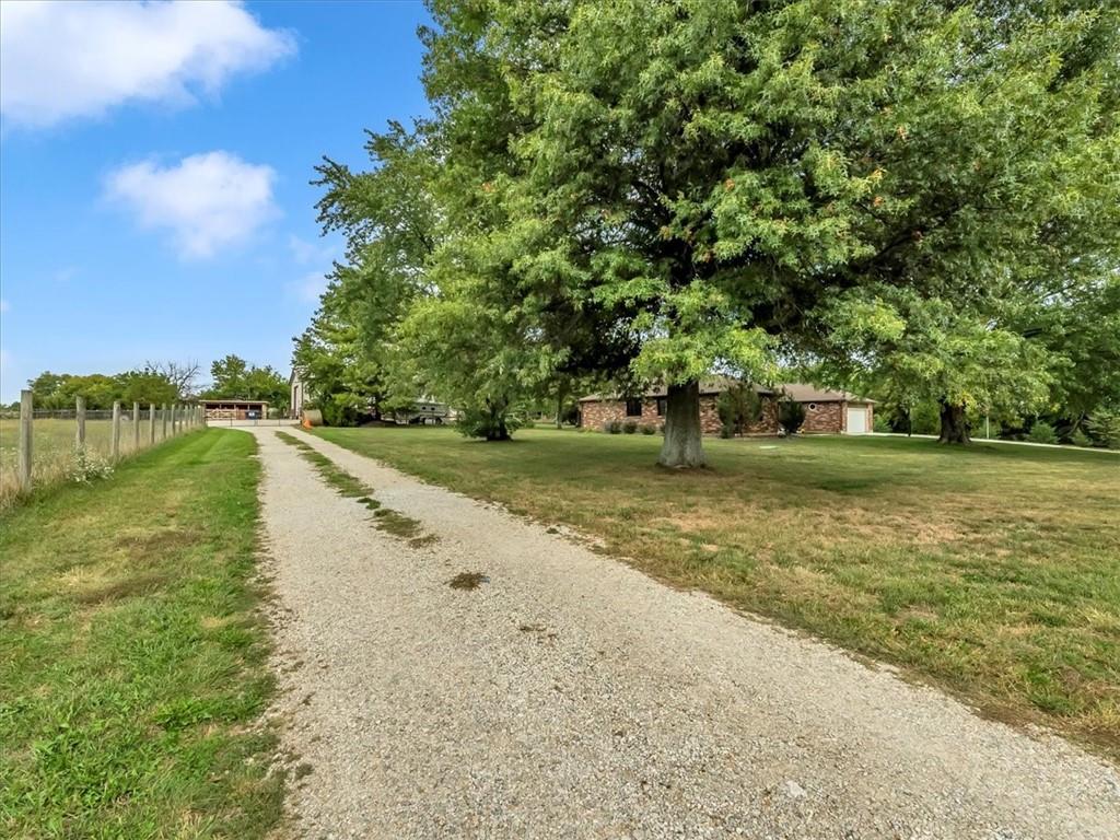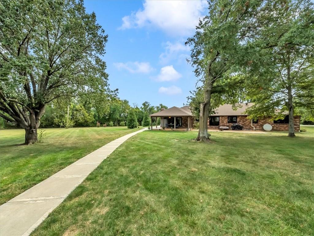 THIS is outdoor living at its FINEST! This property has SO MUCH to offer! And the big tickets items are DONE! Immediately upon entering the driveway you notice the fresh new concrete driveway pad. Enter through the front door on the brand new updated design sidewalk and front porch. OR go around back on the other side of the garage to an oversized extra driveway leading to back sidewalk (ALL this NEW CONCRETE WORK DONE 2024) connecting to 38x55 metal outbuilding. On BOTH north AND south side of barn--concrete pads, poured 6 inches deep (55Lx 16W) to park your RV, boat, construction equipment--what a dream!! Out building is built on 4ft foundation walls and has 2 oversized 14x14 garage doors. Every detail considered including drains in floor AND stubbed for bathroom. The gravel drive on the west side of the property makes this space easy to access. Venture back to the house and stop to appreciate the swoon-worthy covered back patio with concrete wood plank stamped concrete patio--both uncovered and covered area. The all brick ranch features SO MUCH NEWER BIG TICKETS ITEMS!! Brand NEW garage floor with epoxy and added drain tile-(completed in 2024). ALL WINDOWS and back door are Renewal by Anderson AND newer in last 6 years! Guttering has leaf guard protection. 2 hot water heaters new is 2018! HVAC has an air scrubber, perfect in time for the upcoming cold/flu season! Septic tank replacement in Nov 2016. 3 NEW lateral lines installed April 2023. Large oversized mudroom has convenient exterior exit and washer/dryer hookups---and more washer/dryer hookups can be found in the basement. Small pond on property, working water well and even a cistern give many options to feed animals or water gardens without running up your city water bill!