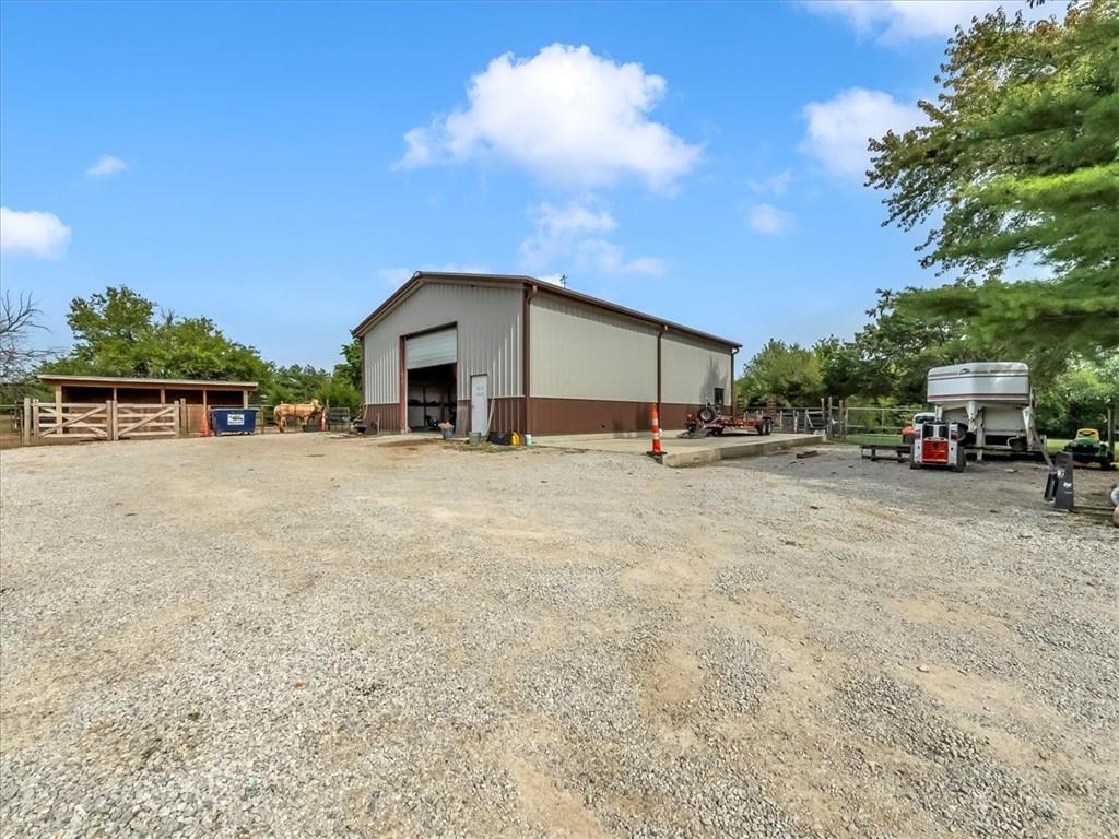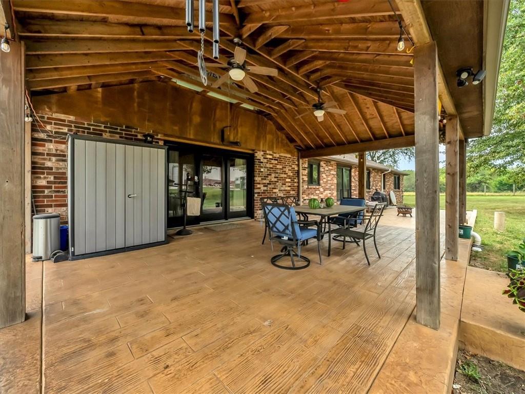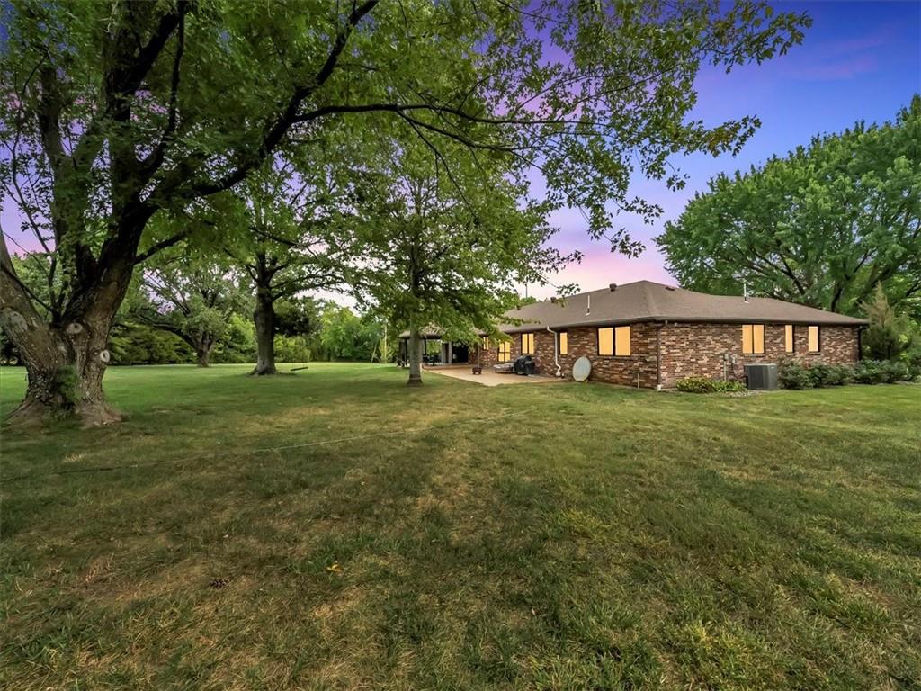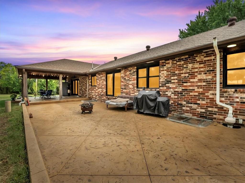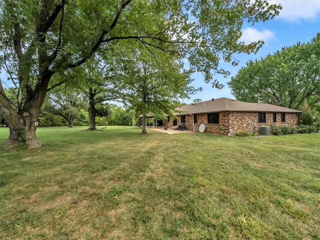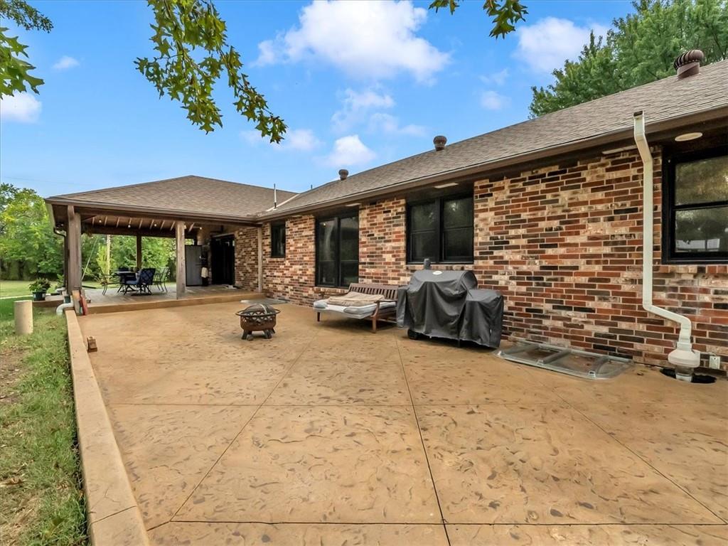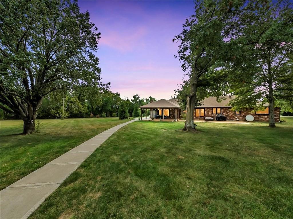 THIS is outdoor living at its FINEST! This property has SO MUCH to offer! And the big tickets items are DONE! Immediately upon entering the driveway you notice the fresh new concrete driveway pad. Enter through the front door on the brand new updated design sidewalk and front porch. OR go around back on the other side of the garage to an oversized extra driveway leading to back sidewalk (ALL this NEW CONCRETE WORK DONE 2024) connecting to 38x55 metal outbuilding. On BOTH north AND south side of barn--concrete pads, poured 6 inches deep (55Lx 16W) to park your RV, boat, construction equipment--what a dream!! Out building is built on 4ft foundation walls and has 2 oversized 14x14 garage doors. Every detail considered including drains in floor AND stubbed for bathroom. The gravel drive on the west side of the property makes this space easy to access. Venture back to the house and stop to appreciate the swoon-worthy covered back patio with concrete wood plank stamped concrete patio--both uncovered and covered area. The all brick ranch features SO MUCH NEWER BIG TICKETS ITEMS!! Brand NEW garage floor with epoxy and added drain tile-(completed in 2024). ALL WINDOWS and back door are Renewal by Anderson AND newer in last 6 years! Guttering has leaf guard protection. 2 hot water heaters new is 2018! HVAC has an air scrubber, perfect in time for the upcoming cold/flu season! Septic tank replacement in Nov 2016. 3 NEW lateral lines installed April 2023. Large oversized mudroom has convenient exterior exit and washer/dryer hookups---and more washer/dryer hookups can be found in the basement. Small pond on property, working water well and even a cistern give many options to feed animals or water gardens without running up your city water bill!