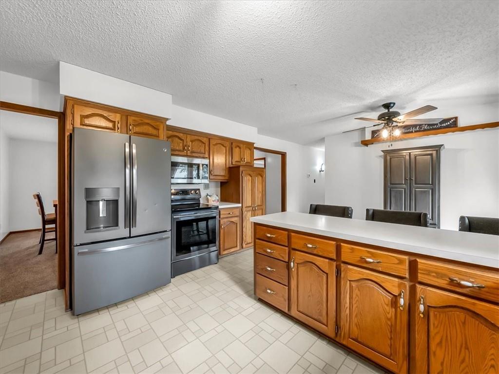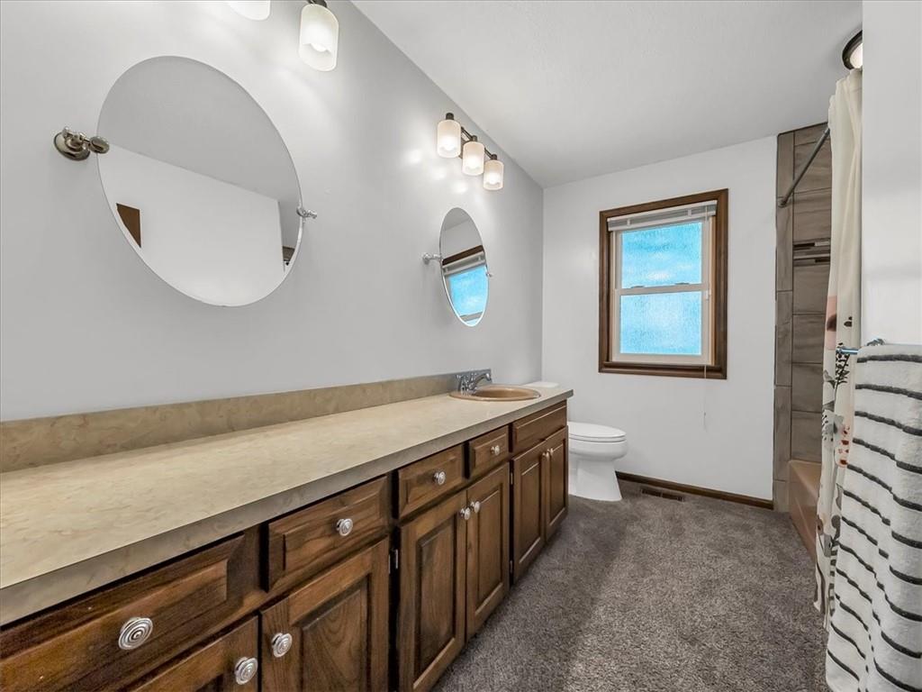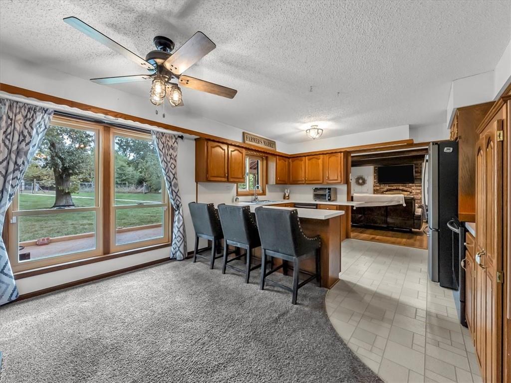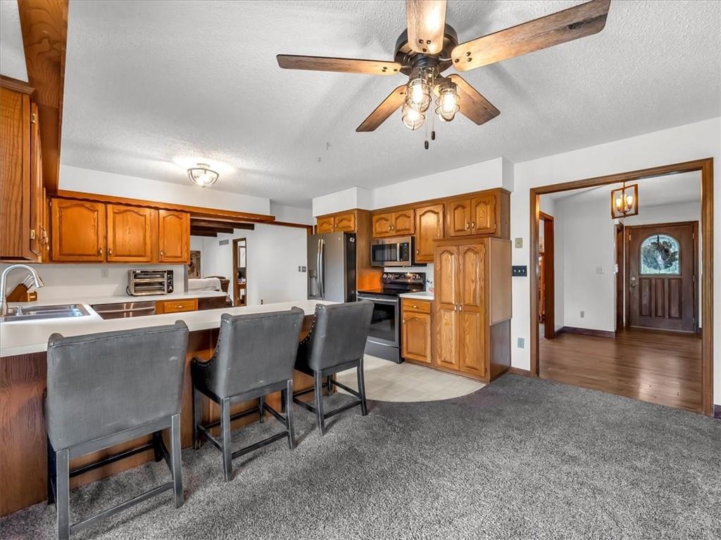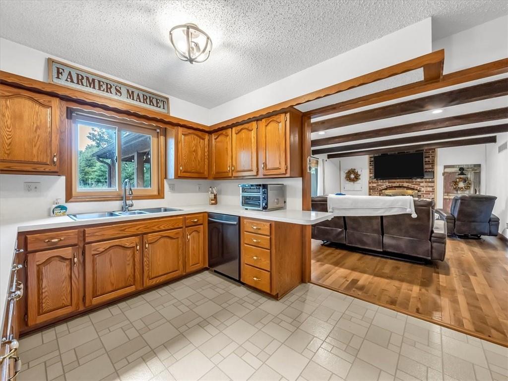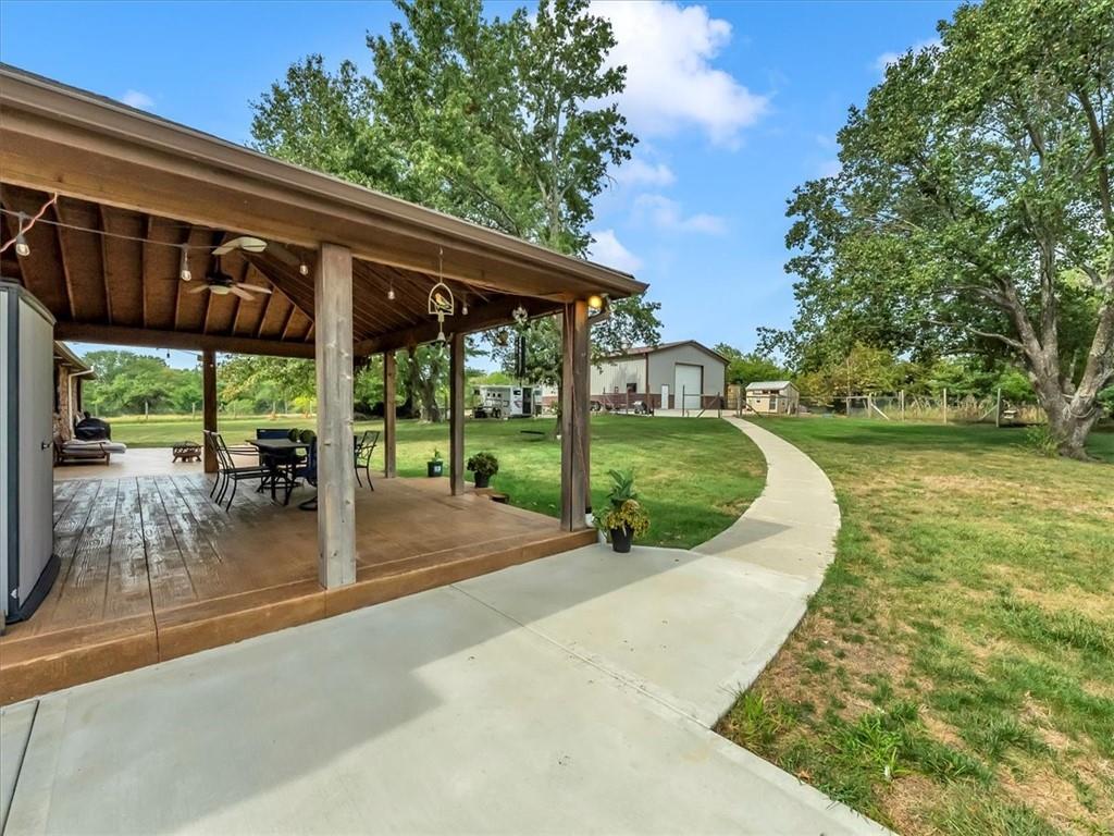 THIS is outdoor living at its FINEST! This property has SO MUCH to offer! And the big tickets items are DONE! Immediately upon entering the driveway you notice the fresh new concrete driveway pad. Enter through the front door on the brand new updated design sidewalk and front porch. OR go around back on the other side of the garage to an oversized extra driveway leading to back sidewalk (ALL this NEW CONCRETE WORK DONE 2024) connecting to 38x55 metal outbuilding. On BOTH north AND south side of barn--concrete pads, poured 6 inches deep (55Lx 16W) to park your RV, boat, construction equipment--what a dream!! Out building is built on 4ft foundation walls and has 2 oversized 14x14 garage doors. Every detail considered including drains in floor AND stubbed for bathroom. The gravel drive on the west side of the property makes this space easy to access. Venture back to the house and stop to appreciate the swoon-worthy covered back patio with concrete wood plank stamped concrete patio--both uncovered and covered area. The all brick ranch features SO MUCH NEWER BIG TICKETS ITEMS!! Brand NEW garage floor with epoxy and added drain tile-(completed in 2024). ALL WINDOWS and back door are Renewal by Anderson AND newer in last 6 years! Guttering has leaf guard protection. 2 hot water heaters new is 2018! HVAC has an air scrubber, perfect in time for the upcoming cold/flu season! Septic tank replacement in Nov 2016. 3 NEW lateral lines installed April 2023. Large oversized mudroom has convenient exterior exit and washer/dryer hookups---and more washer/dryer hookups can be found in the basement. Small pond on property, working water well and even a cistern give many options to feed animals or water gardens without running up your city water bill!