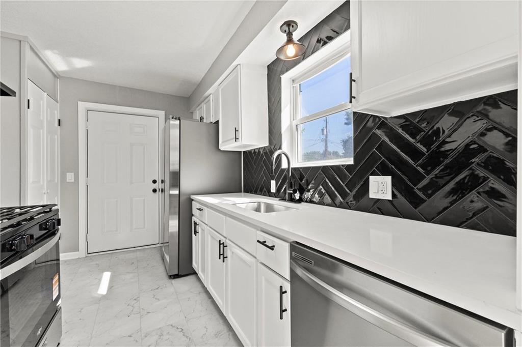 This totally modern home has been thoughtfully updated inside and out. Fresh interior and exterior paint create a crisp, inviting feel, while refinished hardwoods, new lighting, and a beautifully remodeled bathroom add comfort and style throughout. The kitchen shines with new cabinets and hardware, a sleek ceramic backsplash, and stainless steel appliances — including a gas range, dishwasher, and handleless refrigerator. A bright sun porch with LVT flooring and windows offers the perfect spot to relax year-round, and the convenience of main-level laundry makes everyday living a breeze. Outside, you’ll love the brand-new deck, fenced backyard, and a double driveway with plenty of parking. Every detail has been done — all that’s left is to move in and enjoy!