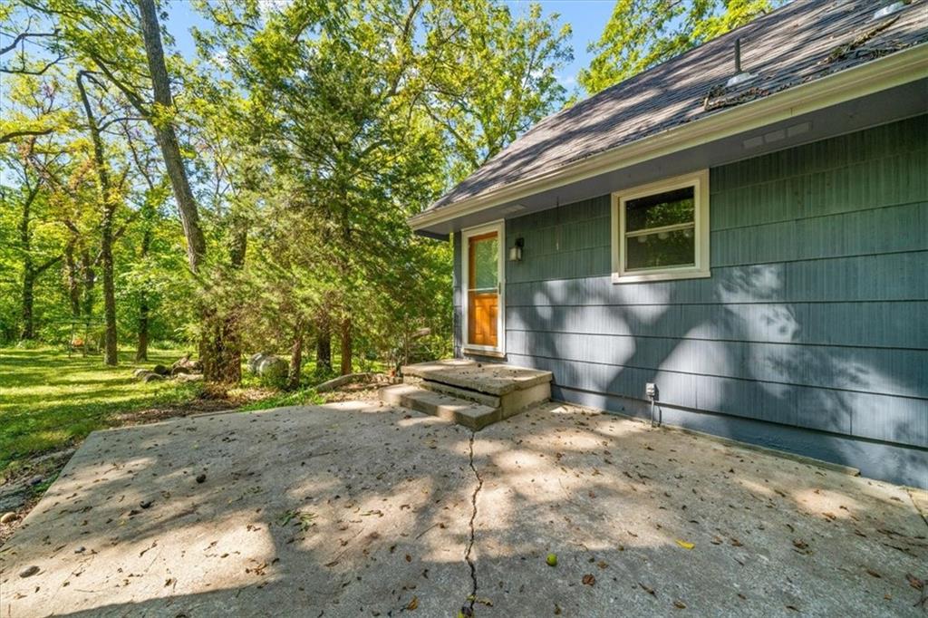This property is a true hidden gem in Platte County, Missouri. It's not everyday that a home sitting on 3.44 acres in unincorporated Platte county becomes available. This 4 bedroom 2 bath home has endless possibilities for its new owners. With a little love and your vision, this property could easily be your dream estate. The home currently boasts a nature lovers paradise. Sit on the front porch and enjoy the expansive property complete with walnut trees and plenty of privacy. Inside the home, you'll find wood floors throughout most areas and newer doors and windows. The main level has a cozy kitchen with updated appliances and an eat-in kitchen area. The living room offers a large picture window with a wonderful view of the front of the property and leads to the two main floor bedrooms and a full bathroom. The second floor adds two additional bedrooms and a shared half-bathroom. The lower level includes an entrance from the driveway, a finished living space with a closet and a large unfinished area that houses the utilities and extra storage. You do not want to miss the opportunity to see this unicorn of a property. Home does share a driveway with the house up the hill. The driveway is on this property.