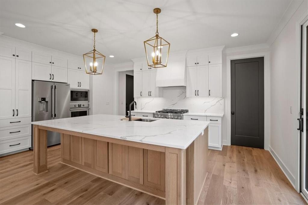 READY TO MOVE IN IN LESS THAN 30 DAYS! MOJO Built's functional first-class Modern Farmhouse 2 story floorplan. Plenty of main floor living space with a dedicated dining area and expansive kitchen featuring unique interior and exterior stone features, giving this home more of an elevated feel. All of the MOJO standards are included in this home meaning quartz countertops in the kitchen with soft-close drawers & undercabinet LED lighting, refrigerator included, engineered hardwood floors, a trim package that includes a large base on 1st Floor, large door/window casing, crown molding, wainscoting in the foyer and den, & large base and large window/door casing in Upstairs hallway, and a custom marble fireplace in the living room! Mirrors provided above all bathroom sinks, & wall-to-wall carpeting in basement, in all 2nd floor bedrooms, and runner on staircase. Master bath includes a frameless clear-glass shower door and custom surround for Master Shower with chrome hinges/hardware and undercabinet LED lighting. Quality of construction reflected in drywall with Level 5 ceilings & Level 4 Walls with square corners and flat finish on all ceilings, including the garage, in paint with a flat finish on all walls with eggshell enamel and painted garage walls and ceiling, Exterior finishes with a 30yr composition roof, HVAC w/high-efficiency 96% AFUE gas furnace and 13-SEER AC Unit and Humidifier Included, and in Plumbing & Electrical w/ a 50-Gallon Gas Water Heater, Blanco Kitchen Sink, can lights throughout common areas, and buried 200amp electrical service. **Photos are of another MOJO Built home with a similar floorplan