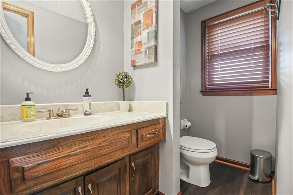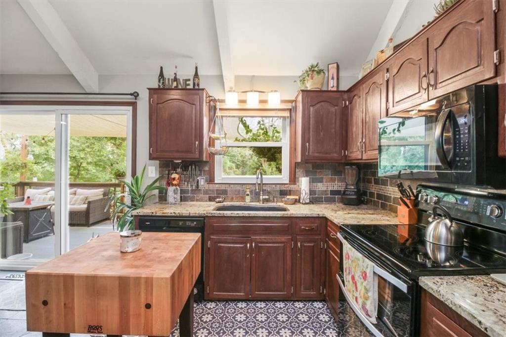 This charming home is nestled in Parkville and boasts 3 bedrooms, 2.5 baths. Features hardwood floors, a cozy fireplace, an updated kitchen with granite counters, and outdoor deck overlooking a private backyard oasis. With a two-car garage and a serene neighborhood setting, this home perfectly balances comfort, character, and convenience. All measurements are estimated. Responsibility of Buyer's Agent to verify exact measurements.