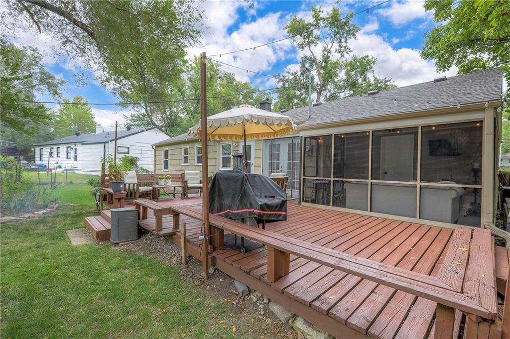 Charming and beautifully maintained ranch with updates galore! Enjoy peace of mind with new roof, gutters and windows. Interior updates include refinished hardwood floors, updated lighting throughout, refreshed bathrooms, new interior paint, and new interior doors and trim. The primary bedroom offers a half bath and a bonus space perfect for a home office, nursery, or work out area. The kitchen features modern touches, gas stove, new garage disposal and flows seamlessly to the dining area and screened in patio. North facing windows are tinted for added comfort and energy efficiency, and custom wood blinds enhance both bedrooms. Enjoy the beautiful fall weather with the large backyard, firepit, and expansive deck-perfect for entertaining. This wonderful home blends true classic charm with thoughtful updates inside and out- truly move-in ready!