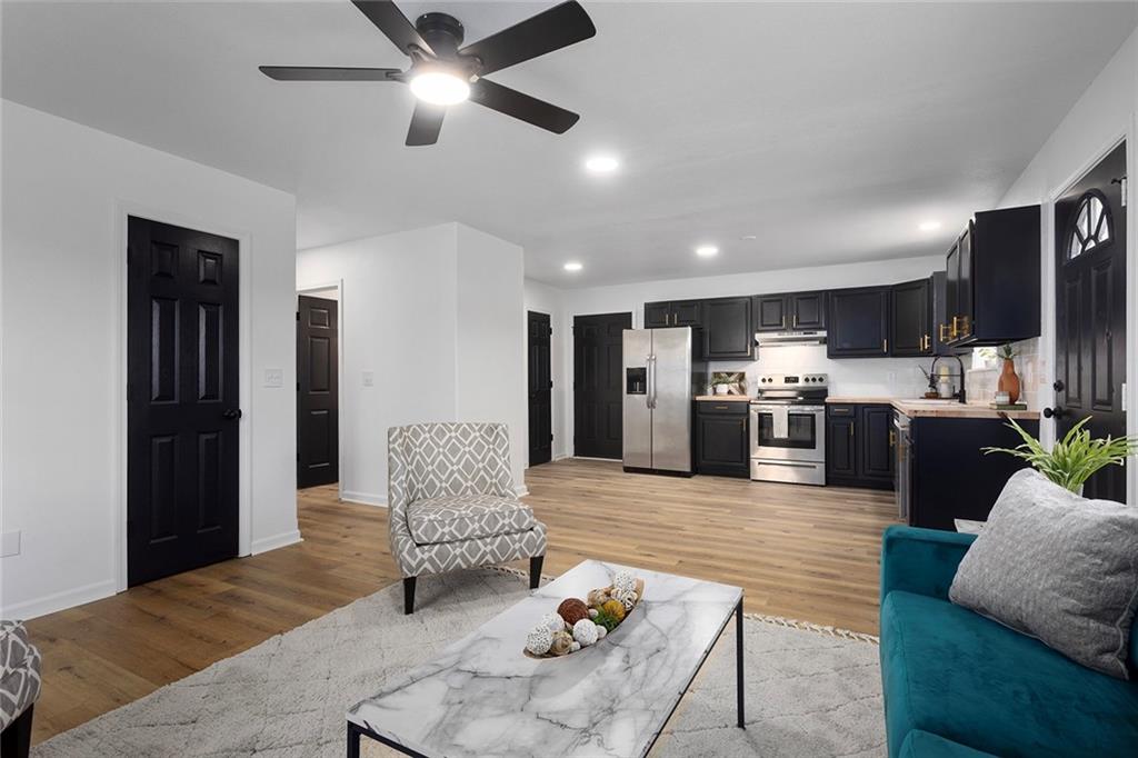 Step into this beautiful, rehabbed home, where modern living meets comfort and charm. Enjoy your morning coffee on the inviting covered front porch, then head inside to a bright, open floorplan filled with natural light. The spacious family room flows seamlessly into a sleek, modern kitchen featuring stainless steel appliances. Throughout the home, you’ll find updated plumbing and stylish light fixtures that add a fresh, contemporary touch. Outside, the nicely treed yard offers shade and serenity, along with a handy shed for storing all your lawn care essentials. This move-in ready gem is a must-see!