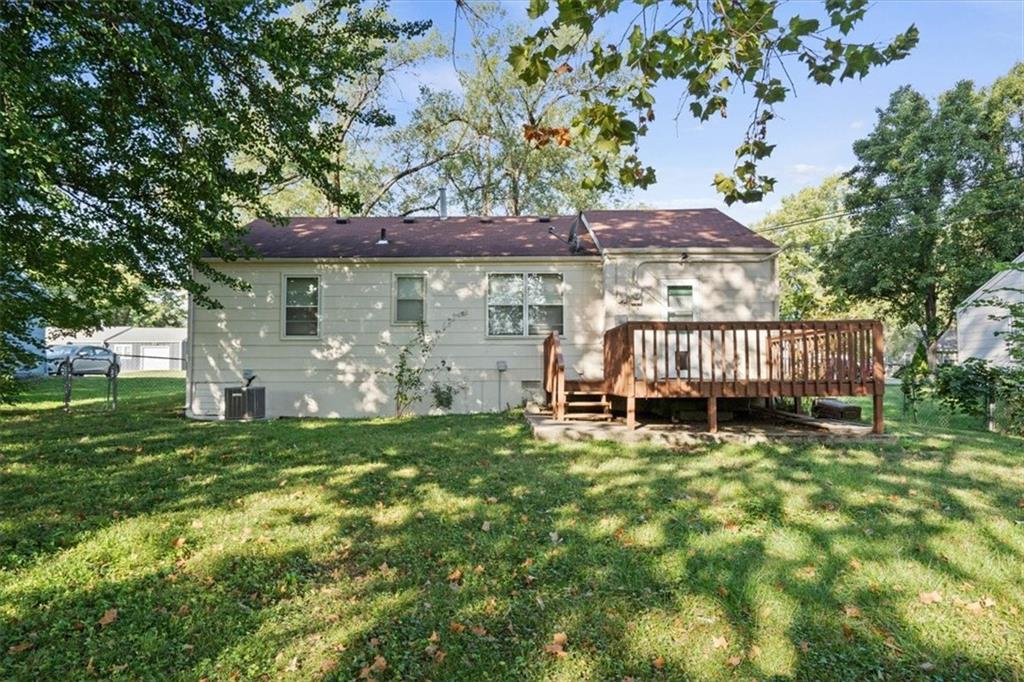 This 3-bedroom, 1-bathroom home in Raytown is a great find at an affordable price. Fresh paint and hardwood floors give the interior a bright, move-in ready feel, while large windows bring in plenty of natural light. The kitchen includes generous cabinet space, a double oven, and a side-by-side refrigerator, with an adjoining flex room that can serve as a dining space, office, or additional living area. The updated bathroom features clean tile work and modern finishes, and the laundry area offers built-in storage and room for organization. Step outside to enjoy the spacious backyard with mature shade trees and a deck that’s perfect for relaxing or entertaining. Conveniently located near schools, parks, shopping, and quick highway connections, this home offers a great blend of comfort and accessibility. A smart choice for first-time buyers looking to plant roots and build equity.