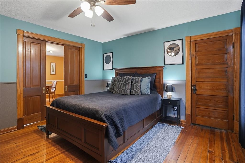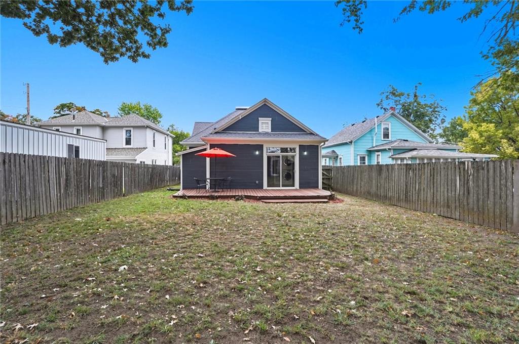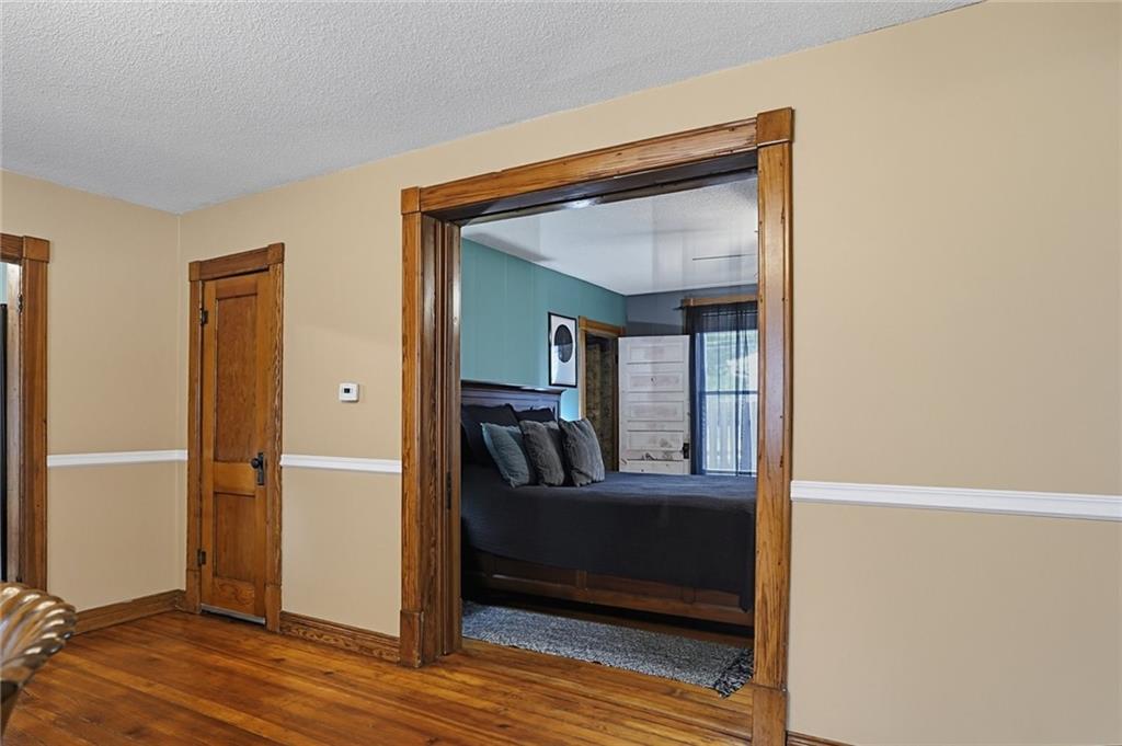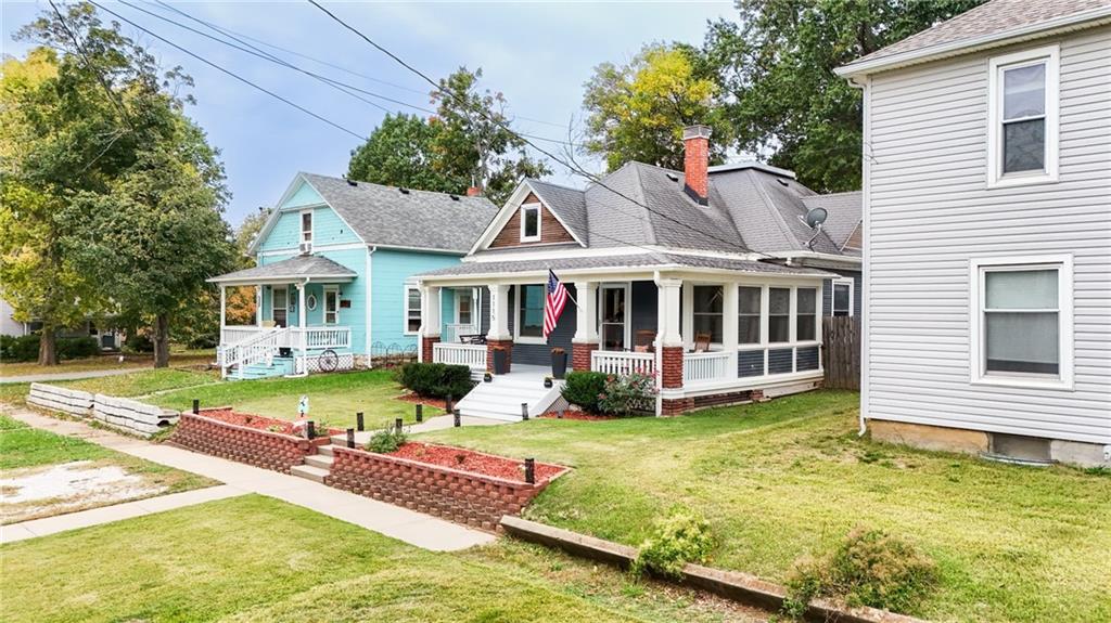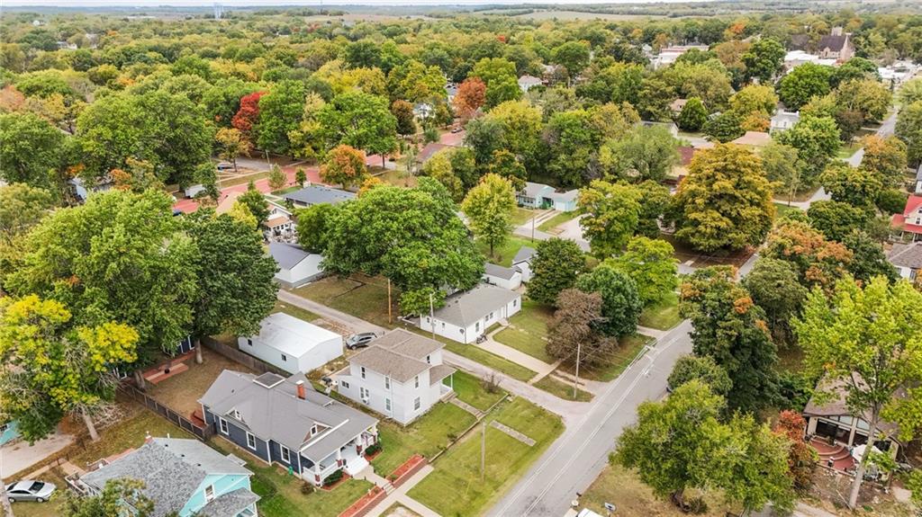 BACK ON MARKET NO FAULT TO SELLER, BUYER UNABLE TO PERFORM. WHAT A COMPLETE CHARMER! This 2 bed, 1 bath home is filled with warmth, character, beauty, a perfect blend of new and old and truly great spaces. The dreamy front porch greets you and asks you to sit a spell. The moment you walk into the entry you feel invited into this lovely home. The room sizes are spacious and effortlessly flow into each other. The dining room boasts of the beautiful hardwood floors and very spacious area that allows a large table for many gatherings. Plenty of storage in the kitchen with a stunning built in wood cabinet we believe to be the age of the home. The vast and large attic could be used for substantial storage or you could renovate it and have an incredible area and added square footage. The Cellar allows for more storage and safety from Kansas weather. Bonus room off of primary could be used for an office, workout room or library, etc. Gorgeous original hardwood floors refinished in 2023 in the living room, dining room and primary bedroom. Primary bedroom has a walk in closet and the most elegant sliding original pocket doors. New laminate flooring in kitchen and laundry room, New carpet in 2nd bedroom, repainted the front porch all in 2025. And additionally, just re-stained the back deck and painted both sheds. Fenced backyard with two sheds. Two off street parking spaces out front. This is your opportunity to live in charming Baldwin with its wonderful downtown area with restaurants, ice cream shop and a coffee shops, and the beloved Maple Leaf Festival. I cannot say enough about this truly special home accept you should not hesitate to schedule your showing now.