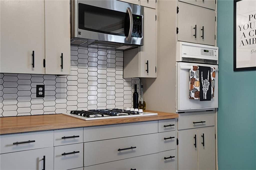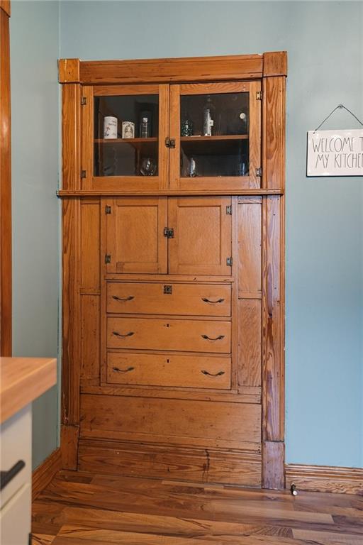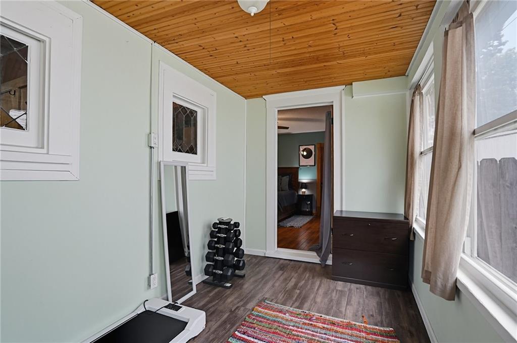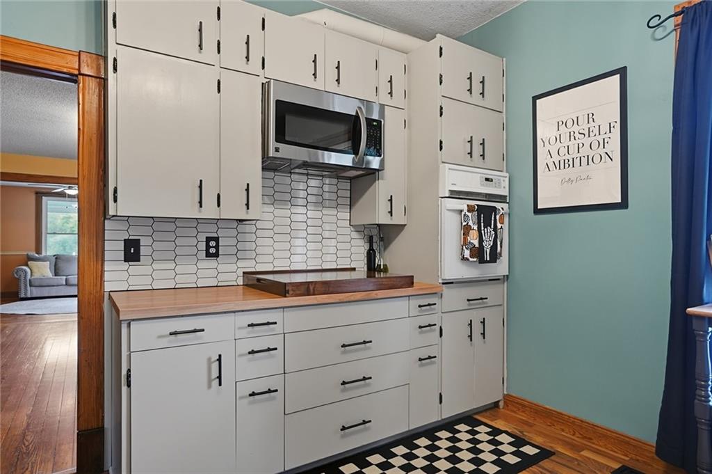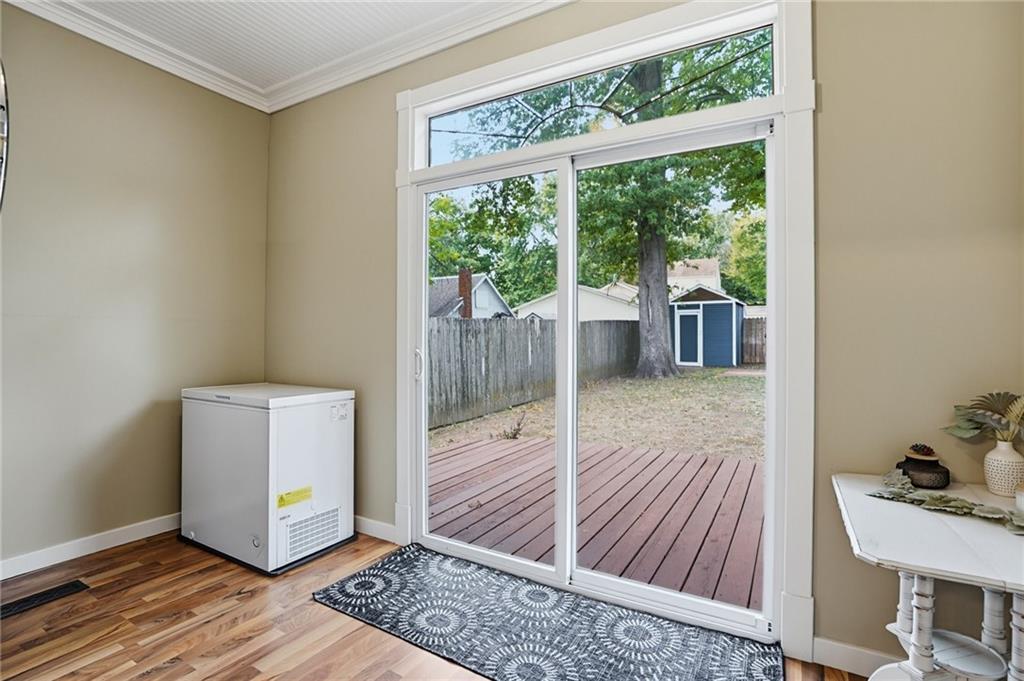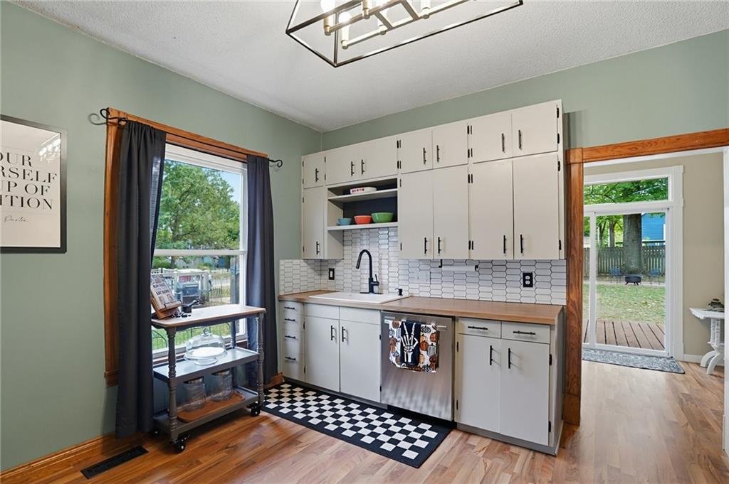 BACK ON MARKET NO FAULT TO SELLER, BUYER UNABLE TO PERFORM. WHAT A COMPLETE CHARMER! This 2 bed, 1 bath home is filled with warmth, character, beauty, a perfect blend of new and old and truly great spaces. The dreamy front porch greets you and asks you to sit a spell. The moment you walk into the entry you feel invited into this lovely home. The room sizes are spacious and effortlessly flow into each other. The dining room boasts of the beautiful hardwood floors and very spacious area that allows a large table for many gatherings. Plenty of storage in the kitchen with a stunning built in wood cabinet we believe to be the age of the home. The vast and large attic could be used for substantial storage or you could renovate it and have an incredible area and added square footage. The Cellar allows for more storage and safety from Kansas weather. Bonus room off of primary could be used for an office, workout room or library, etc. Gorgeous original hardwood floors refinished in 2023 in the living room, dining room and primary bedroom. Primary bedroom has a walk in closet and the most elegant sliding original pocket doors. New laminate flooring in kitchen and laundry room, New carpet in 2nd bedroom, repainted the front porch all in 2025. And additionally, just re-stained the back deck and painted both sheds. Fenced backyard with two sheds. Two off street parking spaces out front. This is your opportunity to live in charming Baldwin with its wonderful downtown area with restaurants, ice cream shop and a coffee shops, and the beloved Maple Leaf Festival. I cannot say enough about this truly special home accept you should not hesitate to schedule your showing now.