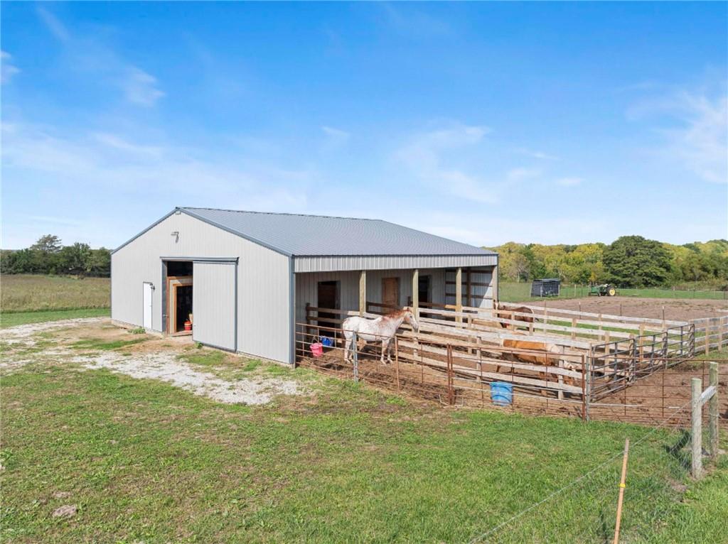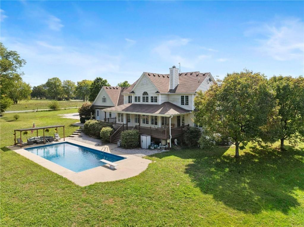 Country Living Without Sacrifices! Welcome to this stunning 5,758 sq ft, 6 bedroom (2 non-conforming), 4.5 bath home on 5 acres — offering luxury, privacy, and endless amenities for comfort and entertainment. Enter through an iron automatic gate to a fully fenced estate with a circle drive and three-car garage. Mature trees and open acreage provide seclusion without sacrificing space or function. Main Level Features: • Chef’s kitchen with dual islands, induction cooktop, wall oven & microwave, trash compactor, toe-kick vacuum, and eat-in dining • Grand living room with vaulted ceilings, wood-burning fireplace, and expansive windows • Formal dining room • Primary suite with deck access, jetted tub, double sinks with built-in vanity, and walk-in closet • Main-floor laundry with chute Upstairs Includes: • A curved loft overlooking the living room • Three bedrooms — one with a secret playroom and ensuite bath • Additional hall bath • A spacious recreation room Fully Finished Lower-Level Offers: • A second full kitchen, dining, and expansive entertainment space – perfect for large gatherings and holidays, homeschooling, or even a home-based business • Two bedrooms with a double-vanity bathroom Outdoor Living is Equally Impressive: • Large, freshly painted deck • Saltwater pool with private lounge area • Two fenced paddocks for horses or hobby farm • 40x50 outbuilding (horse barn or sellers will remove stalls for workshop) • Treehouse and chicken coop for fun and farm charm Additional Features: • Central vacuum system • Tons of storage • 2 ensuite bedrooms • Two new water heaters • Newer roof • Mature trees for shade, privacy, and beauty • Three-lateral septic (efficient and low-maintenance) • Pet shower station This home blends modern convenience with peaceful country living — perfect for family life, entertaining, or simply enjoying your own private retreat. Don’t miss this one-of-a-kind estate!