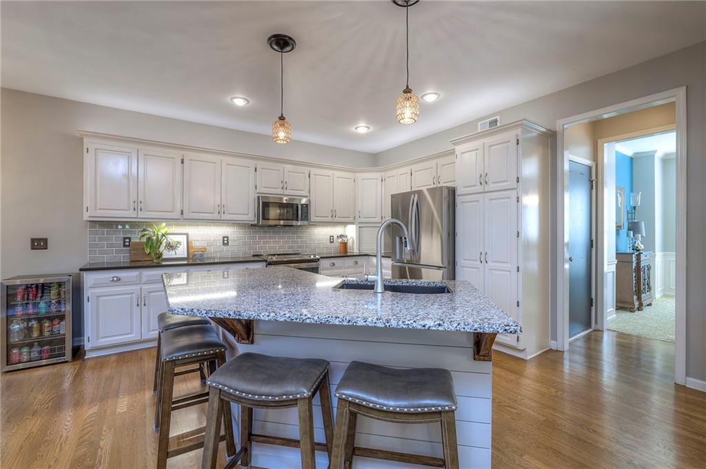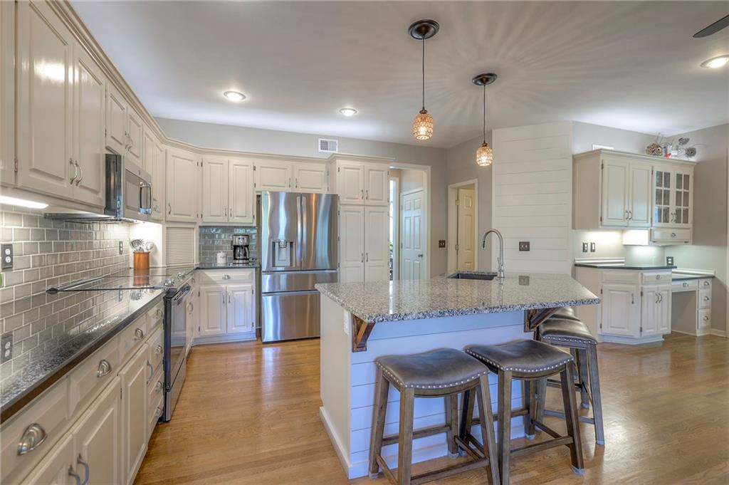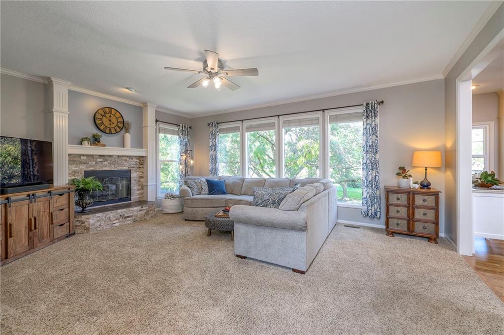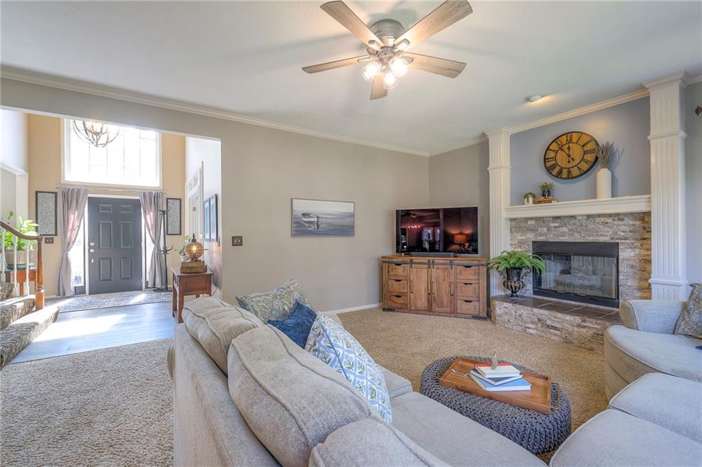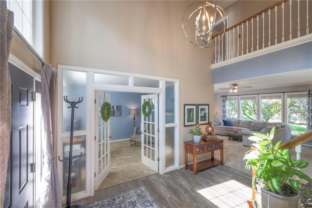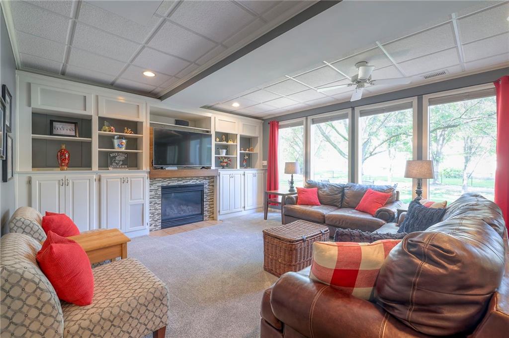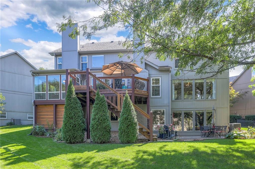 RARE FIND in the sought-after Wellington Park neighborhood and Blue Valley School District! This BEAUTIFUL UPDATED 5-bedroom, 4.5 bathroom, 2-story home has a 3-car tandem garage and WALK OUT basement! Grand Entrance, Hardwood Floors and ample Natural Light! Main level includes an AMAZING UPDATED Kitchen/Hearth Room with fireplace & built-ins, Office, Formal Dining Room, Family Room, and updated Half Bath. Also, a cozy 3-SEASONS room is perfect for relaxing and sipping your morning coffee! Upstairs, 4 spacious bedrooms await, including a STUNNING PRIMARY SUITE offering a tranquil sitting area with fireplace. Your private oasis also includes an updated spa-like en-suite bath features a freestanding tub, heated tile floor, separate glass-enclosed shower, dual vanities and custom walk-in closet. FINISHED WALK-OUT Basement includes a recreation room with fireplace and custom built-ins, Wet Bar, 5th Bedroom & Full Bath. NEW ROOF! Many newer Windows and lower-level Stone Patio! THREE-CAR garage provides abundant space for vehicles & storage. Lush landscaping, Sprinkler System and extra storage under the deck! Home backs to neighborhood trail leading to elementary school, public library and connecting to miles of walking/biking paths maintained by the city! Located in one of Overland Park’s most desirable areas, this neighborhood includes a RESORT-STYLE POOL, tennis & pickleball courts, playground, clubhouse, fantastic community activities. Minutes to shopping, restaurants and highways! A MUST SEE to appreciate. MOVE IN READY!