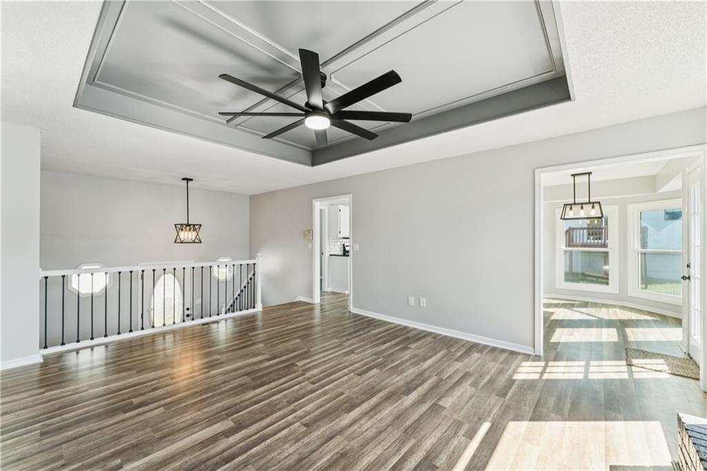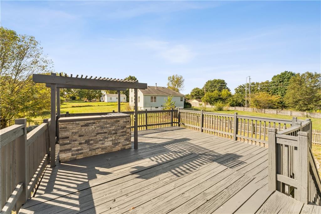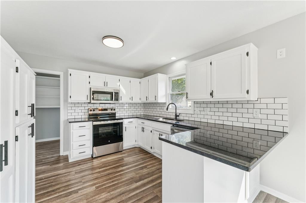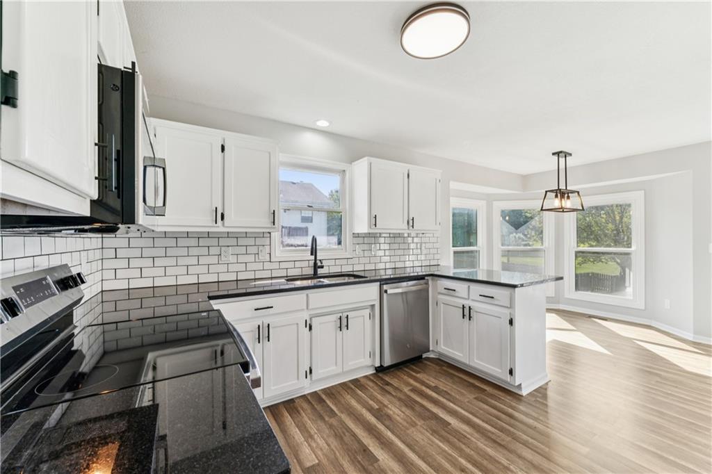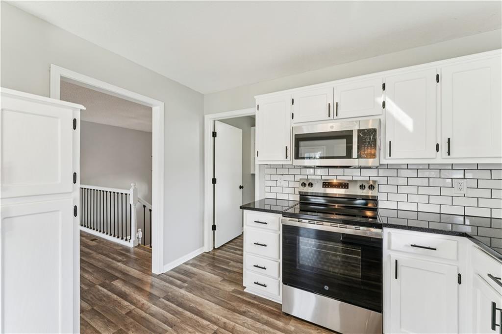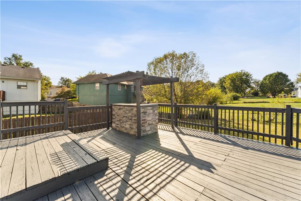 Beautifully refreshed split-entry home with modern updates throughout! The exterior boasts a full repaint in stylish, contemporary colors that elevate curb appeal. Inside, you're greeted by an open view of the great room, featuring updated finishes such as new railings, tile and LVP flooring, modern lighting, and a neutral color palette. The kitchen shines with new granite countertops, a sleek tile backsplash, stainless steel appliances, and updated hardware. Both main-level bathrooms have been tastefully renovated with fresh, on-trend finishes. Downstairs, enjoy a finished basement complete with custom built-in cabinetry, a wine storage closet, and an additional half bath. The fenced yard offers inviting spaces for both relaxation and entertaining, whether you're hosting on the oversized deck with a built-in bar and pergola, or unwinding by the firepit. With its convenient location, thoughtful upgrades, and attractive price point, and 1-year home protection warranty, this home is sure to impress!