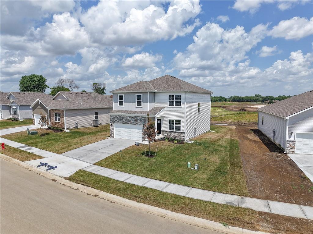 Built by D.R. Horton Inc®, this stunning residence is our Holcombe Plan, which combines superior craftsmanship with the latest in-home design, creating a space that’s as functional as it is beautiful. This 4-bedroom, 2 1/2-bathroom, 2-story home is situated in Peculiar, MO. Comfortably nestled in the heart of our Tuscany community. As you step inside, you’ll be greeted by 9-foot ceilings and an abundance of natural light. The heart of this home is undoubtedly the Chefs Kitchen, featuring a Chef-inspired Gas Range, gorgeous 36-inch painted maple cabinets, beautiful white quartz countertops, and top-of-the-line Whirlpool® stainless steel appliances. Which will all be perfect for both everyday meals, as well as entertaining guests. The Primary suite is a generous space, leading to our Primary Ensuite bathrooms. All of which are designed to be your own personal sanctuary, with features like quartz-topped vanities, Moen® Chrome Faucets, and a walk-in shower, helping to create a serene retreat from the hustle and bustle of daily life. This home is also equipped with cutting-edge Smart Home technology. Control your environment effortlessly with a Honeywell® Pro Z-Wave® Thermostat, Amazon Echo, and a connected home panel, all designed to make your life easier and more comfortable. LED lighting throughout the home and energy-efficient windows ensure that this home is as practical as it is beautiful. From luxury vinyl flooring to a garage complete with openers, every detail in this home has been thoughtfully considered. This Beautiful 2 story also features a full, unfinished basement already stubbed for plumbing to aid in future growth opportunities. Don’t miss the opportunity to own this exceptional property in Tuscany!