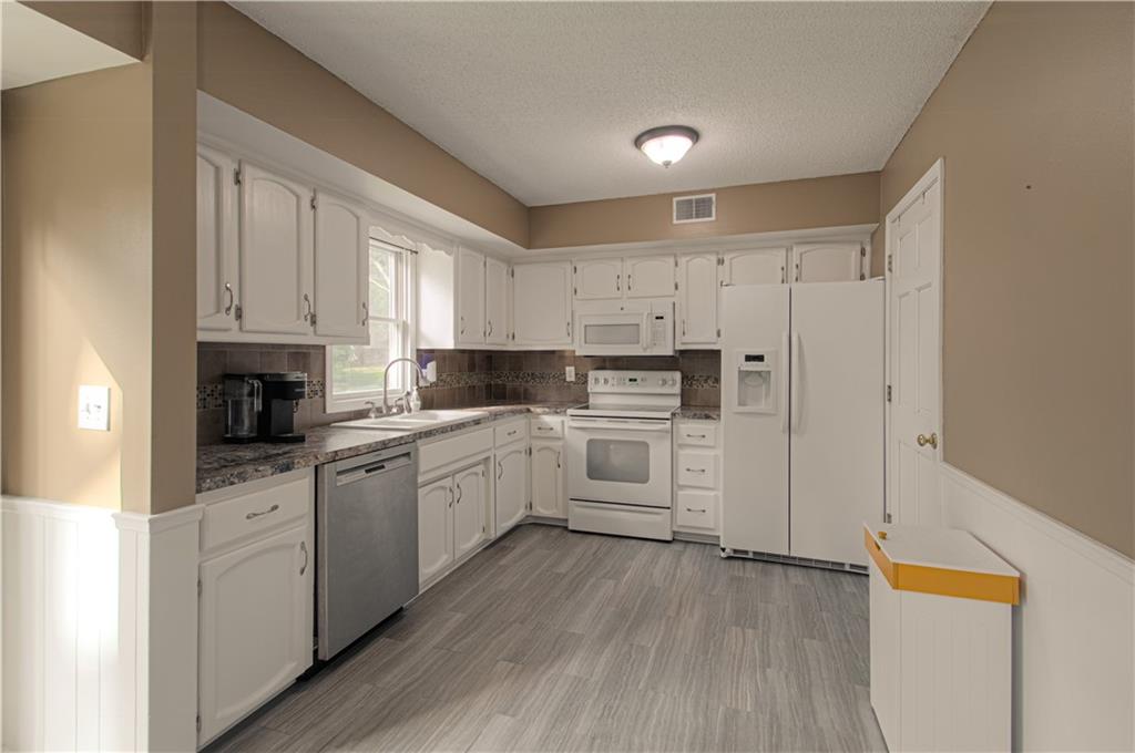 Come Quick, to see this well maintained, move in ready 3 bedroom, 2 bathroom home. Maintenance Free Vinyl siding and newer large patio, just off the newer composite rear deck with a flat, fenced backyard for the entertainer in the family! Enjoy the ease of turn key on this one. Fresh interior paint and brand new carpet throughout. Laundry on the main level. 24' deep garage for storage and vehicles. Large driveway with tandem or boat/RV parking on the side. This home is in the highly sought after Staley High school area. This home is in a quiet neighborhood with mature, manicured trees to enjoy!