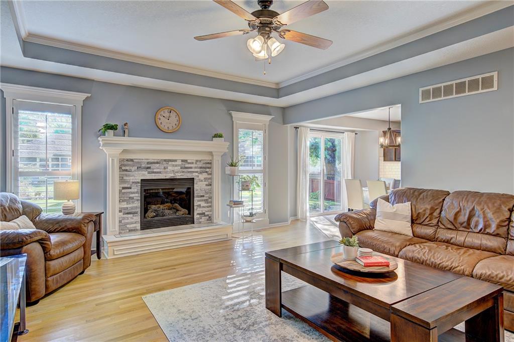Come experience this meticulously maintained 3 bedroom, 2.5 bath home near Fleming Park and Lake Jacomo! Built in 2006 with recent kitchen and bath updates, this home has it all! Walnut soft-close kitchen cabinets and quartz countertops, white oak hardwood floors, newer carpet, Lennox 96% efficiency HVAC, deep garage spaces for additional storage, bonus outdoor shed, 200 amp electrical service, lawn sprinklers, radon mitigation installed, and all appliances stay! The primary suite has large windows, a walk-in closet, and easily hosts a king-sized bed. The primary bath has both a jetted bathtub and a separate shower. Enjoy the gas fireplace in your living room and convenient patio off the kitchen for summer barbeques. The finished lower level provides extra entertainment space and a half bath. Well-loved and cared for, this home is a rare find in todays market.