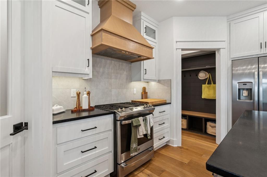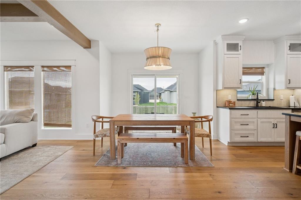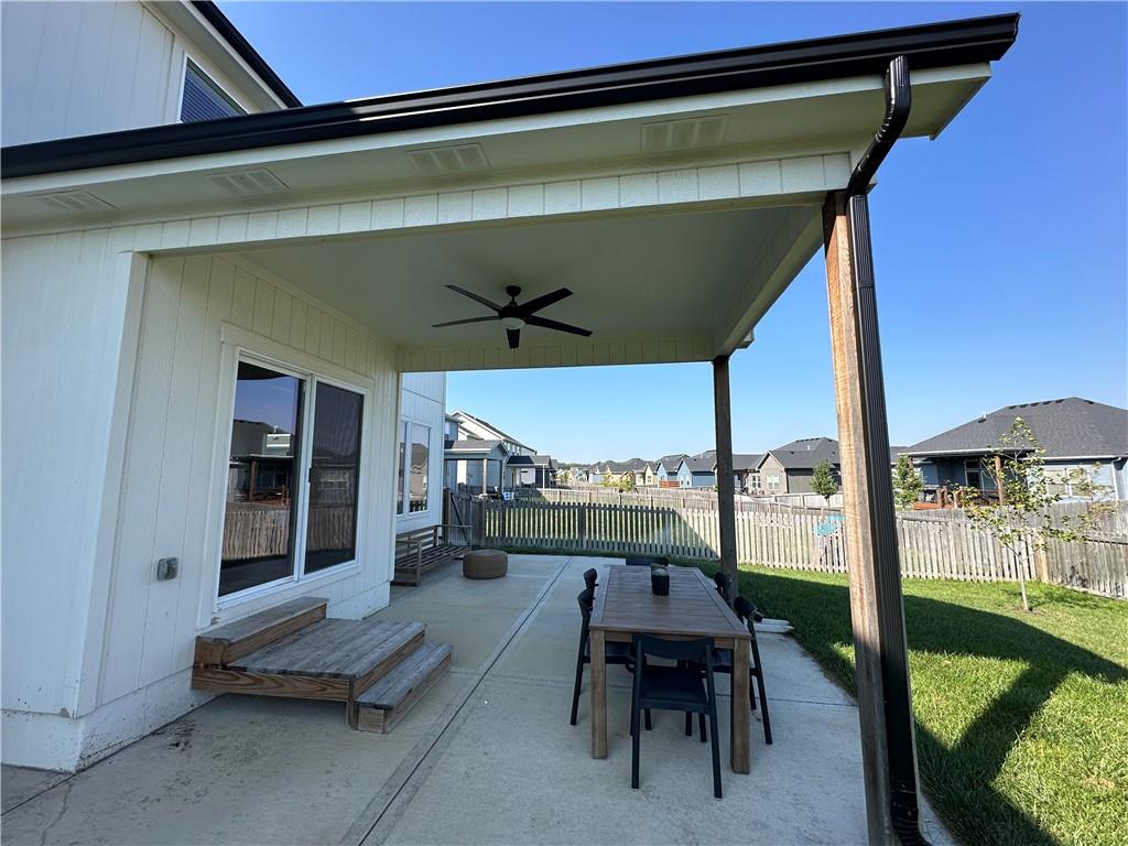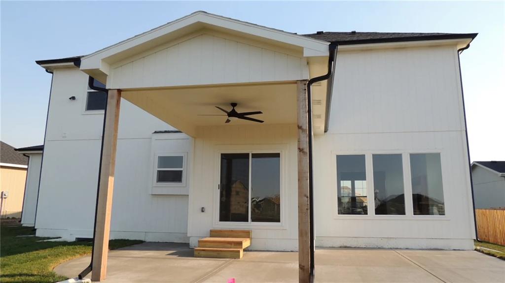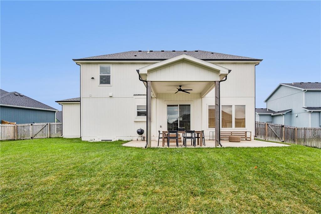 Welcome home to Symphony Farms, a sought after subdivision in Gardner, KS. This 3 year new resale home located on a cul-de-sac is one of Lifestyle Building & Design's Clint plan and is gorgeous throughout with lots of upgrades! Greet your guests in the 2 story entry off the covered front porch. Upgraded wood floors throughout the main level. The kitchen has cabinets to the ceiling, white oak hood and island, upgraded honed countertops, composite sink, gas range and GE profile s/s appliances. The custom butler pantry has an adjustable appliance stack, two oversized can good/spice racks, lots of storage and outlets throughout. The living room has beams, gas fireplace and lots of windows letting natural light in. Use the large front room as your formal dining room, playroom or tv room! Off the garage is spacious area with a built-in desk, shelves, boot bench and half bath. Upstairs are all 4 bedrooms: one with a bonus room! Primary suite has shiplap ceiling with beams & ceiling fan. Primary bath has upgraded white oak double vanity with open area below for towels and baskets, soaker tub, large walk-in shower with bench. 2 bedrooms share a jack-in-jill bathroom with vanity with 2 sinks and open shelf below for towels/baskets, shower/tub combo and toilet. 4th bedroom has a bonus room attached and its own private bathroom. This home is a 3 car garage with the expanded third bay for all your toys or workbench. This home sits on a large flat lot with a fenced back yard and sprinkler system. Covered patio with an additional large expanded patio! Unfinished basement is plumbed for a bathroom, egress window for the 5th bedroom. Window treatments throughout. Symphony Farms community has its own pool, clubhouse, pickleball court & basketball court. Walking distance to Celebration Park. Don't miss out on this gorgeous 2-story home with all the upgrades!