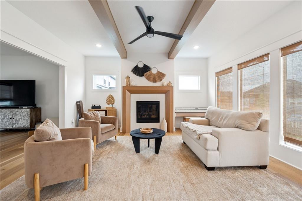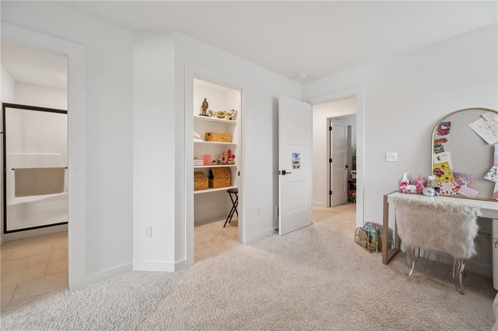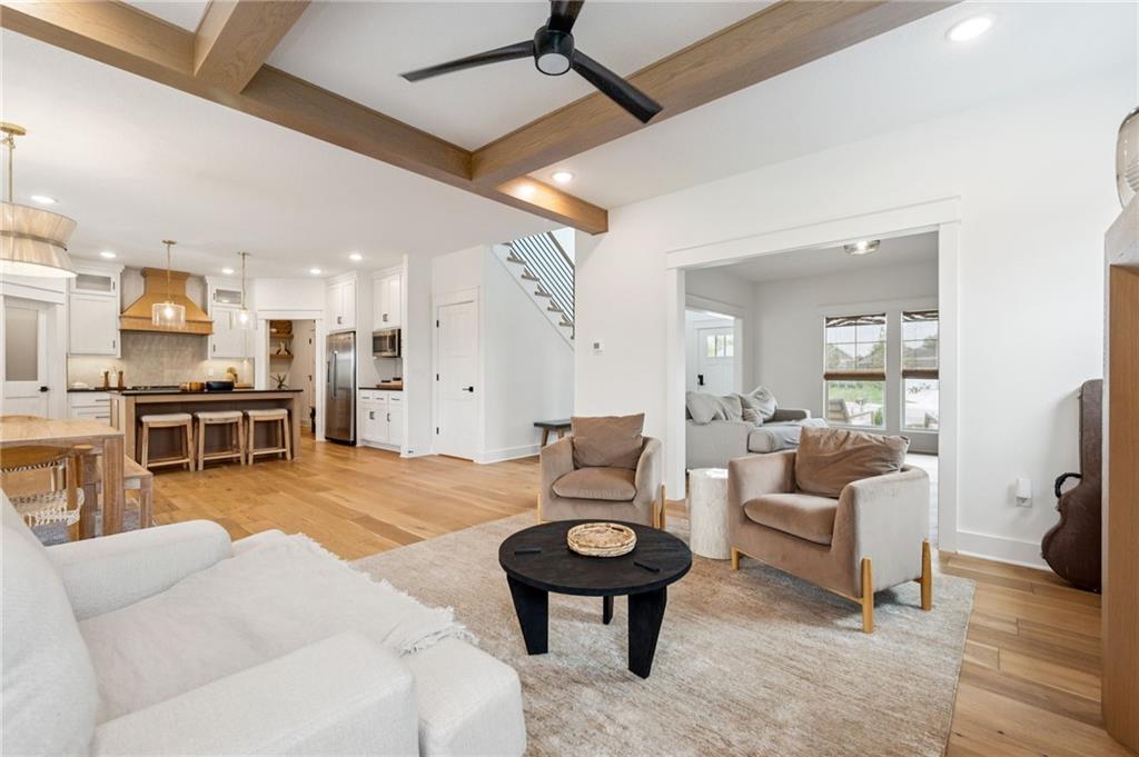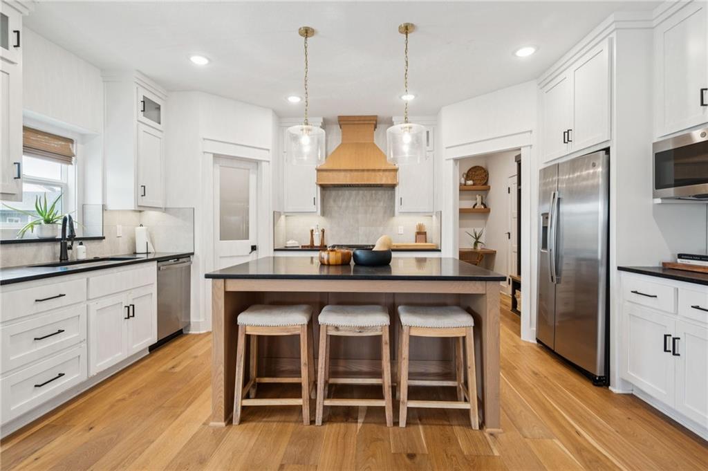 Welcome home to Symphony Farms, a sought after subdivision in Gardner, KS. This 3 year new resale home located on a cul-de-sac is one of Lifestyle Building & Design's Clint plan and is gorgeous throughout with lots of upgrades! Greet your guests in the 2 story entry off the covered front porch. Upgraded wood floors throughout the main level. The kitchen has cabinets to the ceiling, white oak hood and island, upgraded honed countertops, composite sink, gas range and GE profile s/s appliances. The custom butler pantry has an adjustable appliance stack, two oversized can good/spice racks, lots of storage and outlets throughout. The living room has beams, gas fireplace and lots of windows letting natural light in. Use the large front room as your formal dining room, playroom or tv room! Off the garage is spacious area with a built-in desk, shelves, boot bench and half bath. Upstairs are all 4 bedrooms: one with a bonus room! Primary suite has shiplap ceiling with beams & ceiling fan. Primary bath has upgraded white oak double vanity with open area below for towels and baskets, soaker tub, large walk-in shower with bench. 2 bedrooms share a jack-in-jill bathroom with vanity with 2 sinks and open shelf below for towels/baskets, shower/tub combo and toilet. 4th bedroom has a bonus room attached and its own private bathroom. This home is a 3 car garage with the expanded third bay for all your toys or workbench. This home sits on a large flat lot with a fenced back yard and sprinkler system. Covered patio with an additional large expanded patio! Unfinished basement is plumbed for a bathroom, egress window for the 5th bedroom. Window treatments throughout. Symphony Farms community has its own pool, clubhouse, pickleball court & basketball court. Walking distance to Celebration Park. Don't miss out on this gorgeous 2-story home with all the upgrades!