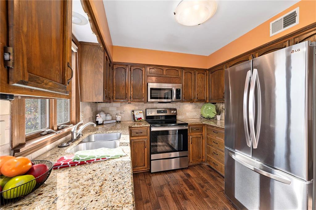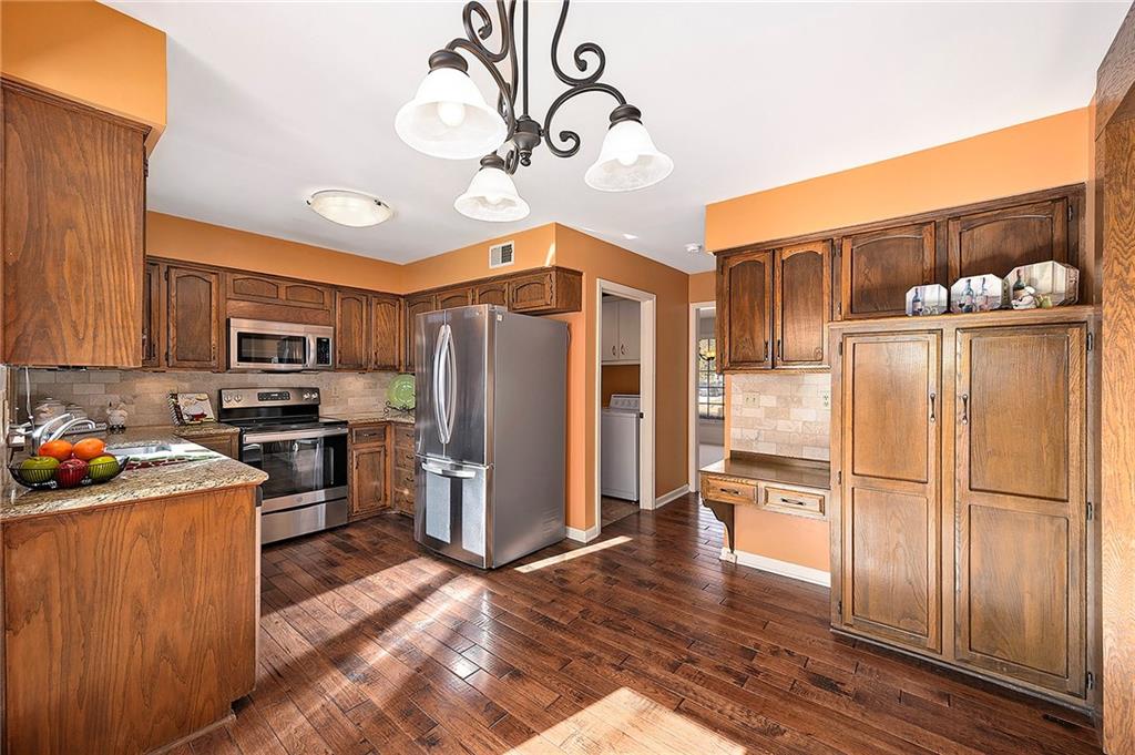 You’ll love this classic 2-story Colonial in one of Overland Park’s favorite neighborhoods! This 4-bedroom, 2.5-bath home sits on a large corner lot that sides to a cul-de-sac and offers plenty of room for outdoor activities. The updated kitchen features granite counters, tile backsplash, stainless steel appliances, under cabinet lighting and an eat-in area perfect for casual meals. The spacious living room boasts beautiful wood paneling and beams, fireplace and built-in cabinets and bookshelves for endless decorating options! The formal living can also double as an office, and the dining room provides plenty of room for holiday gatherings! Need more room? The unfinished basement is a blank canvas for you to create additional living space. Fantastic location close to schools, shopping, restaurants, and highways — everything you need is just minutes away!