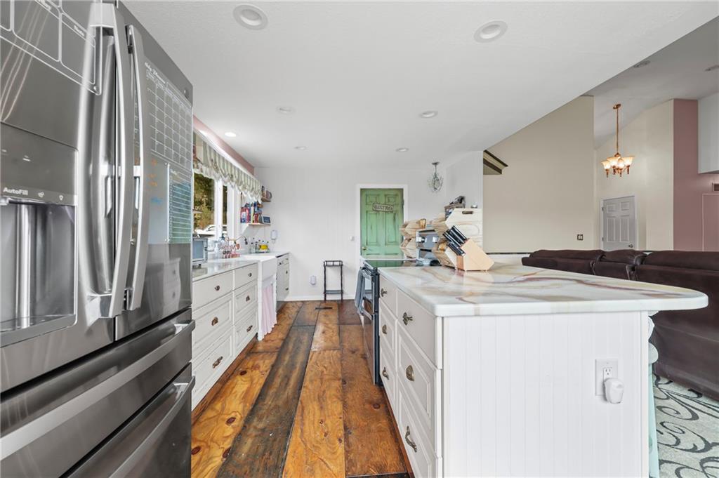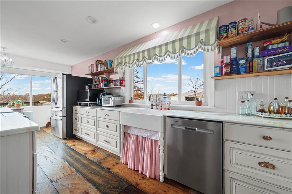Gorgeous home on 14.62 acres — your own private paradise! Enjoy peaceful country living with a stocked pond and covered deck, 30x30 shop with 12x60 and 10x30 lean-tos, multiple fenced areas, chicken coop, outbuildings, creek, trees, and amazing landscaping with tons of flowers. Owner’s pride shines throughout this beautifully maintained property! Inside, you’ll find bamboo flooring throughout, vaulted ceilings, and a welcoming open layout. The kitchen features updated countertops, ample cabinetry, and opens nicely to the living area with fireplace. Finished walkout basement offers a large family room, bedroom, bath, and plenty of storage space. The barn includes 5 stalls, and the tinted windows help keep utilities low. Relax on your back deck overlooking the pond, fish in your own water, or watch the abundant wildlife — deer, birds, and more! This is truly a one-of-a-kind property, move-in ready and perfectly set up for peaceful country living. 4 bedrooms | 3 baths | Finished walkout basement | 14.62 acres | Shop, barn, pond & more!