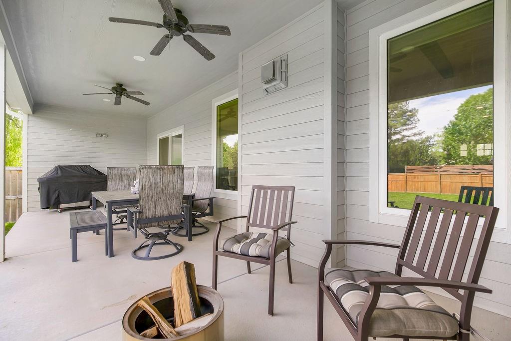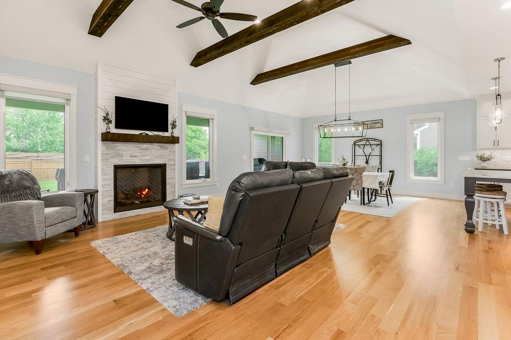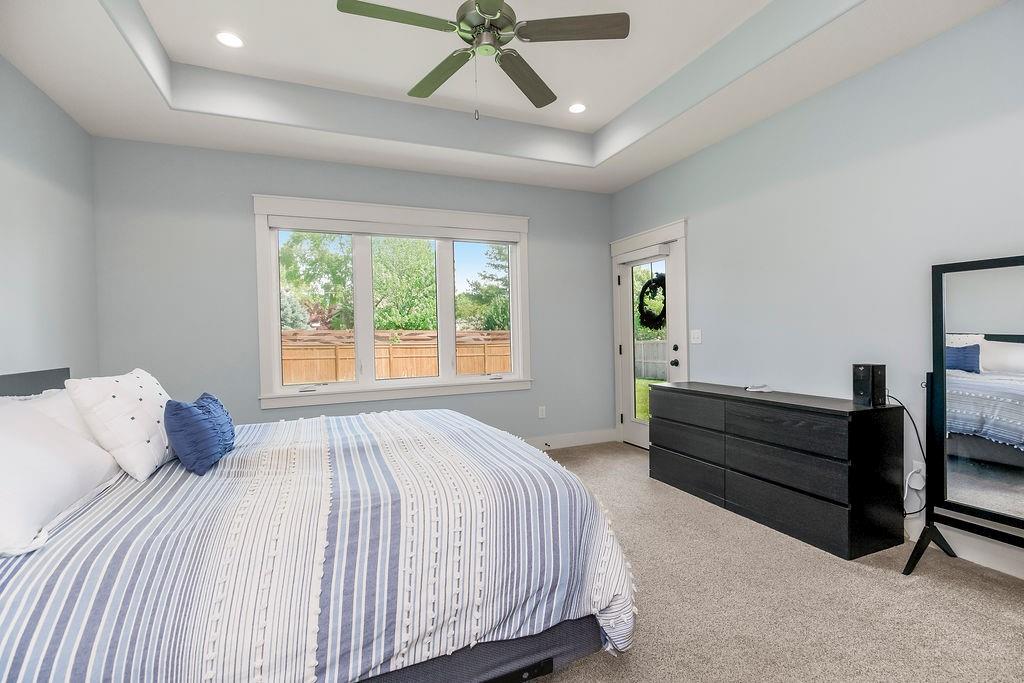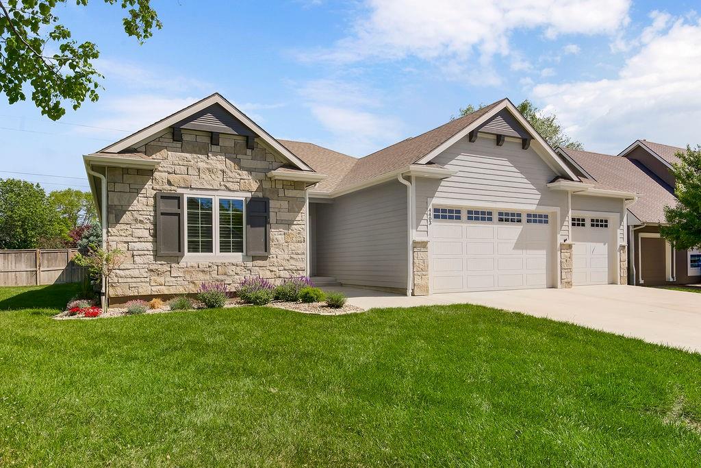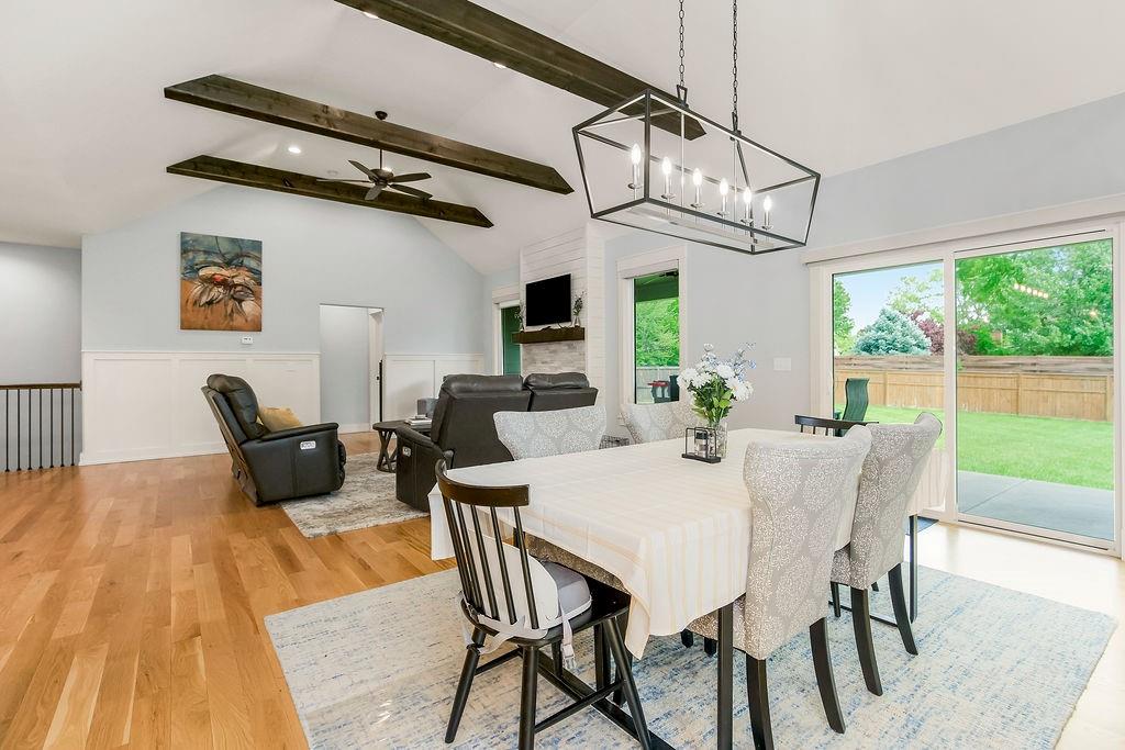 FALL in love with this newer reverse 1.5 floor plan 4 bedroom, 4 bathroom home built in 2022 with modern amenities in a well established neighborhood! You need to walk inside to appreciate the space this home offers. There was so much attention to detail which you will notice as soon as you step inside to an open floor plan highlighted by vaulted ceilings with custom wood beams. The living area seamlessly flows into the dining space and modern kitchen perfect for both entertaining and everyday living. The main level features a large primary suite with a spa-like bathroom including an oversized shower and a walk-in closet with custom shelving --complete with laundry hookups for added convenience. A second bedroom and bathroom is located on the main level. The lower level offers two additional bedrooms with spacious closets and custom shelving, two full bathrooms, a large second living area and wet bar perfect for entertaining. A bonus finished room downstairs perfect for an office is across from the lower level laundry room. Outside there is a large flat back yard already fenced with a patio and a gas hookup for your grill. Details the owners love- dimmable lighting in most living areas, automatic lighting in the pantry, automatic night lighting along the staircase, dual zoned AC/Furnace, custom blinds, and don't miss the bathroom sink faucets that pull out for easy cleaning. All appliances remain- including laundry!