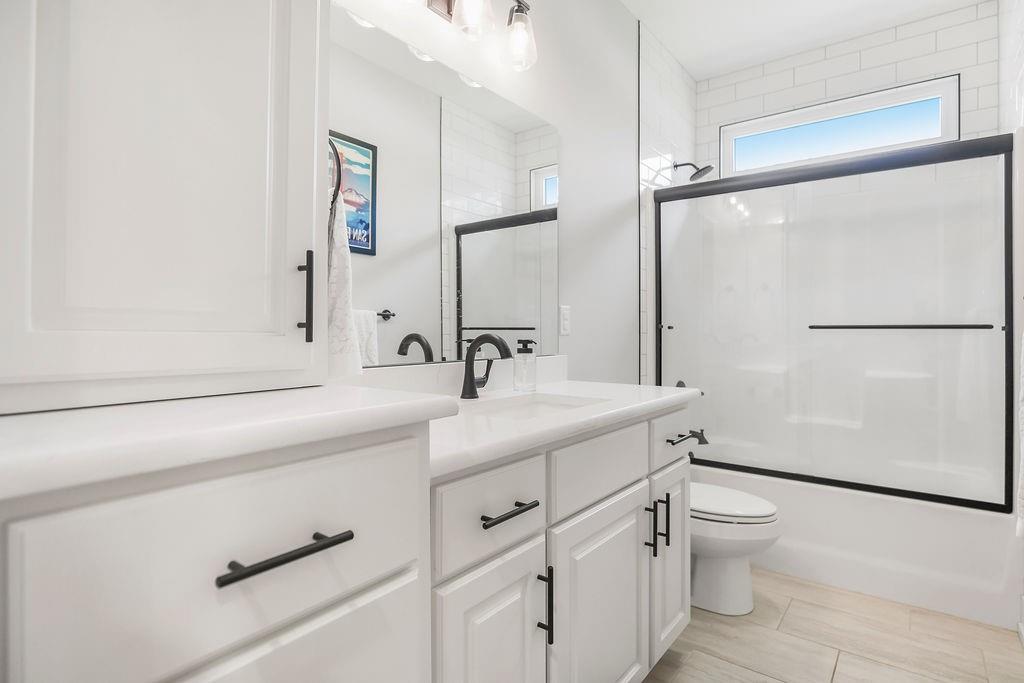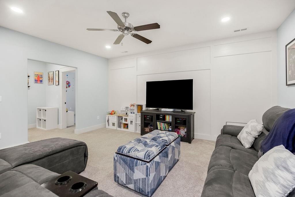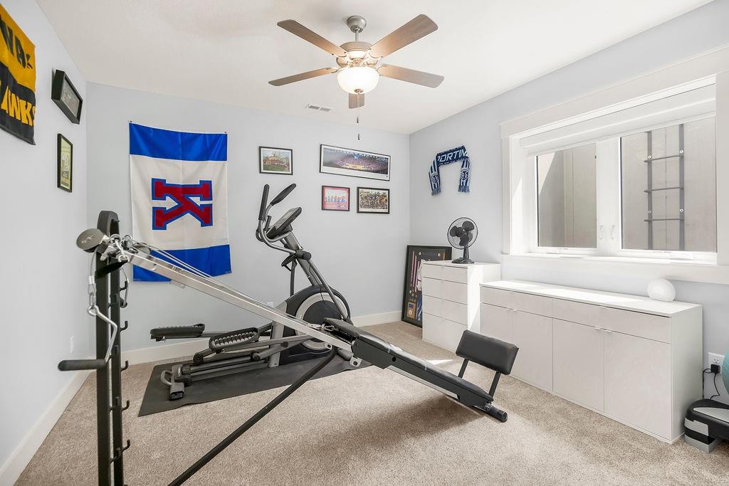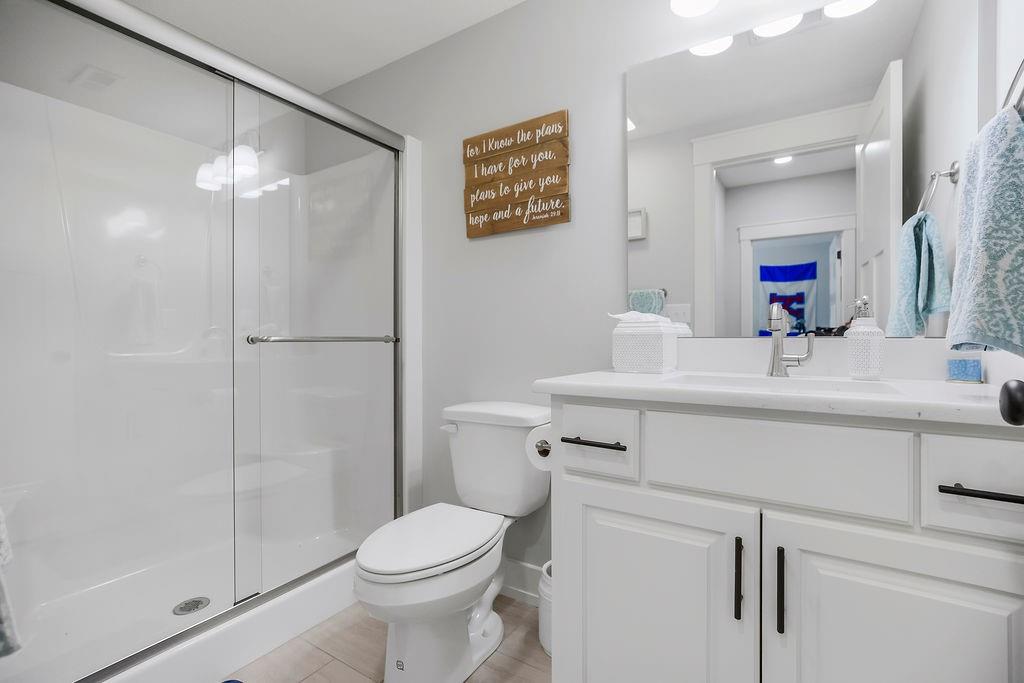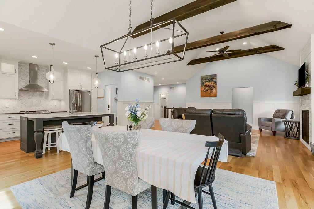 FALL in love with this newer reverse 1.5 floor plan 4 bedroom, 4 bathroom home built in 2022 with modern amenities in a well established neighborhood! You need to walk inside to appreciate the space this home offers. There was so much attention to detail which you will notice as soon as you step inside to an open floor plan highlighted by vaulted ceilings with custom wood beams. The living area seamlessly flows into the dining space and modern kitchen perfect for both entertaining and everyday living. The main level features a large primary suite with a spa-like bathroom including an oversized shower and a walk-in closet with custom shelving --complete with laundry hookups for added convenience. A second bedroom and bathroom is located on the main level. The lower level offers two additional bedrooms with spacious closets and custom shelving, two full bathrooms, a large second living area and wet bar perfect for entertaining. A bonus finished room downstairs perfect for an office is across from the lower level laundry room. Outside there is a large flat back yard already fenced with a patio and a gas hookup for your grill. Details the owners love- dimmable lighting in most living areas, automatic lighting in the pantry, automatic night lighting along the staircase, dual zoned AC/Furnace, custom blinds, and don't miss the bathroom sink faucets that pull out for easy cleaning. All appliances remain- including laundry!