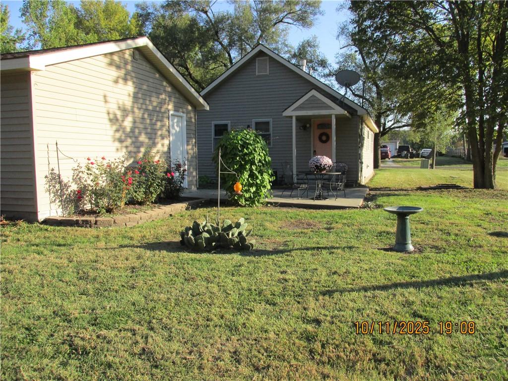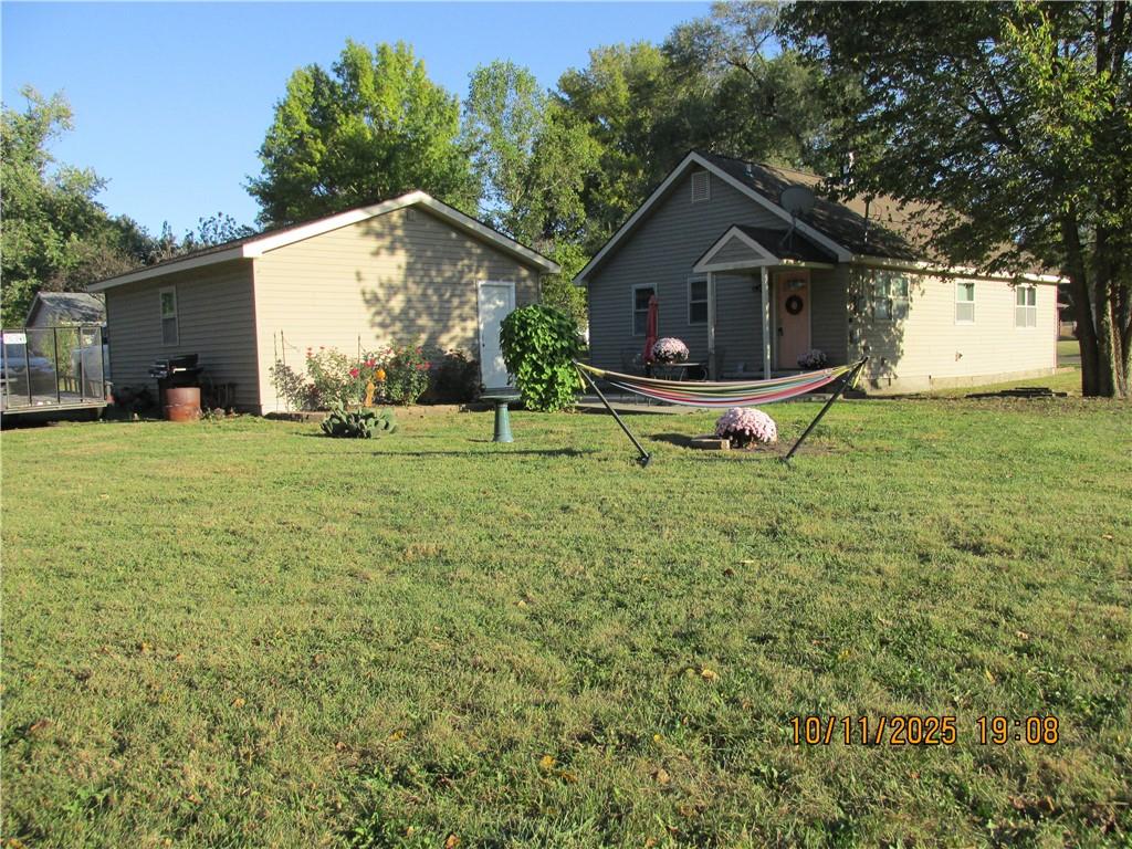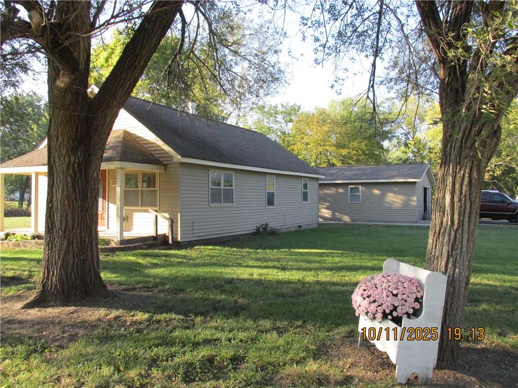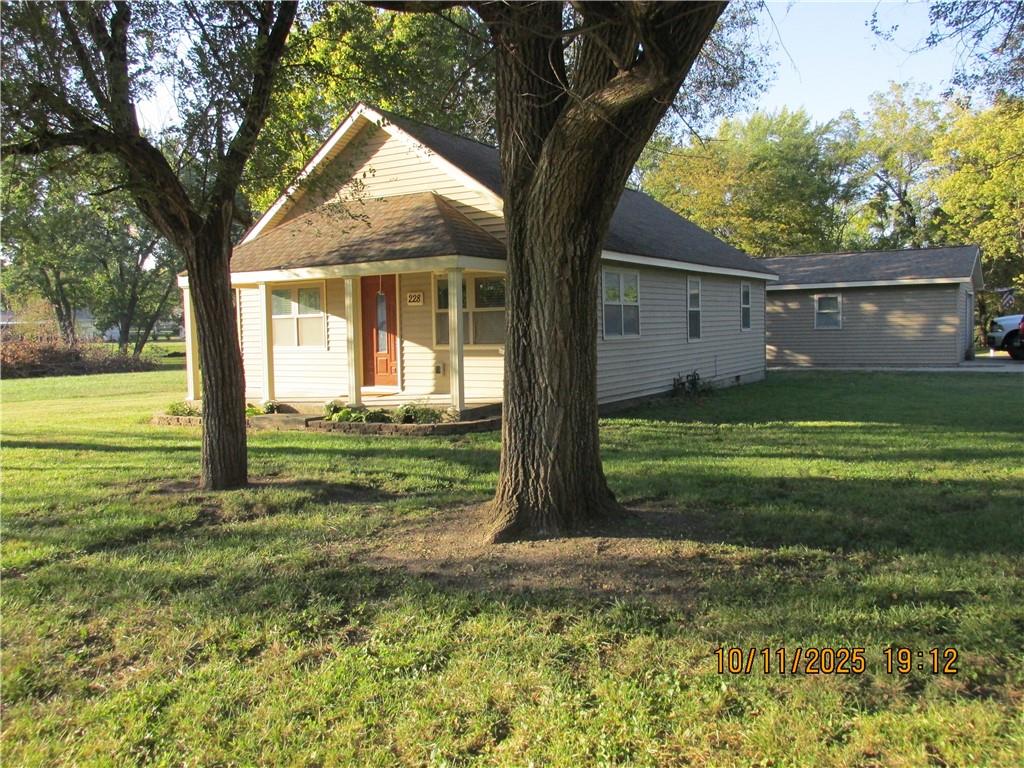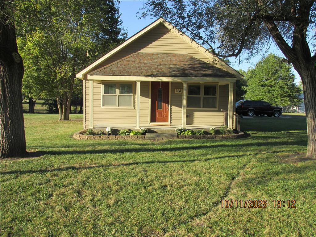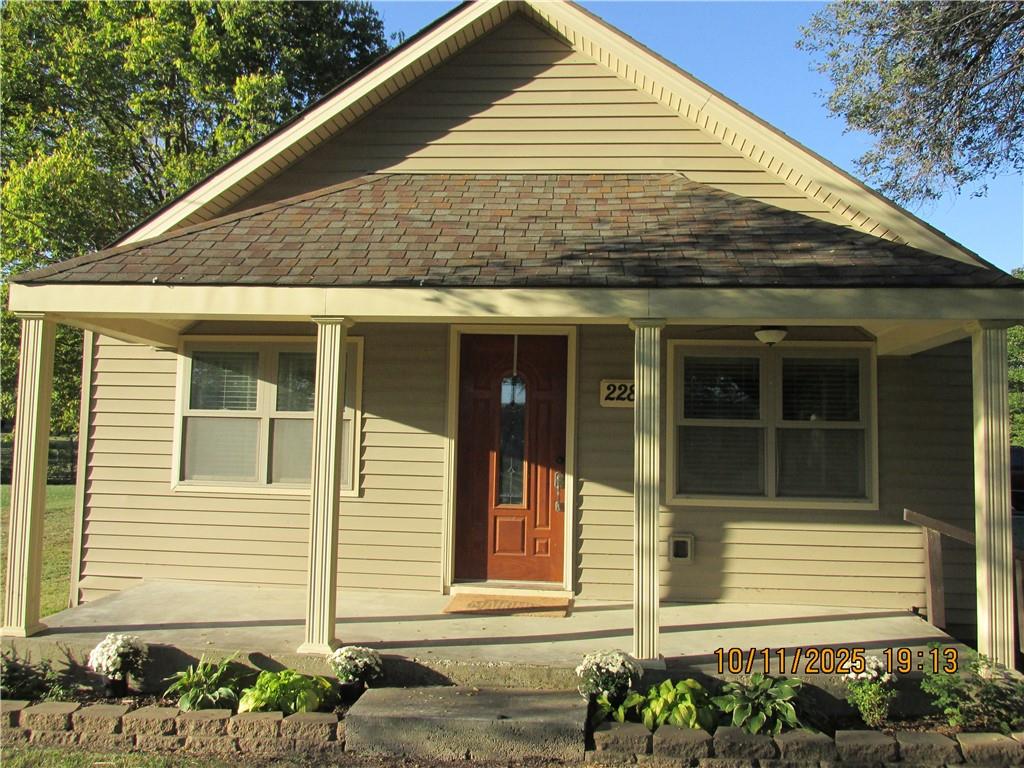 ONE LEVEL LIVING IN THIS ADORABLE HOME WITH SO MUCH CHARACTER. MINUTES FROM SMITHVILLE LAKE. Nice covered front porch invites you into a charming living room and dining room with custom woodwork, columns and a chandelier for that touch of refinement. A completely remodeled kitchen with New flooring, countertops, faucet and refrigerator. Dining room boasts of new paint and flooring. Bedroom has a new headboard. Nice laundry/Mud room. Anderson energy efficient double hung insulated windows, vinyl siding, timberline style roof. Keyless entry installed on back door and garage door. Maintained HVAC. New outdoor spigot with inside shutoff. Outdoor outlet installed for outside lighting. Perennials were planted. Dead tree removed.
