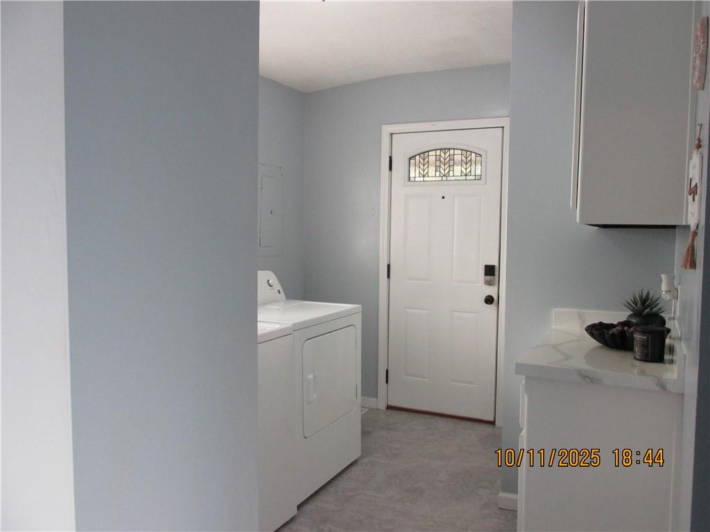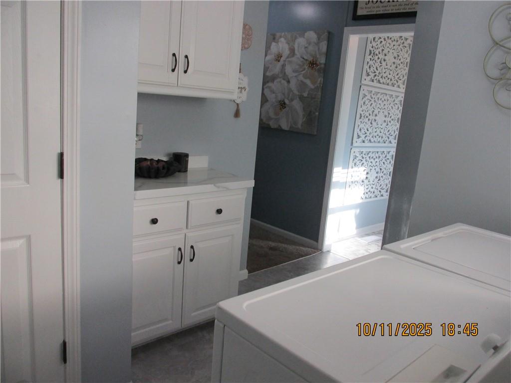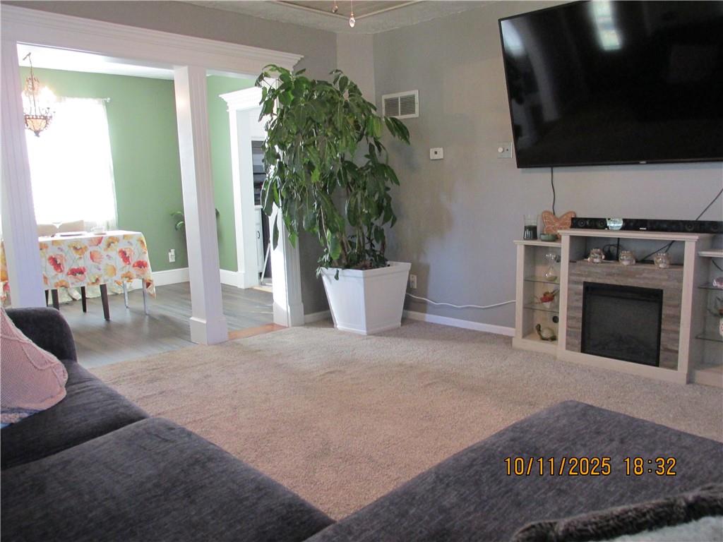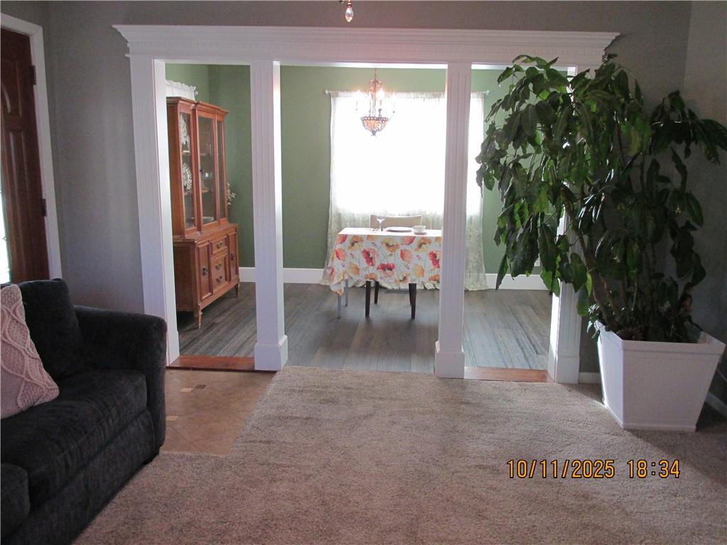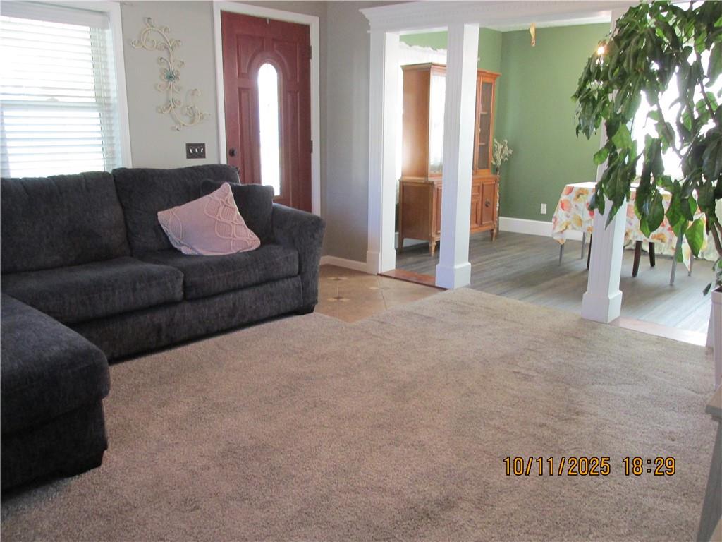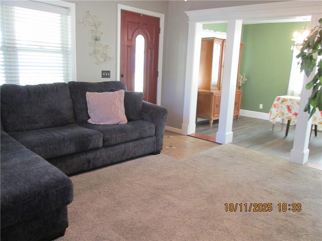 ONE LEVEL LIVING IN THIS ADORABLE HOME WITH SO MUCH CHARACTER. MINUTES FROM SMITHVILLE LAKE. Nice covered front porch invites you into a charming living room and dining room with custom woodwork, columns and a chandelier for that touch of refinement. A completely remodeled kitchen with New flooring, countertops, faucet and refrigerator. Dining room boasts of new paint and flooring. Bedroom has a new headboard. Nice laundry/Mud room. Anderson energy efficient double hung insulated windows, vinyl siding, timberline style roof. Keyless entry installed on back door and garage door. Maintained HVAC. New outdoor spigot with inside shutoff. Outdoor outlet installed for outside lighting. Perennials were planted. Dead tree removed.