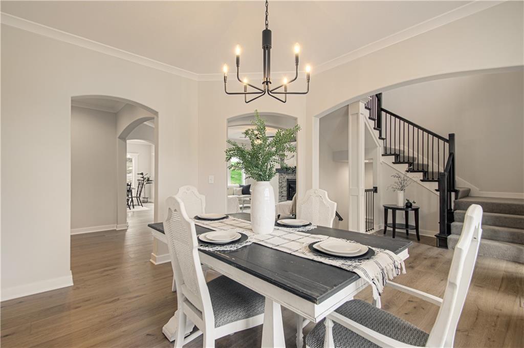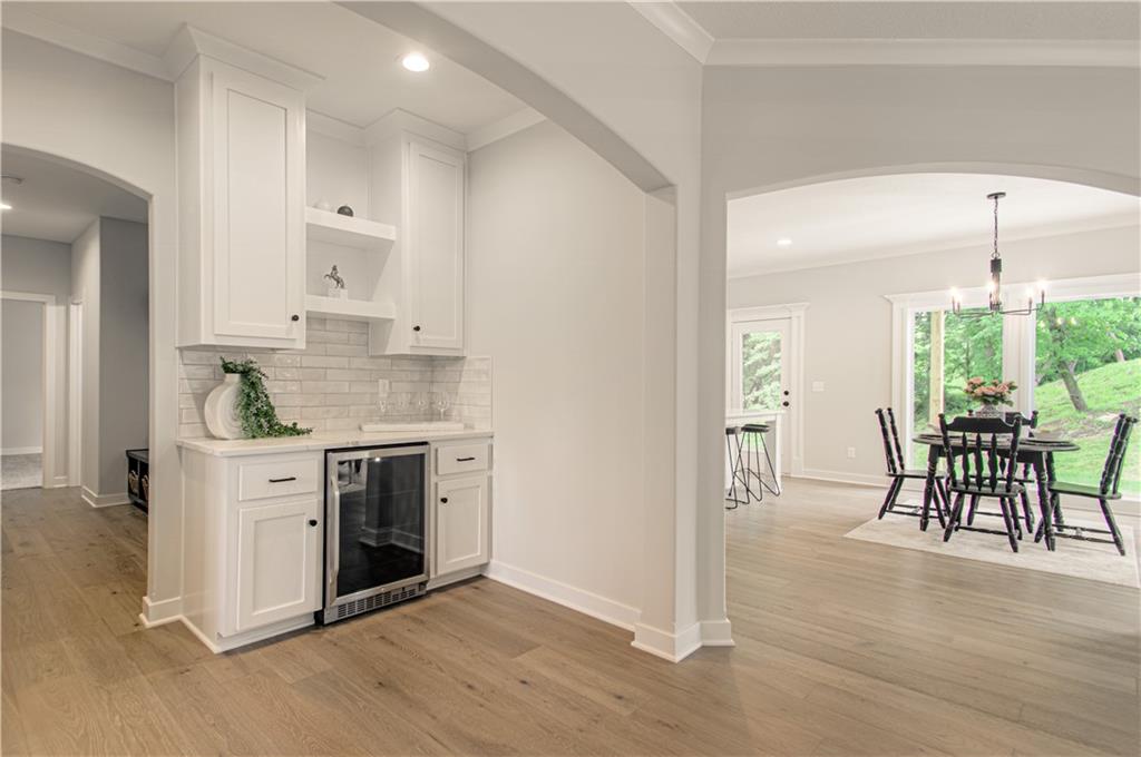 The "DAISY" is a Gorgeous move-in Ready 2-Story home with 2900 square feet backing to woods. Offering 5 Bedrooms, with the 5th Bedroom on the Main Level, and 4 Full Baths. Upgraded finishes and attention to detail this lovely home offers Rounded Arches, Custom Built Cabinets, HUGE Kitchen Island, Bonus Bar with beverage fridge, Floor to Ceiling Windows, Gourmet Kitchen, Gas Cooktop, Mudroom at Garage Entry and an Open Layout which makes it great for entertaining. The Second Level is just as impressive and features a Private and Expansive Primary Suite and Walk-in Closet that has access to the Laundry Room. The Primary Bath is luxurious with an oversized Tub and Walk-in Shower with tile walls. There are 3 more bedrooms and 2 more baths on this level. Beautiful Staircase overlooks the Front Entry. Huge walk-out basement that could be finished to fit the buyers needs.