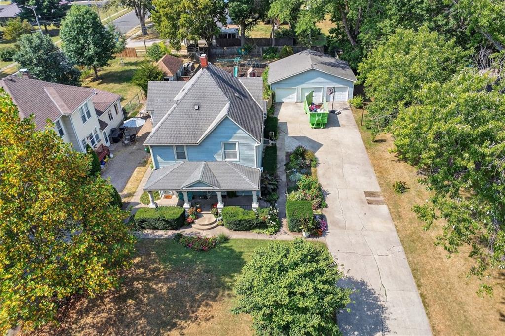 Lovely home with space galore offering a generous number of bedrooms or space for home offices! Two of the bedrooms and two full baths are on the main level! Grand covered front porch, spacious backyard with privacy fence, 3 car detached garage/shop for all your hobbies plus an in ground storm shelter. Convenient location within walking distance of downtown!