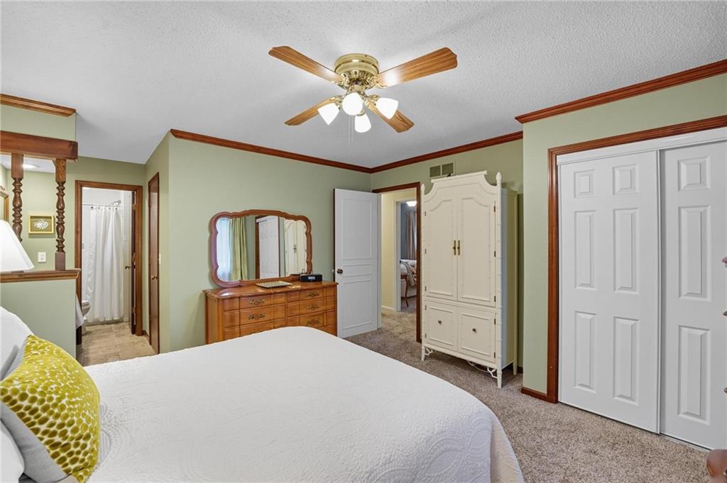 This 3-bedroom, 2.1-bathroom home on a cul-de-sac offers spacious living with a large lot and plenty of charm. Inside you’ll find a functional floor plan that includes a living room with a brick fireplace, a dining area with wood flooring, and a generous kitchen with eat-in space and tile flooring that opens to the backyard. The primary suite features double closets and its own private bath, while two additional bedrooms share a full hall bath, and the main-floor laundry adds everyday convenience. Outdoors, the home includes a stamped concrete patio, firepit area, mature trees, and an adorable shed with electricity that can serve a variety of uses. With thoughtful details throughout, this property provides comfortable living and versatile spaces both inside and out.