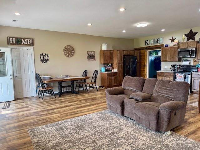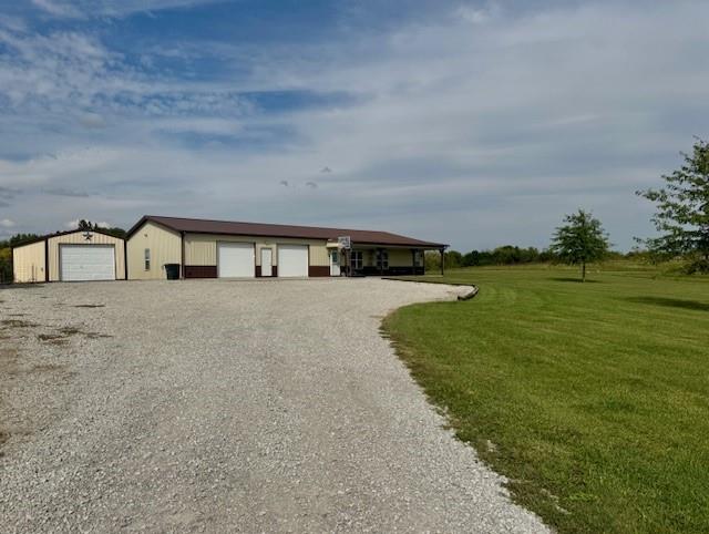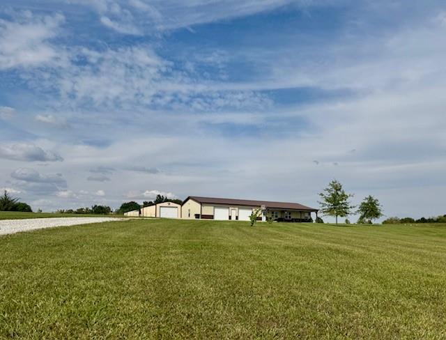 Welcome to your peaceful retreat---10 fully fenced acres nestled in the countryside, just 25 minutes from Kansas City. This charming ranch-style barndominium offers the perfect blend of comfort and functionality, featuring: -3 bedrooms and 2 full bathrooms -Open-Concept living with a cozy fireplace and scenic views from your couch -A massive 1,400 sqft fully insulated 2 car garage -A 14' x 28' outbuilding ideal for storing your UTV, ATV, or other equipment -Bonus RV power hookup for added convenience The primary bedroom boasts a private bath with dual vanities, a walk-in shower, and a generous walk-in closet. Step out back to a welcoming patio--perfect for grilling, entertaining, or simply relaxing while watching wildlife roam. This property offers space, serenity, and endless possibilities. Come see all it has to offer!