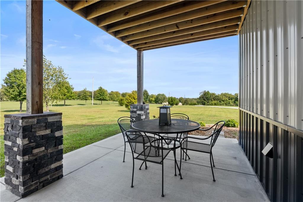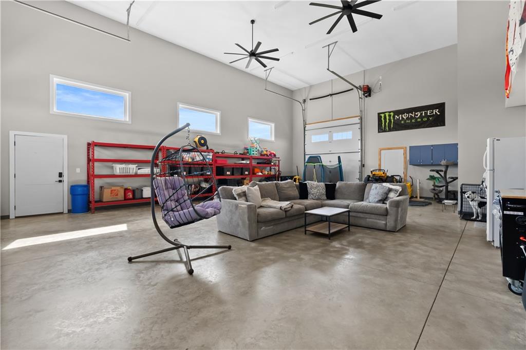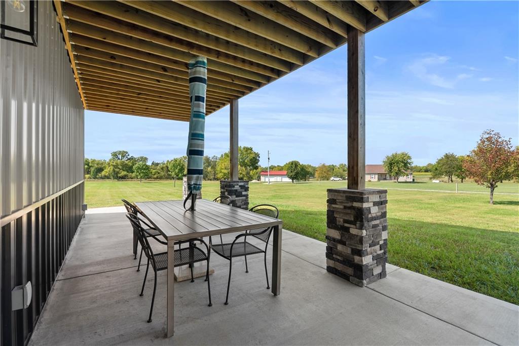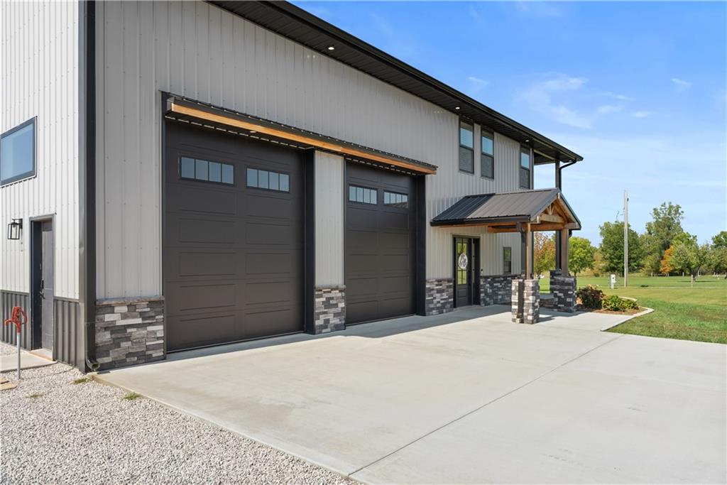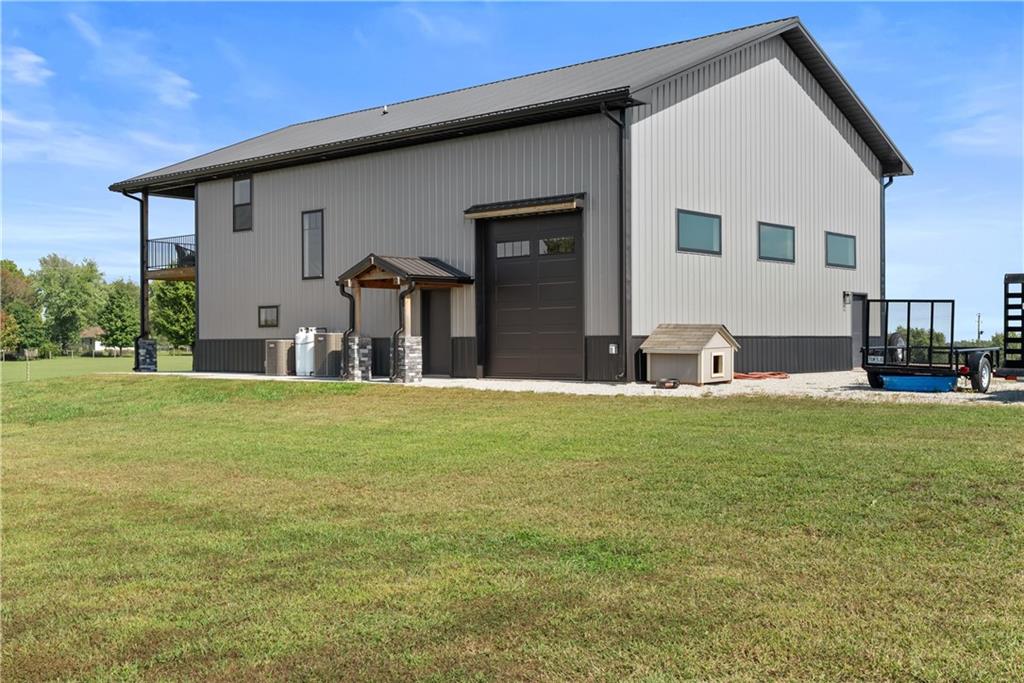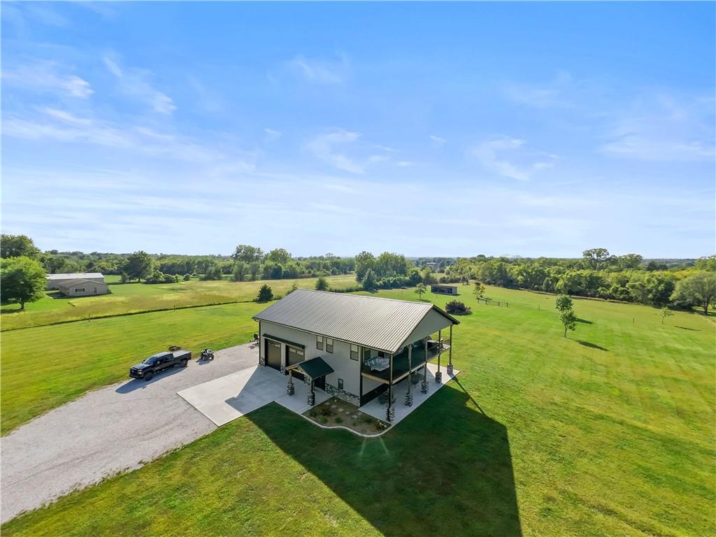 Welcome to this stunning 2-year young custom barndominium situated on 10 acres in Johnson County with the advantage of low taxes. Built with 2x6 walls and extra insulation, this home blends efficiency, style, and country living. Step inside to find an open floor plan featuring a gorgeous kitchen with quartz countertops, a walk-in pantry, large island, and a coffee bar—perfect for gatherings. The living area offers a cozy gas fireplace and 9-foot ceilings throughout the main floor. Convenient main-level laundry and a walk-in shower are also included. Upstairs, you’ll find 2 spacious bedrooms, each with a large walk-in closet, along with a deck overlooking the acreage. The home also includes a 1200 sq. ft. garage area with soaring 20-ft ceilings, offering endless possibilities for vehicles, storage, or a workshop. Enjoy the outdoors with a large covered patio on the main level, second-floor deck, and a fully fenced outbuilding ideal for animals. The owner, who built the home himself, thoughtfully added numerous upgrades throughout. This property delivers the perfect mix of modern comfort and rural charm—ready for its next chapter.