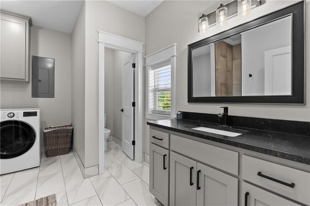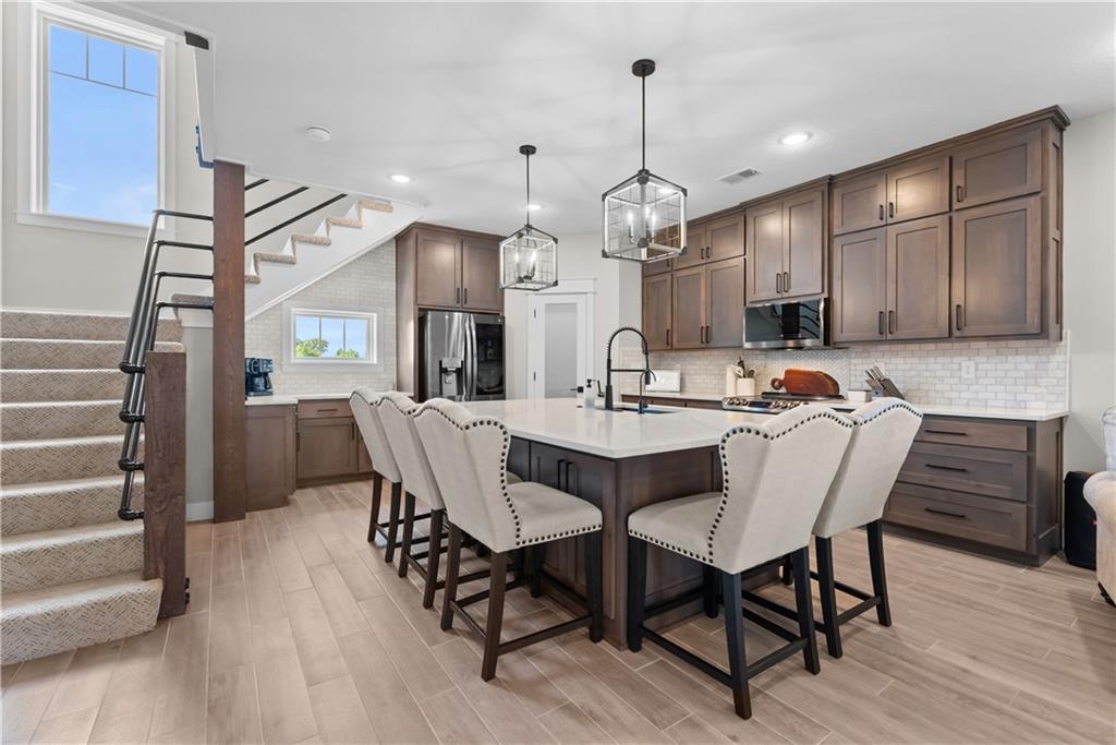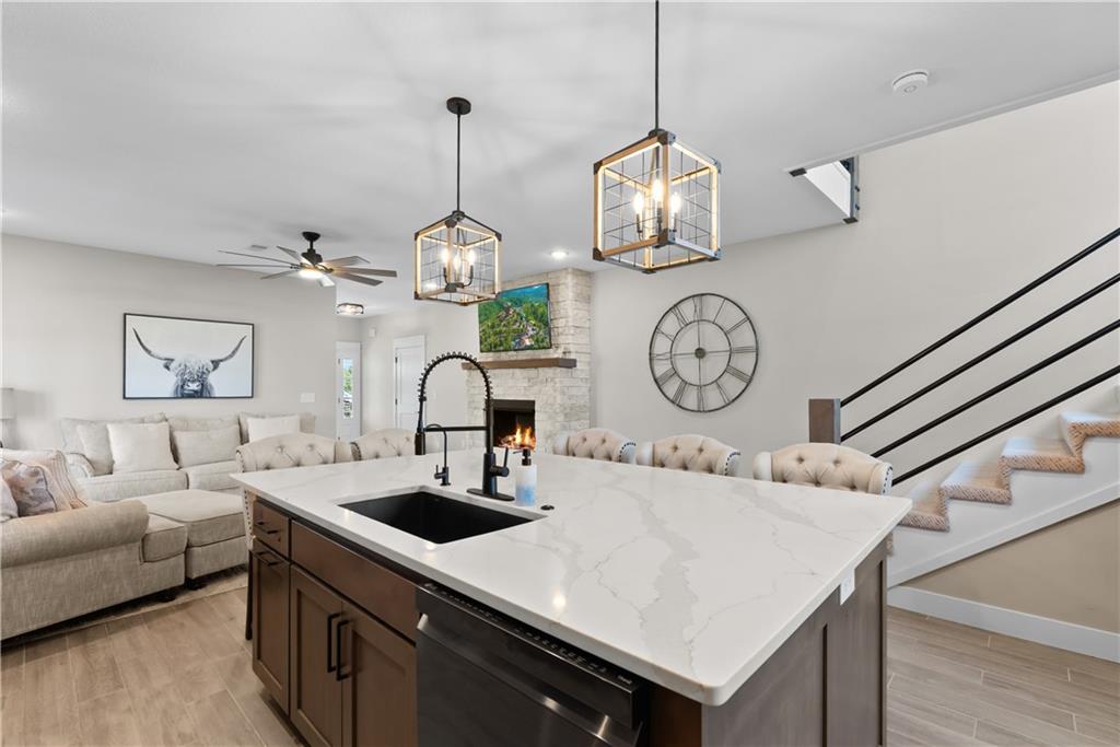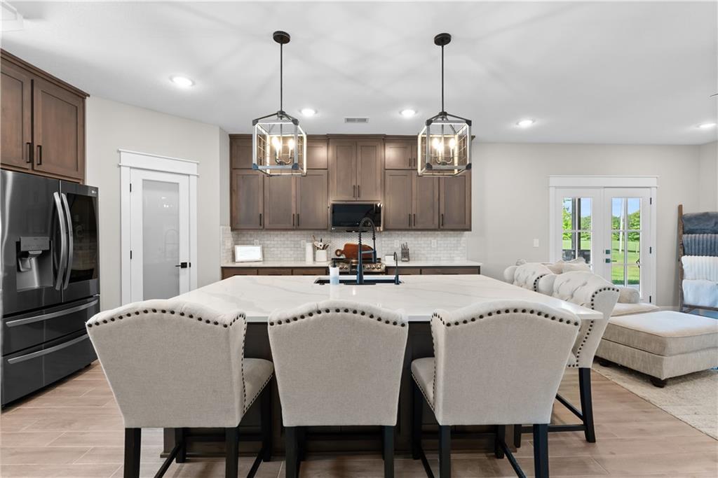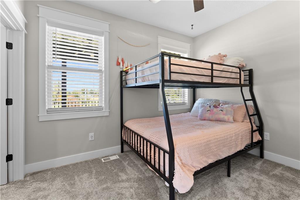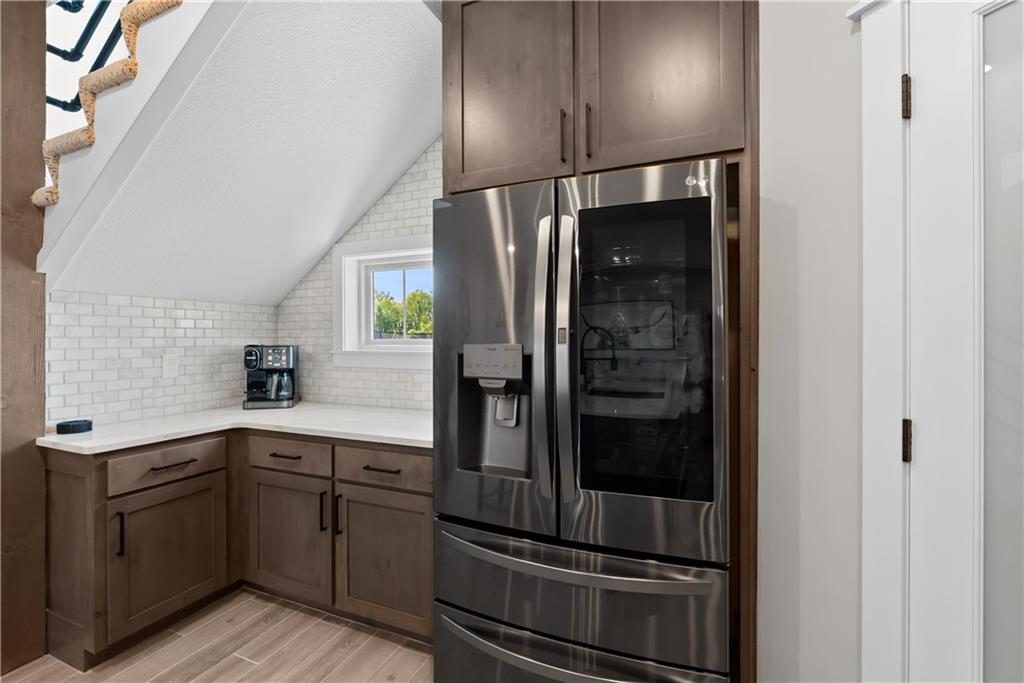 Welcome to this stunning 2-year young custom barndominium situated on 10 acres in Johnson County with the advantage of low taxes. Built with 2x6 walls and extra insulation, this home blends efficiency, style, and country living. Step inside to find an open floor plan featuring a gorgeous kitchen with quartz countertops, a walk-in pantry, large island, and a coffee bar—perfect for gatherings. The living area offers a cozy gas fireplace and 9-foot ceilings throughout the main floor. Convenient main-level laundry and a walk-in shower are also included. Upstairs, you’ll find 2 spacious bedrooms, each with a large walk-in closet, along with a deck overlooking the acreage. The home also includes a 1200 sq. ft. garage area with soaring 20-ft ceilings, offering endless possibilities for vehicles, storage, or a workshop. Enjoy the outdoors with a large covered patio on the main level, second-floor deck, and a fully fenced outbuilding ideal for animals. The owner, who built the home himself, thoughtfully added numerous upgrades throughout. This property delivers the perfect mix of modern comfort and rural charm—ready for its next chapter.