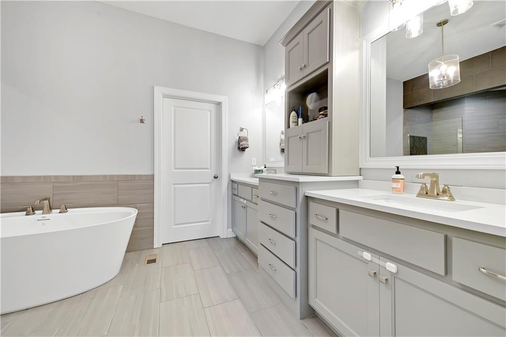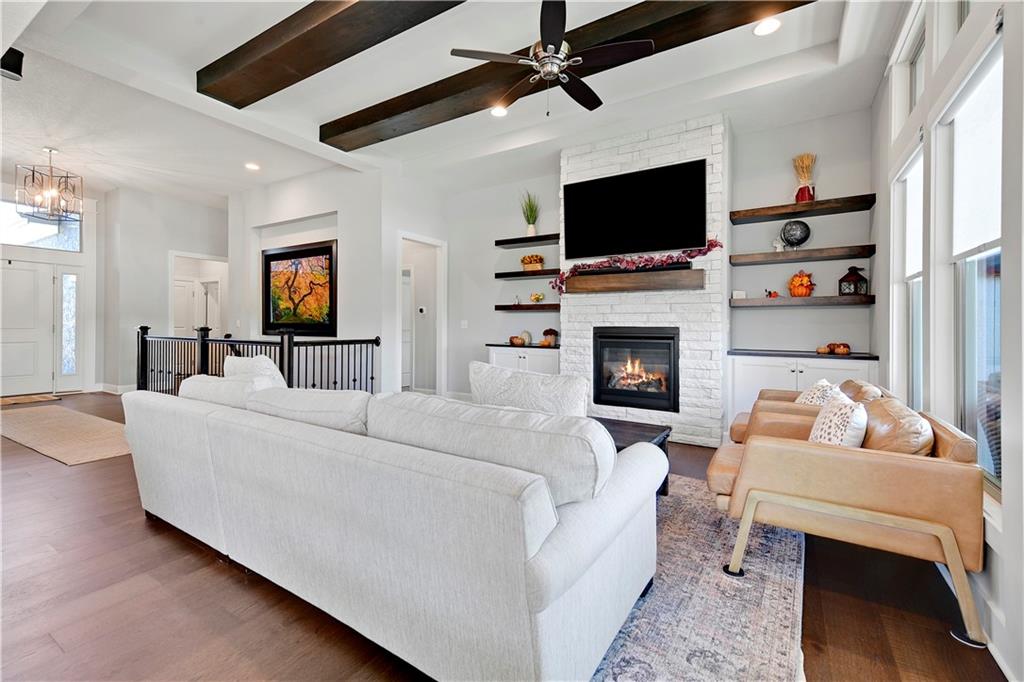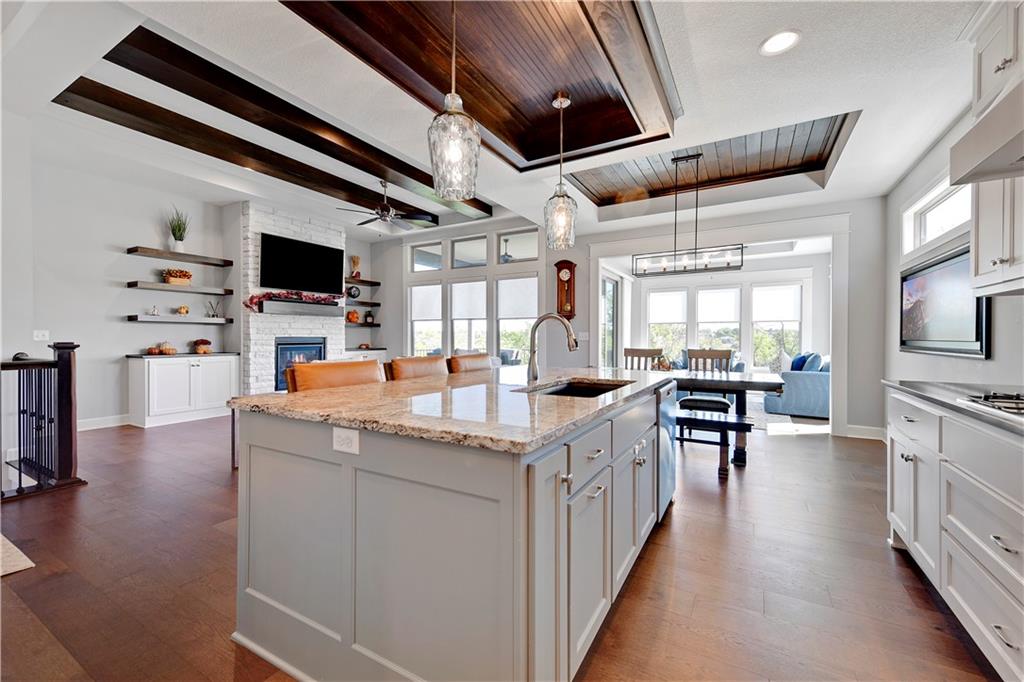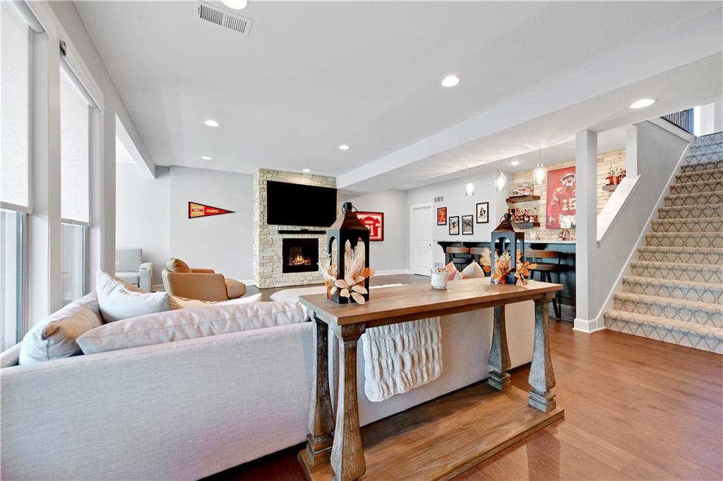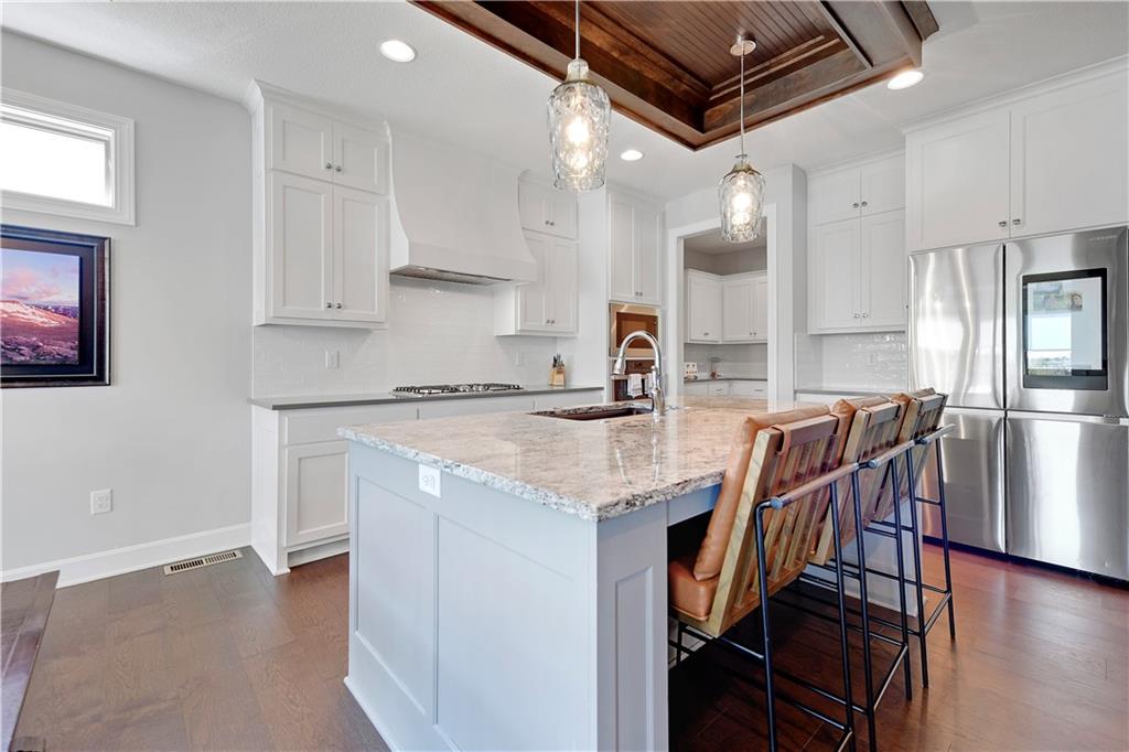 Three year old Villa, backing to gorgeous Trees. Two covered porches, Walkout finished Lower Level with beautiful granite bar and stone fireplace, two bedrooms and bath in LL. Primary on main with second bedroom or office on main. Large granite island in kitchen plus an additional prep kitchen and walkin pantry. Double ovens, gas cooktop, eatin kitchen, laundry main floor next to Primary suite. Mud room off three car garage. Epoxy garage floor and garage is tall enough for Trucks. Master bath offers dual vanities, center stack cabinets, and free standing soaker tub. New landscaping, and landscape lighting, new mini split hvac in garage for heating and cooling, new spa hot tub on lower deck. You'll love it!